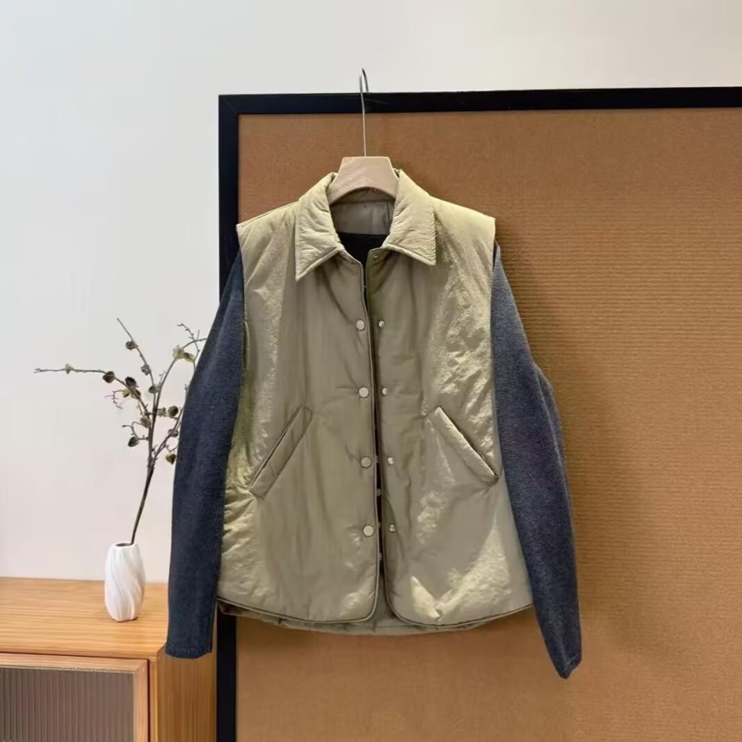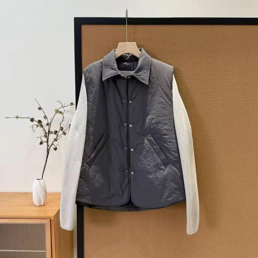 Chaleco de plumón para mujer estilo corto otoño e invierno nuevo 2025 versión coreana suelto talla pequeña chaleco de algodón sin mangas prenda exterior