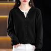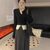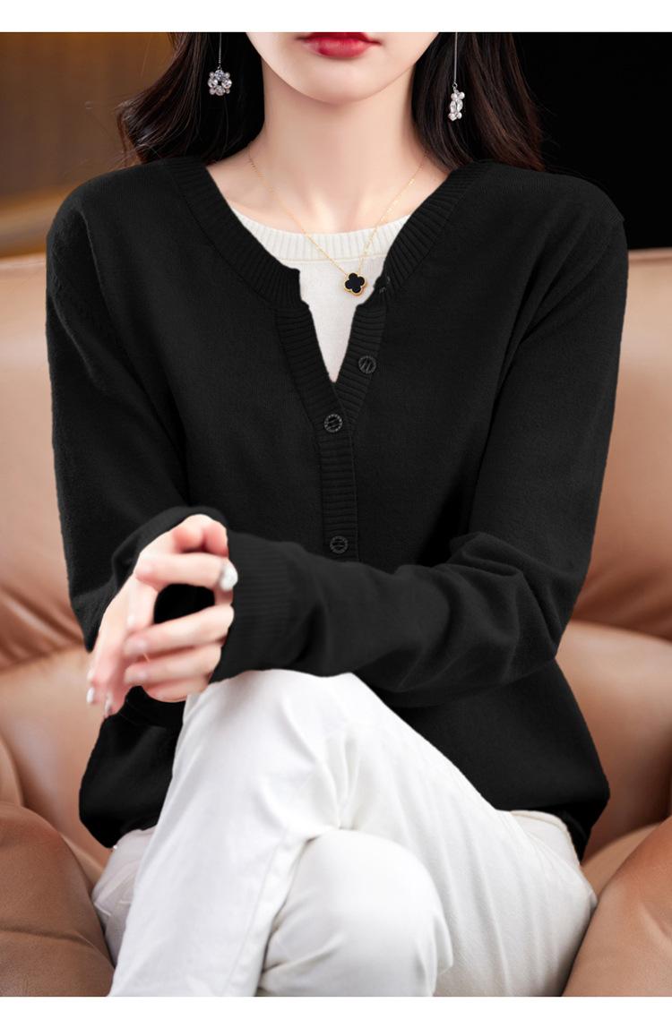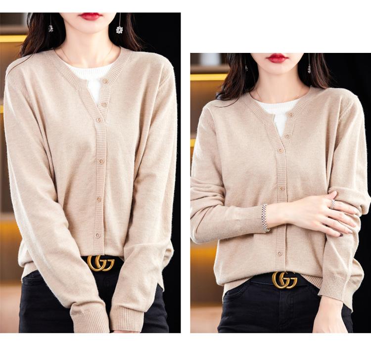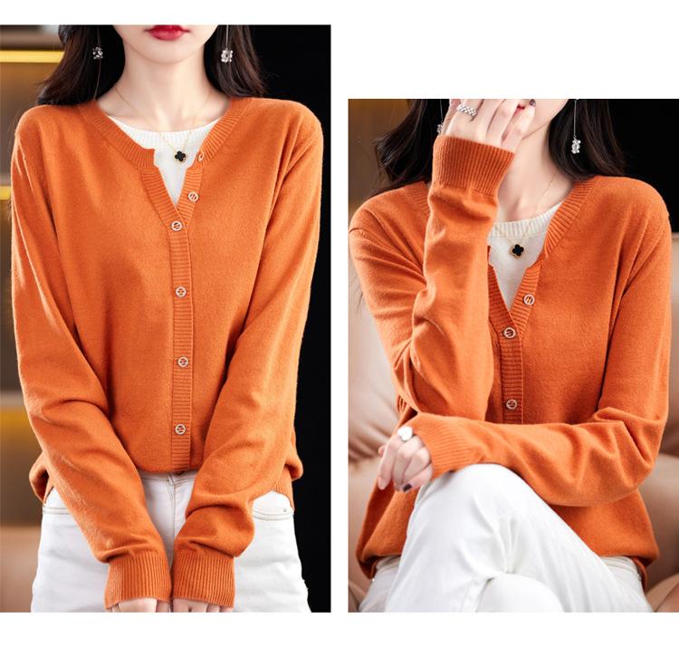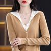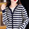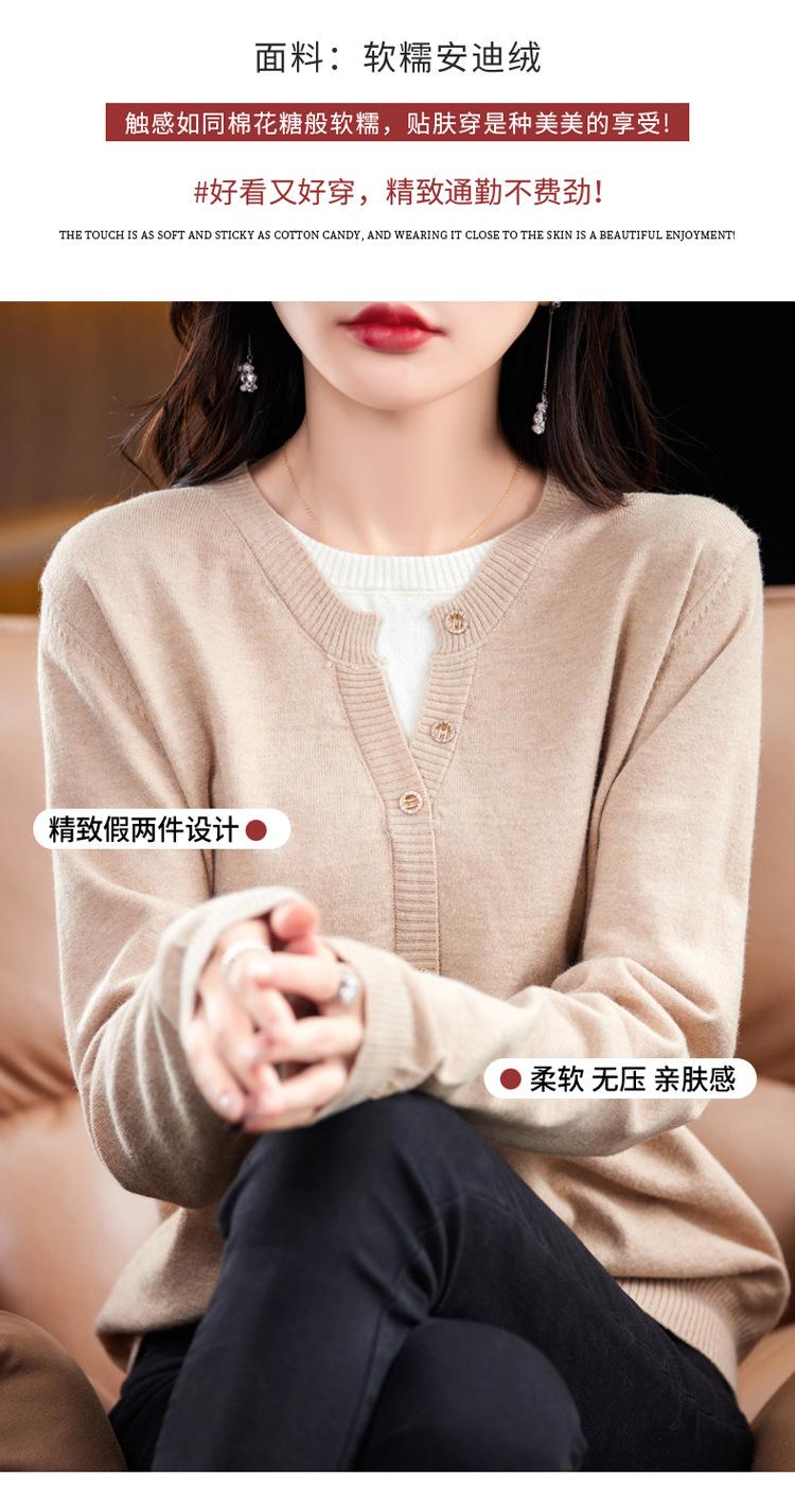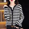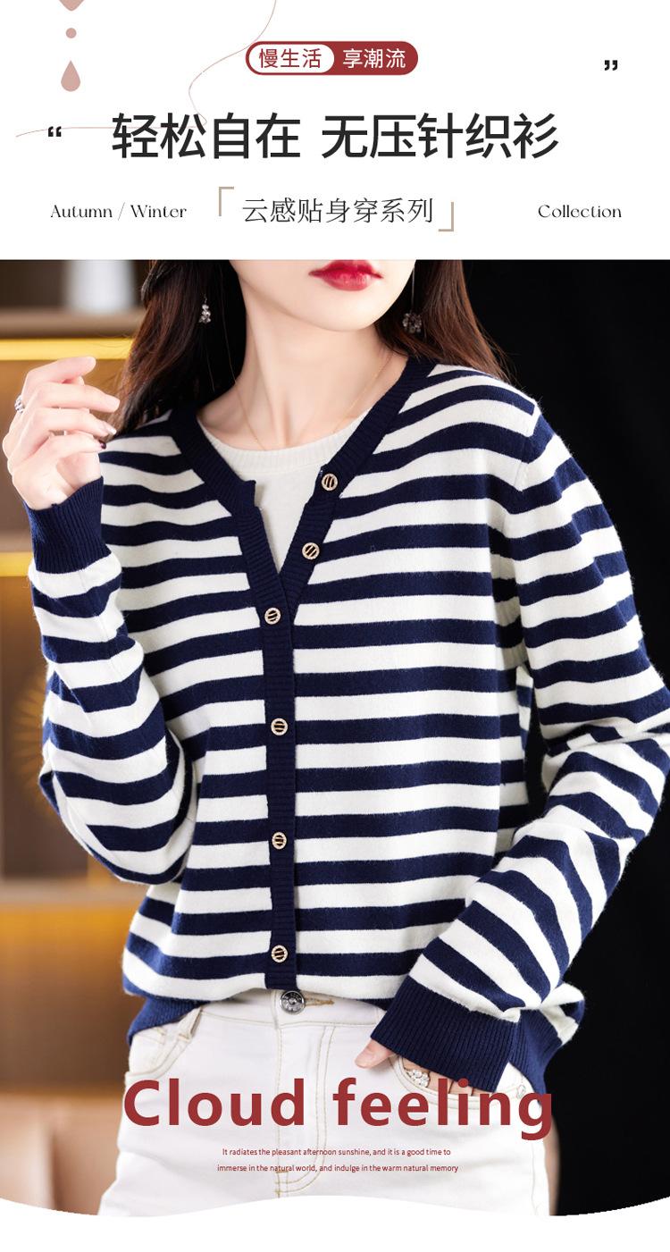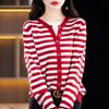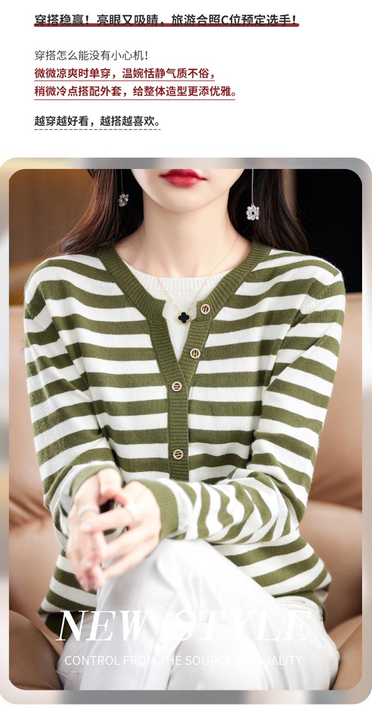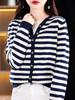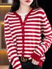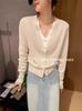 Cárdigan de Punto de Cuello en V Nuevo Otoño e Invierno 2024 para Mujer a Rayas de Color en Contraste Elegante Holgado Combinable Top Falso de Dos Piezas