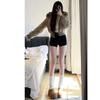 Talla Grande Gordo mm Americano Sexy Azul Oscuro Denim Cintura Baja Super Shorts Verano para Mujer Sexy Ajustados con Dobladillo Hot Pants