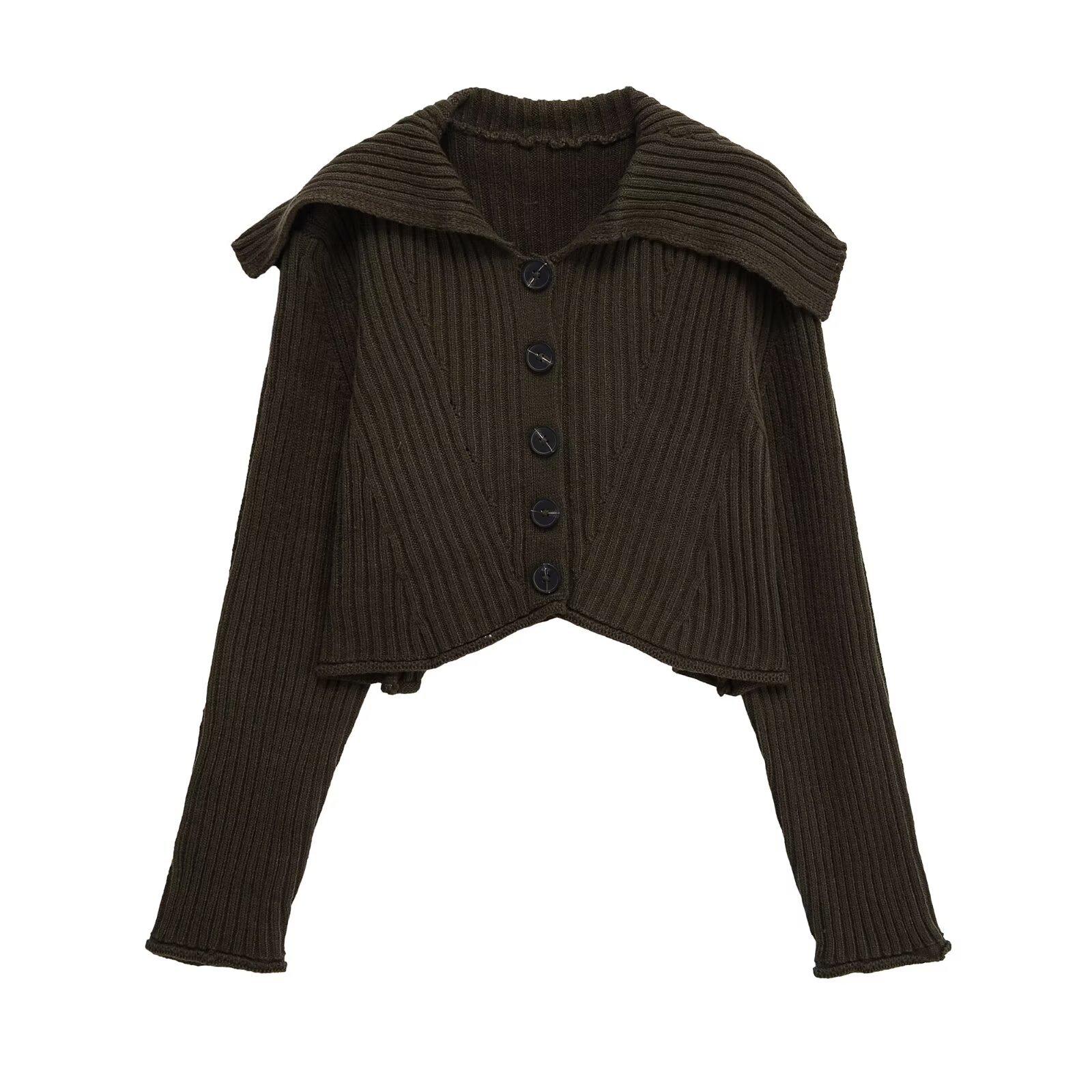 Venta al por mayor transfronteriza 2025 verano nuevo estilo europeo y americano falda corta para mujer estilo acanalado con solapa de botones manga larga tejido de punto