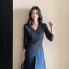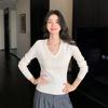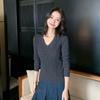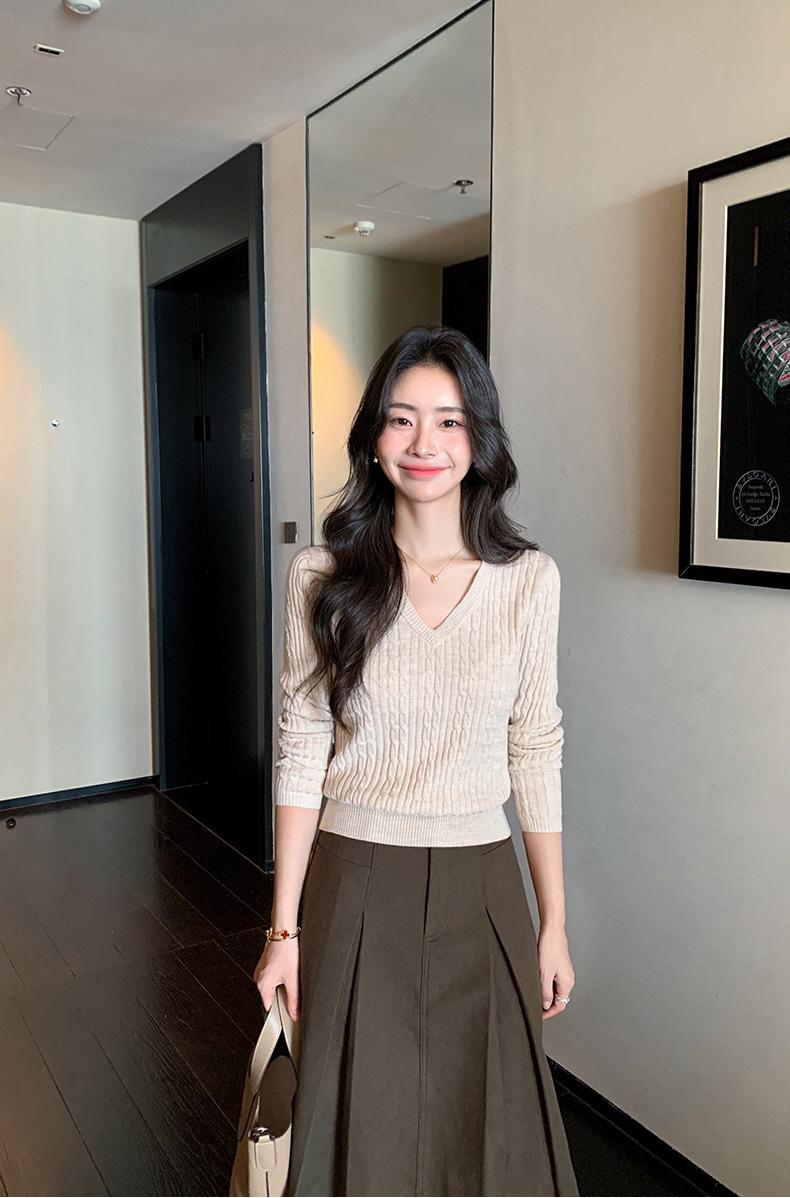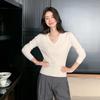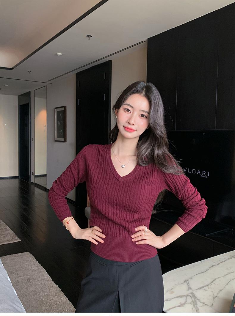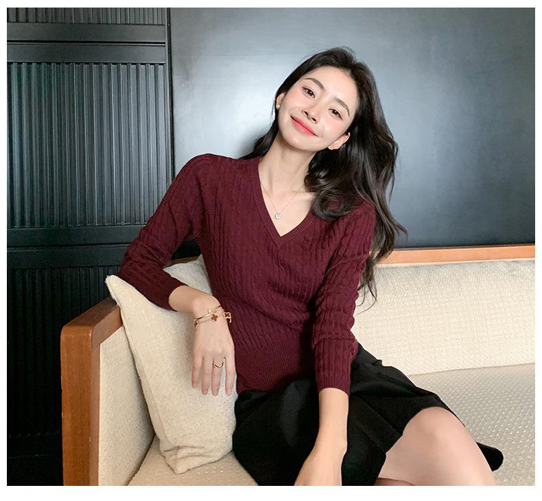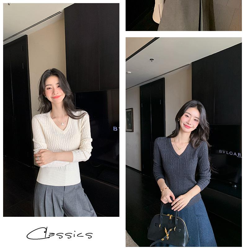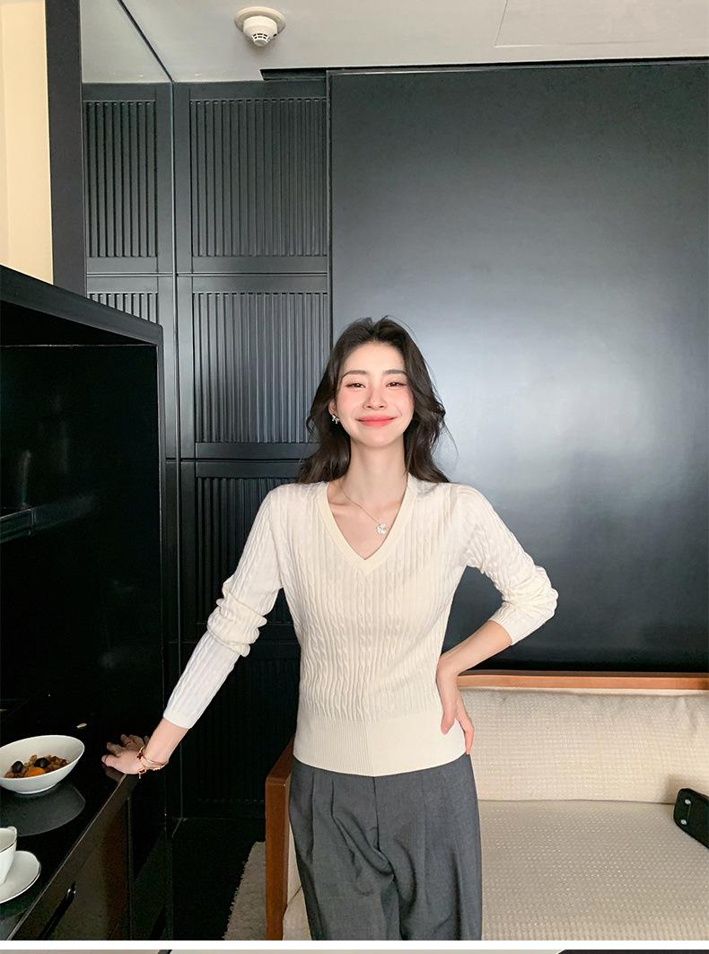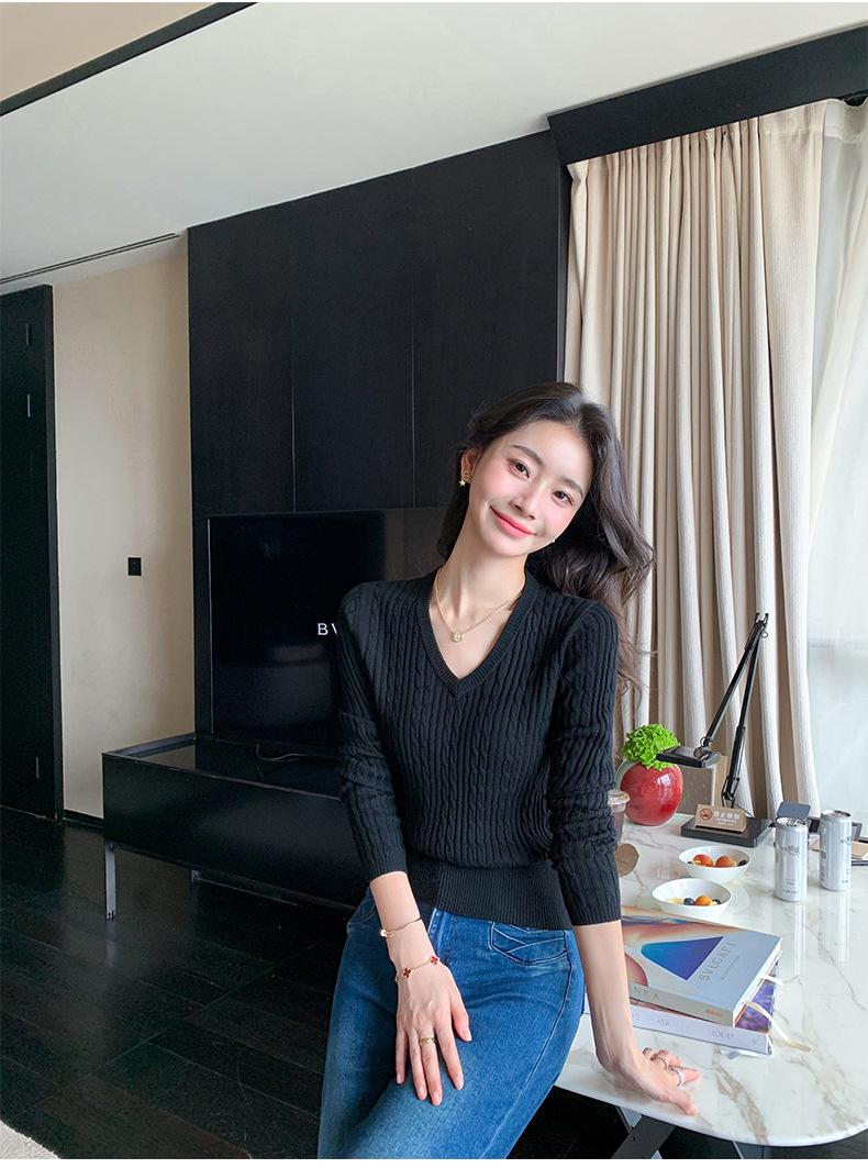 Cárdigan para mujer 100% Lana Pura Hilo Alemán Yangtze Tejido Punto Cuello V Manga Larga Punto Trenzado Adelgazante Suéter Base