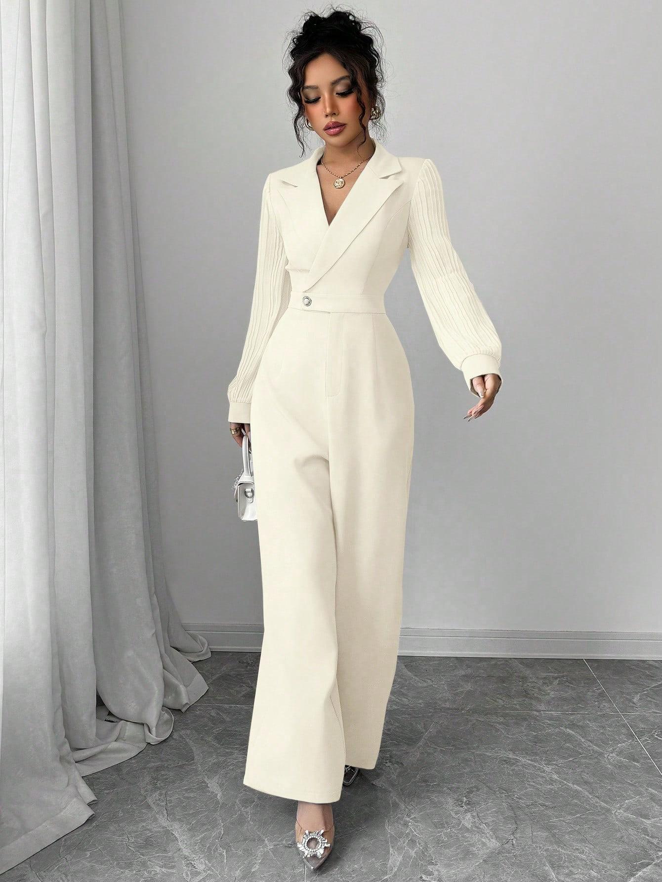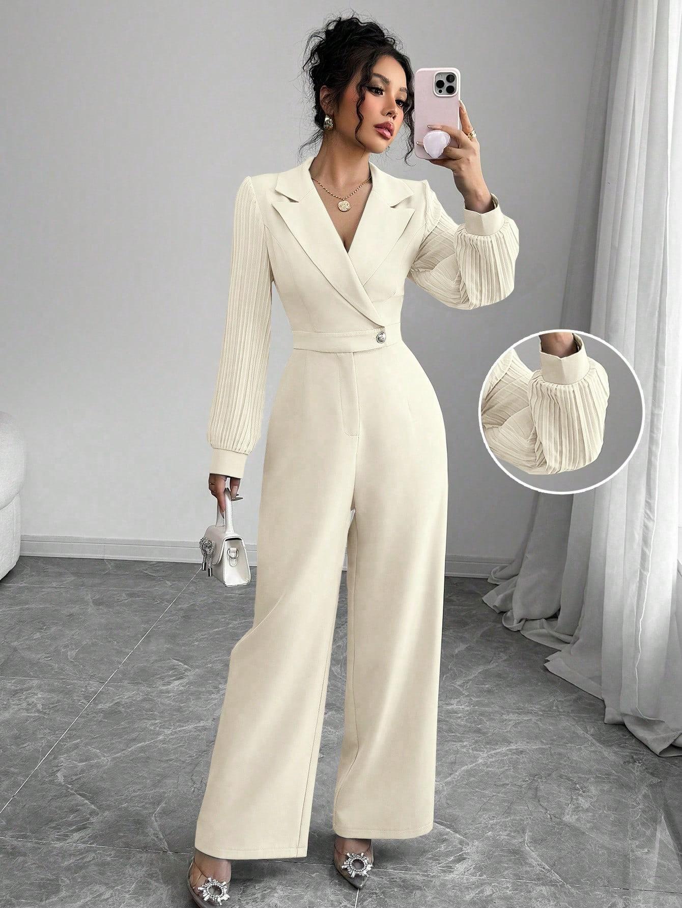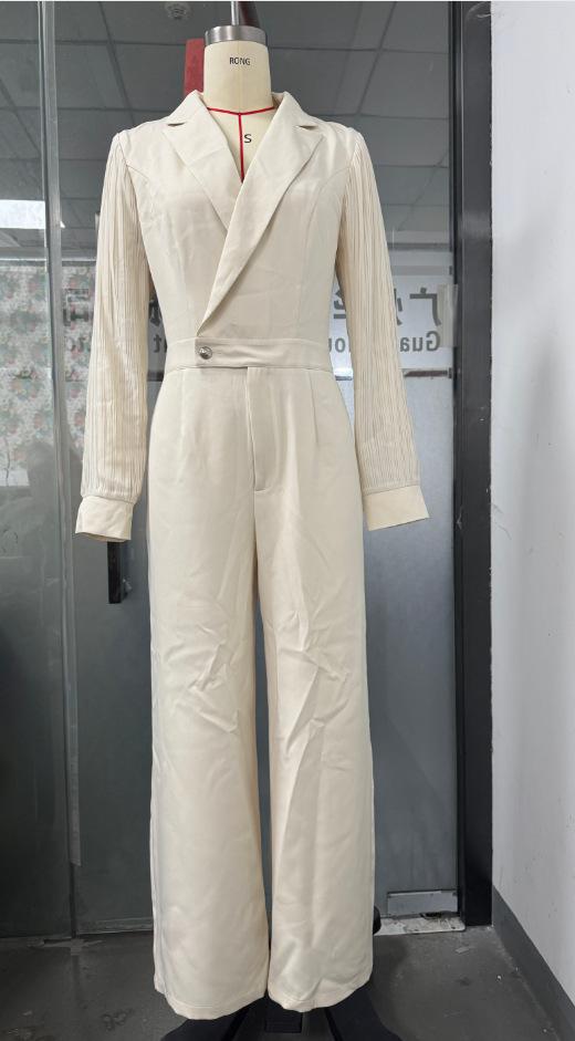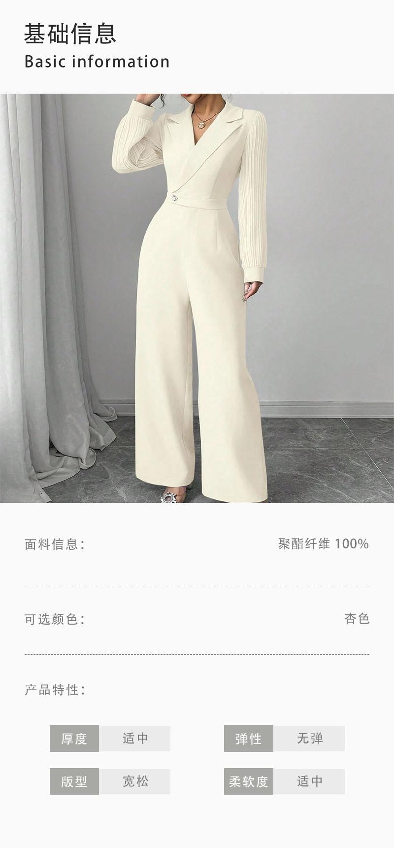 Albaricoque Otoño Estilo Europeo y Americano Drapeado de Alta Gama Mono para Mujer Comercio Exterior Casual Ropa Exterior Lujo Ligero Mono para Dama