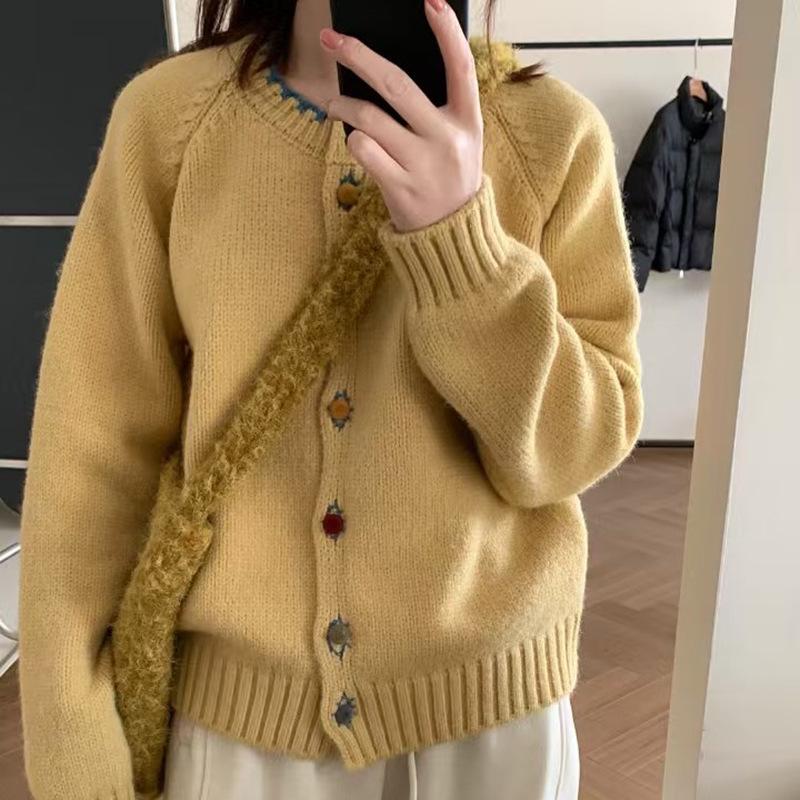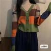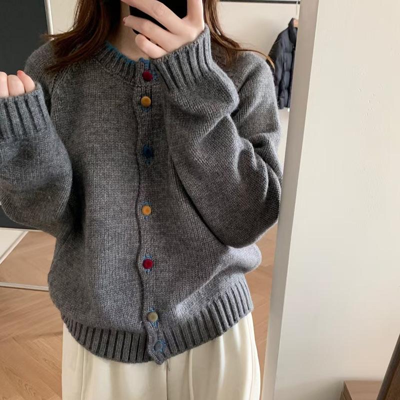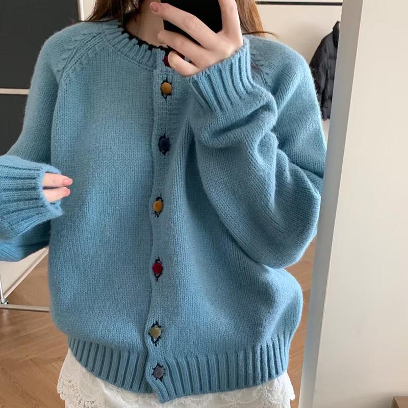 Cárdigan de punto estilo coreano con dopamina, colorido, de terciopelo, con botones de diseño, otoño e invierno, estilo suave, abrigo suéter A6712