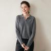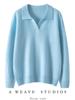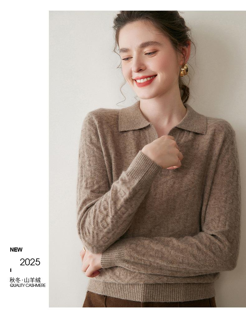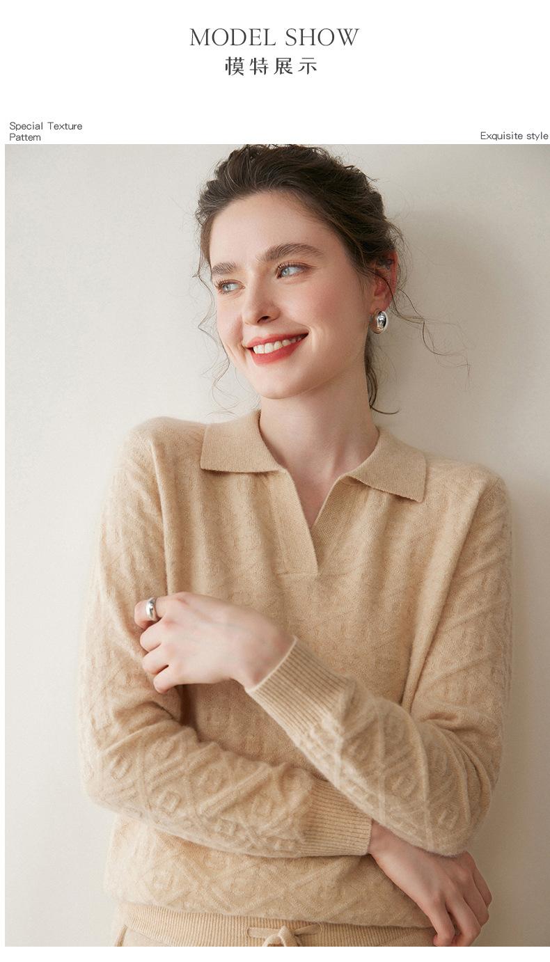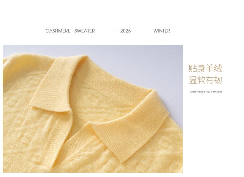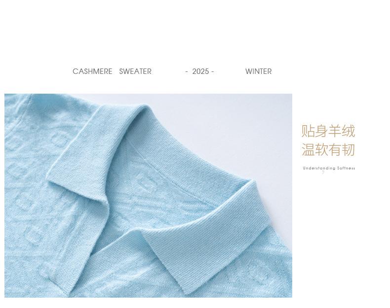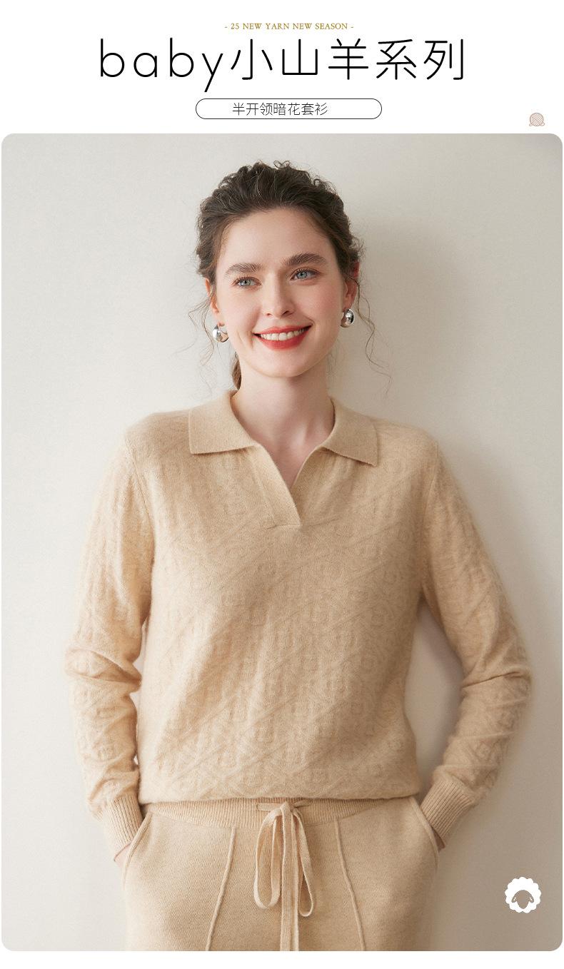 25 Otoño/Invierno Nuevo Suéter de Cachemira para Mujer Cuello Polo Medio Abierto Tejido Jacquard Camisa Base Temperamento Adelgazante Color Sólido