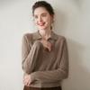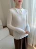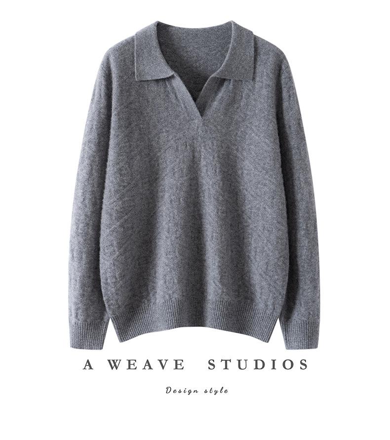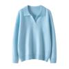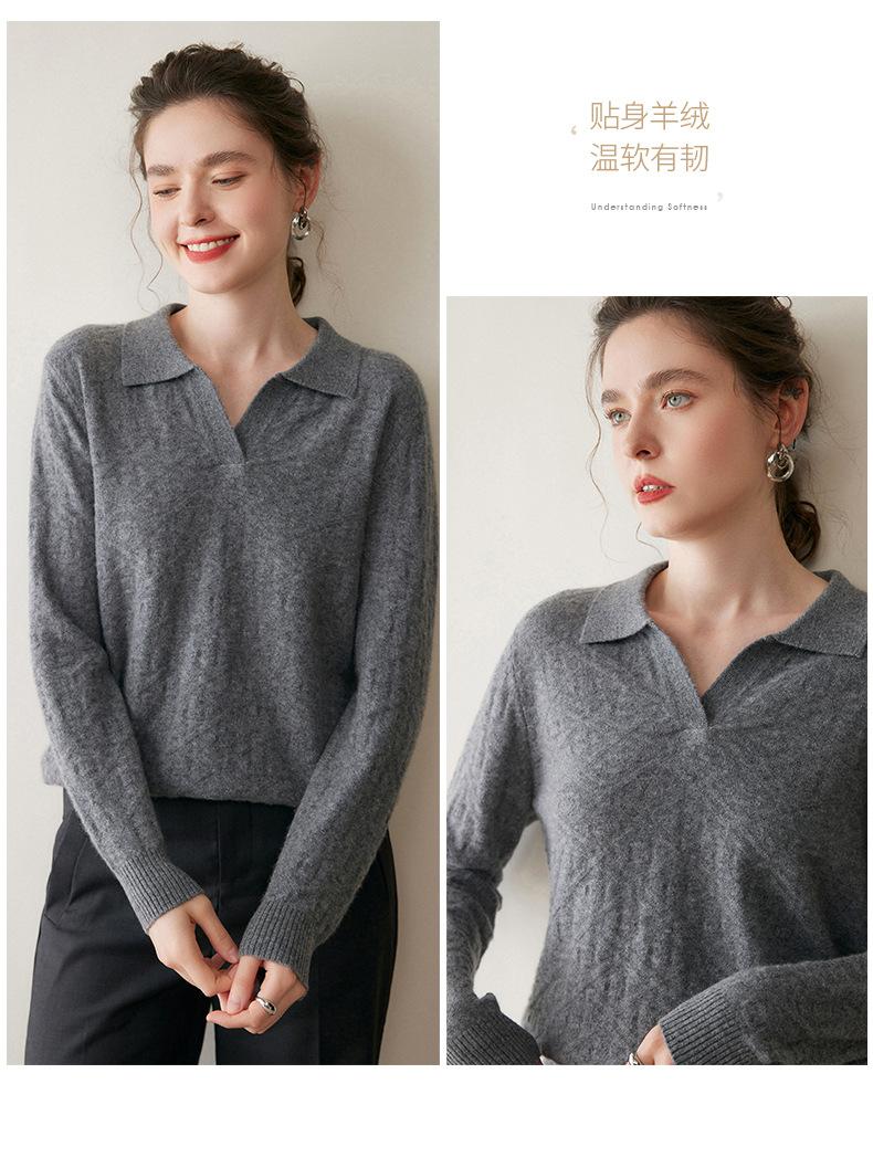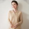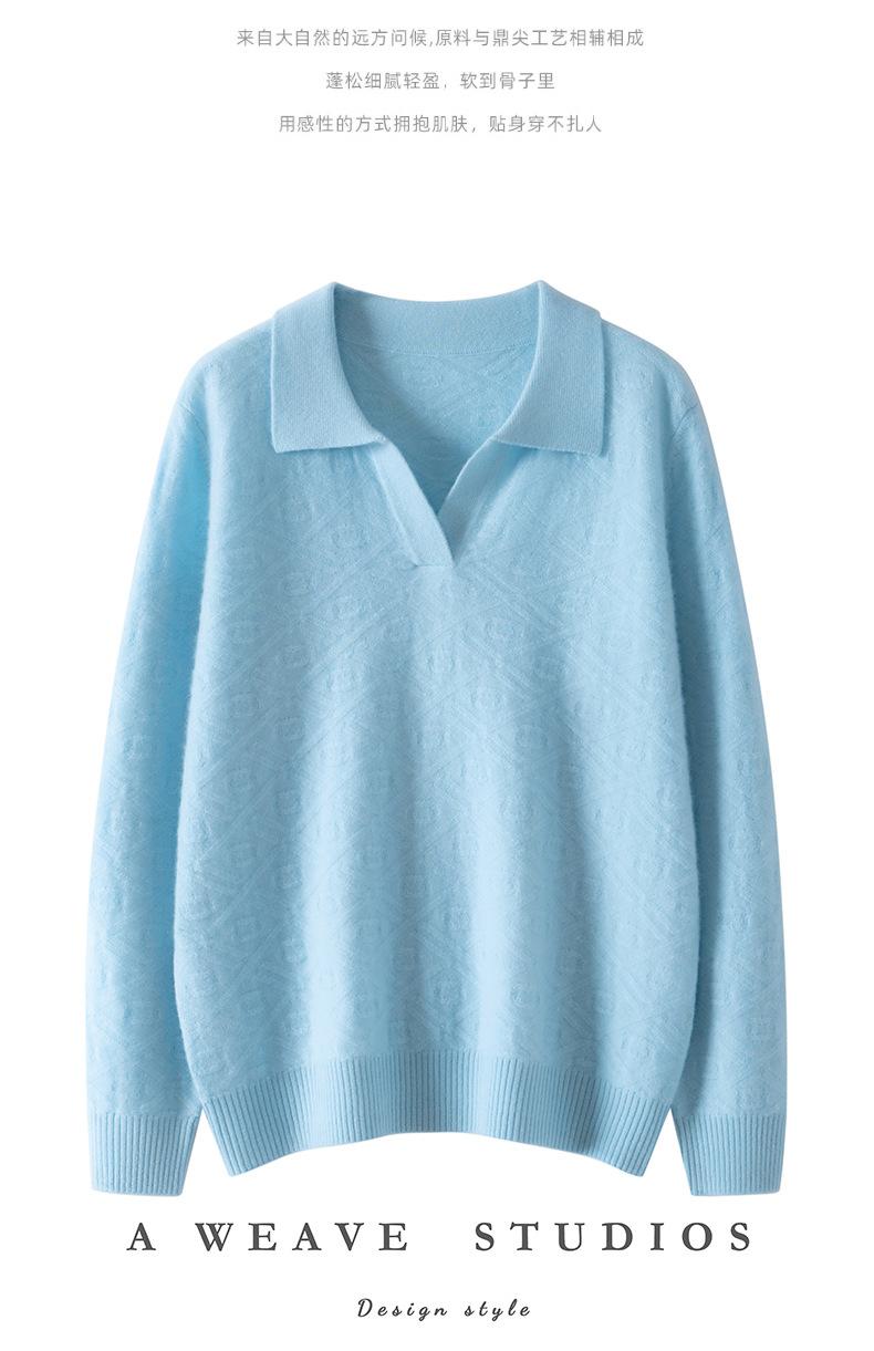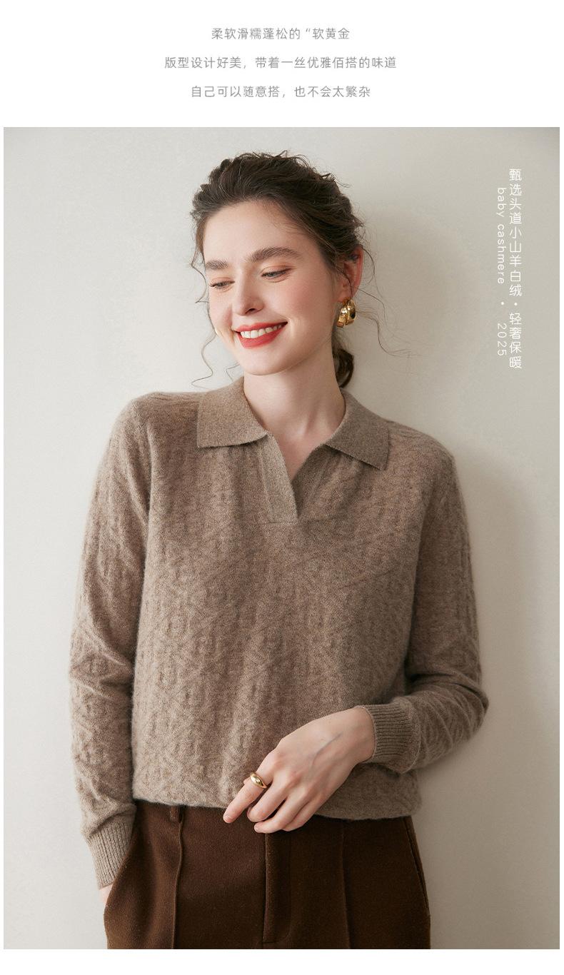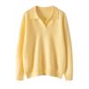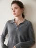 25 Otoño/Invierno Nuevo Suéter de Cachemira para Mujer Cuello Polo Medio Abierto Tejido Jacquard Camisa Base Temperamento Adelgazante Color Sólido