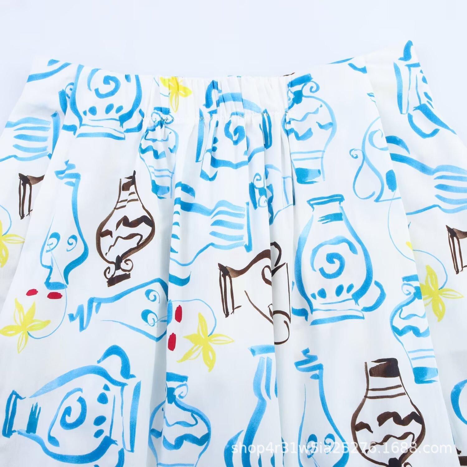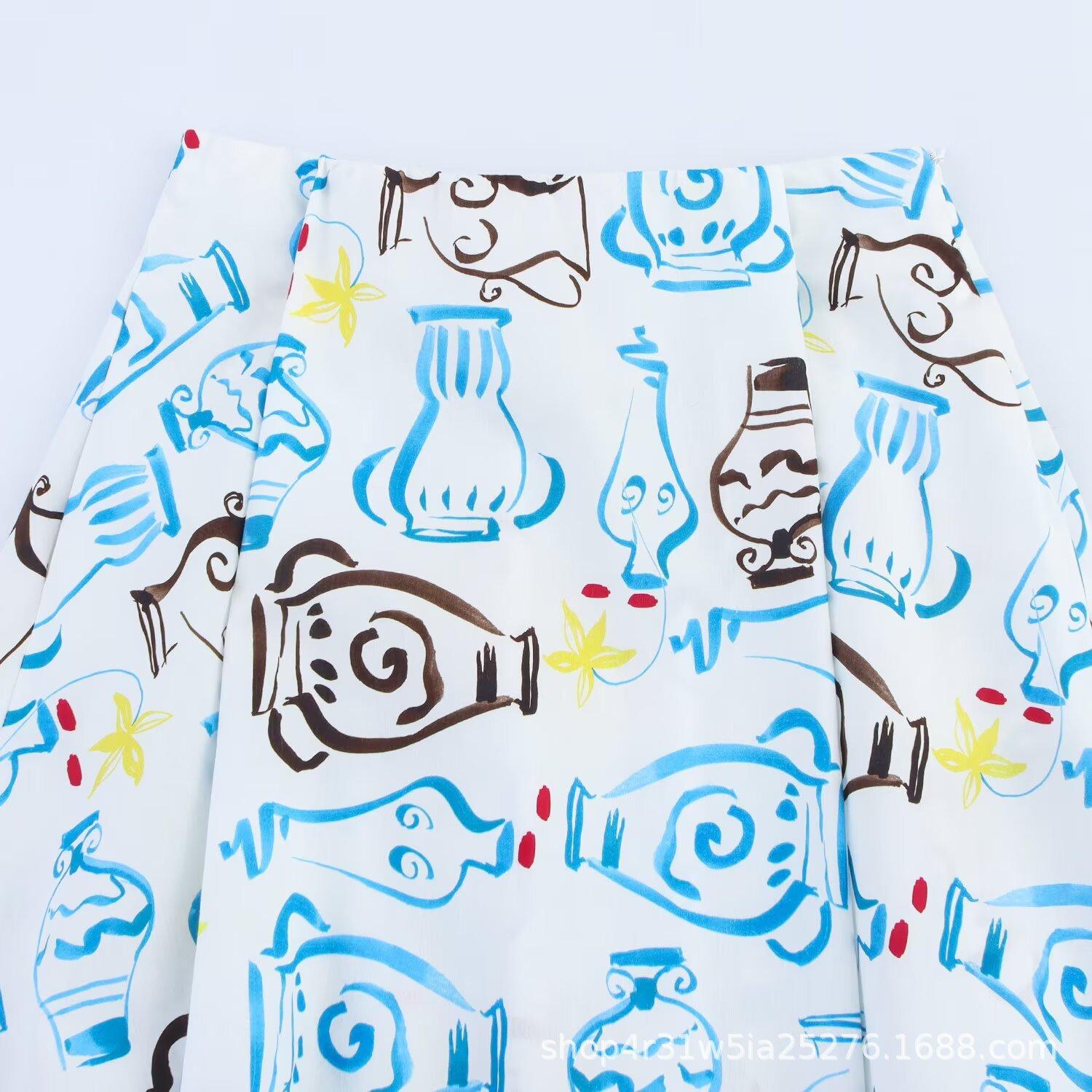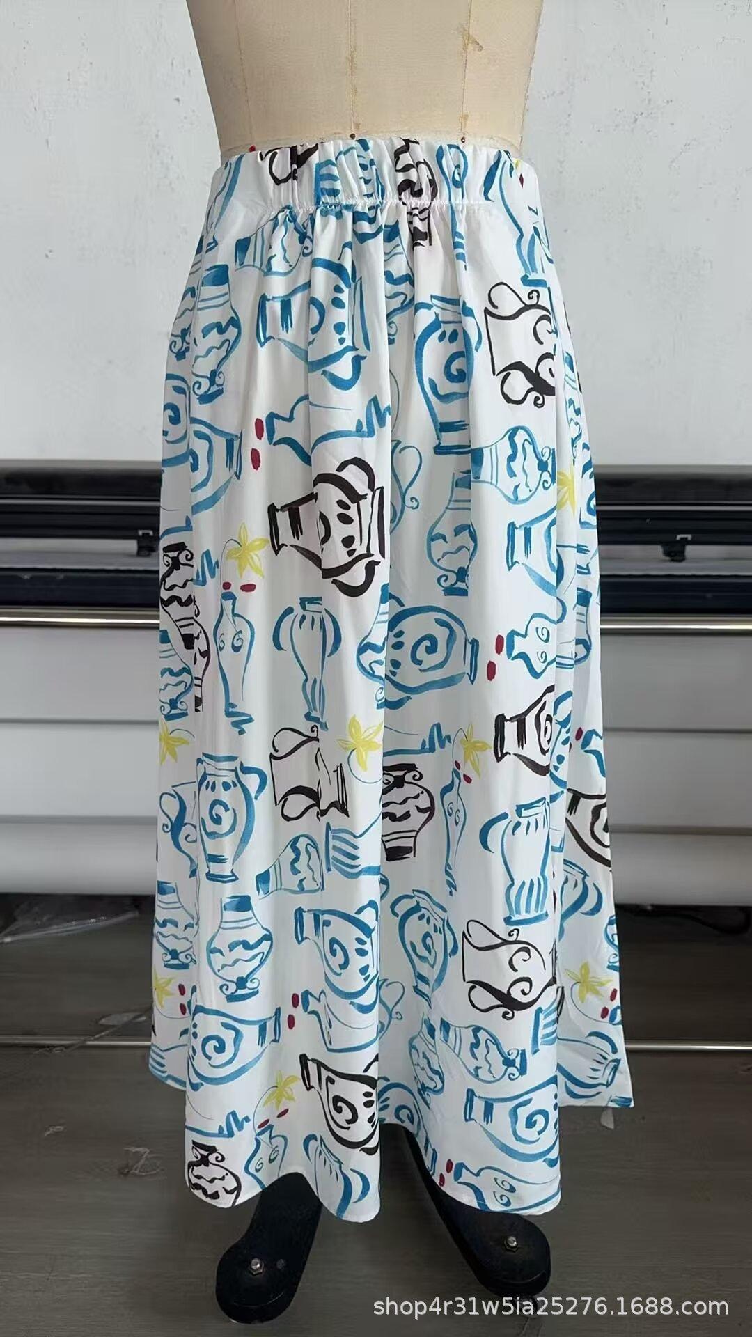 Ropa de Mujer de Estilo Europeo y Americano para Comercio Exterior 2025 Verano Nueva Moda Versátil Falda Midi Estampada Ajustada de Cintura Alta