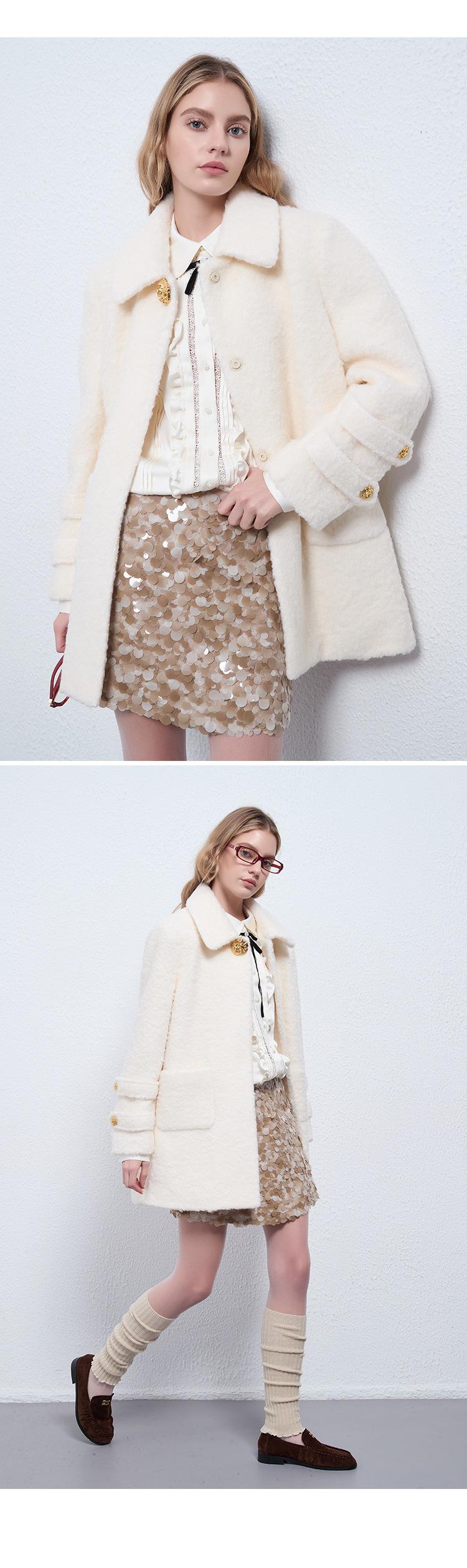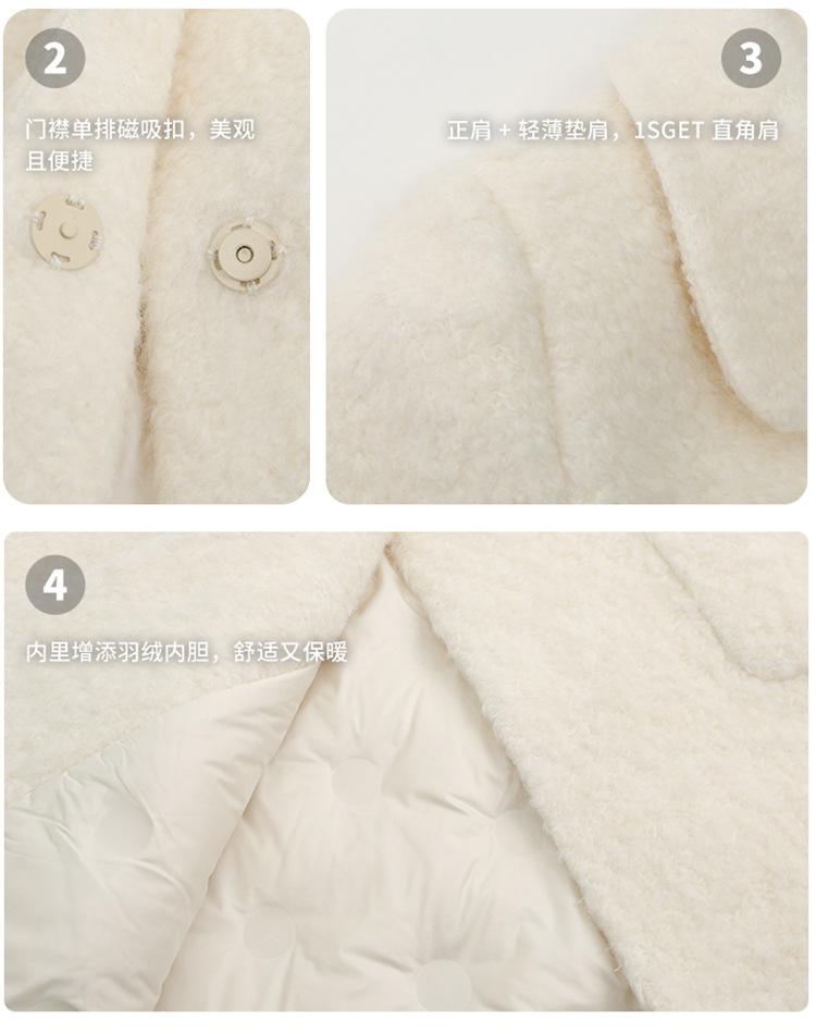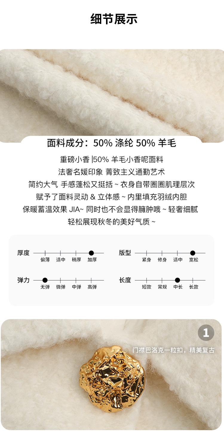 Xia Zhi Plumífero Interior 50% Lana Vintage Botón Metálico Estilo Pequeño Fragante Abrigo de Lana Chaqueta Plumífera Invierno