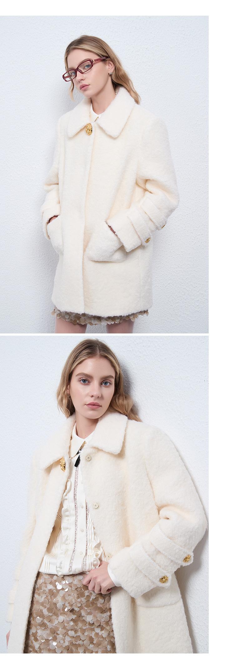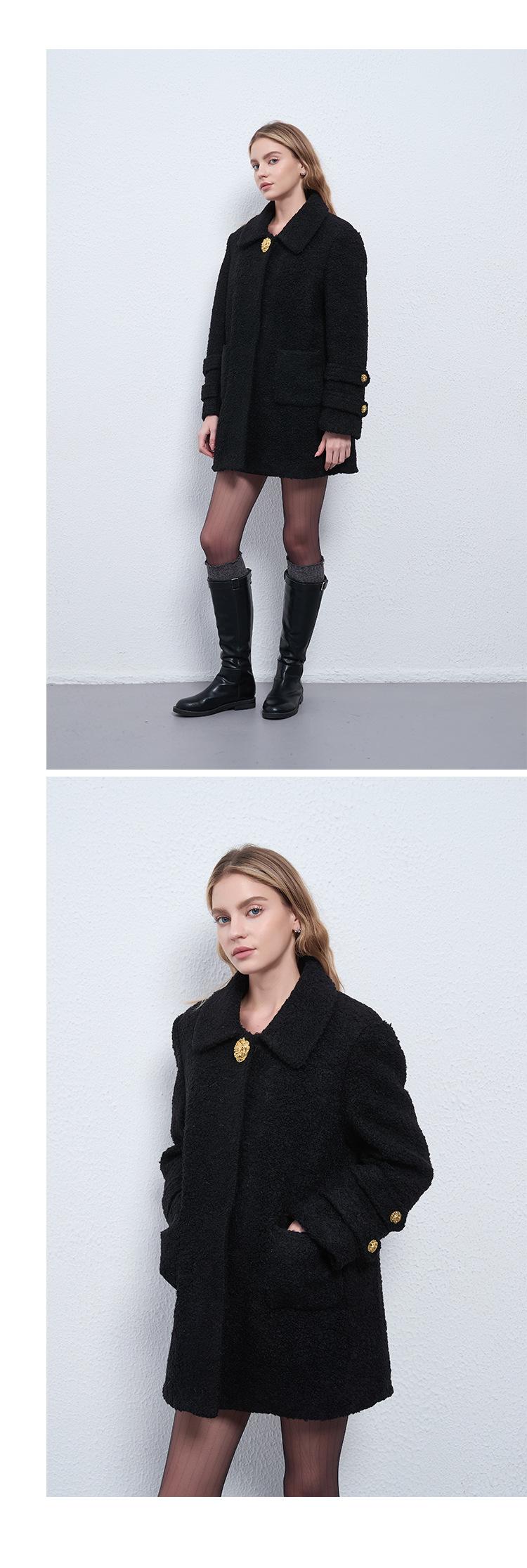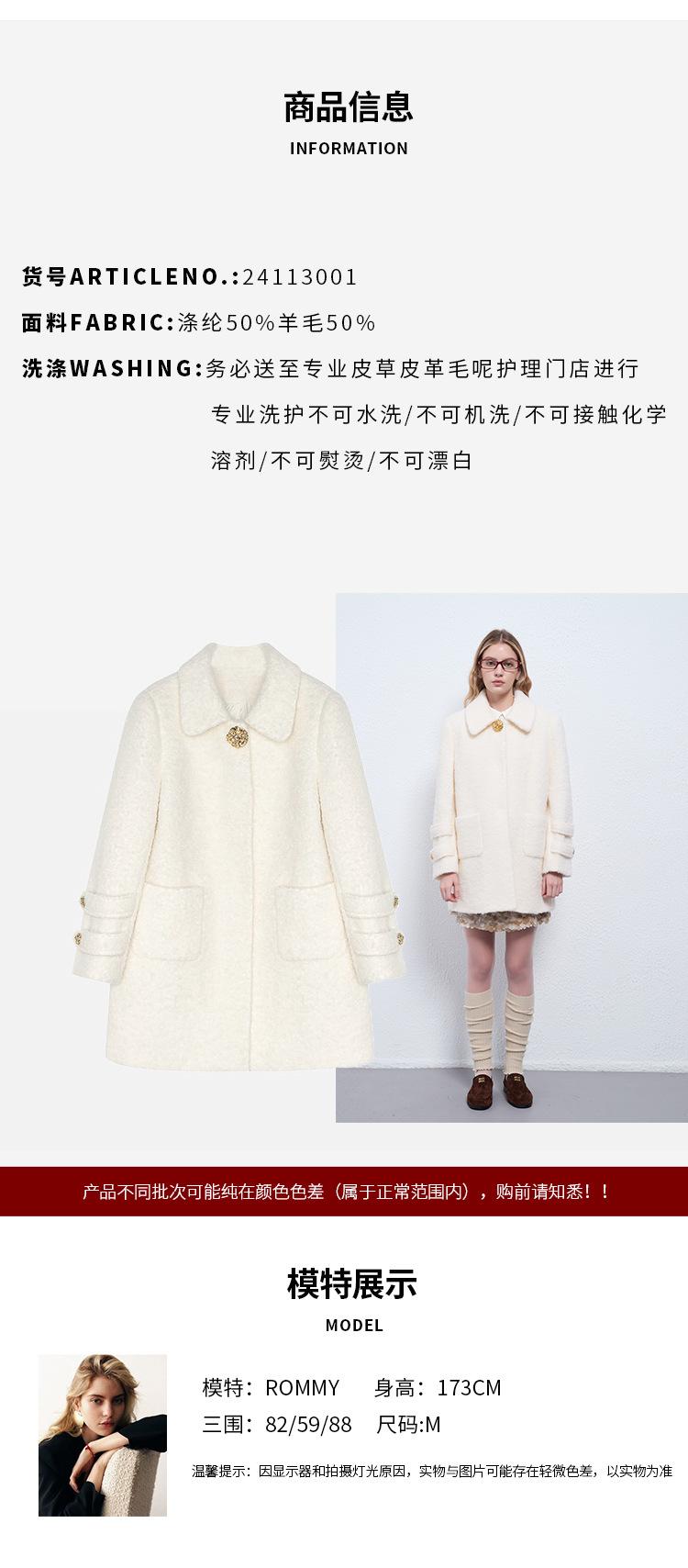 Xia Zhi Plumífero Interior 50% Lana Vintage Botón Metálico Estilo Pequeño Fragante Abrigo de Lana Chaqueta Plumífera Invierno