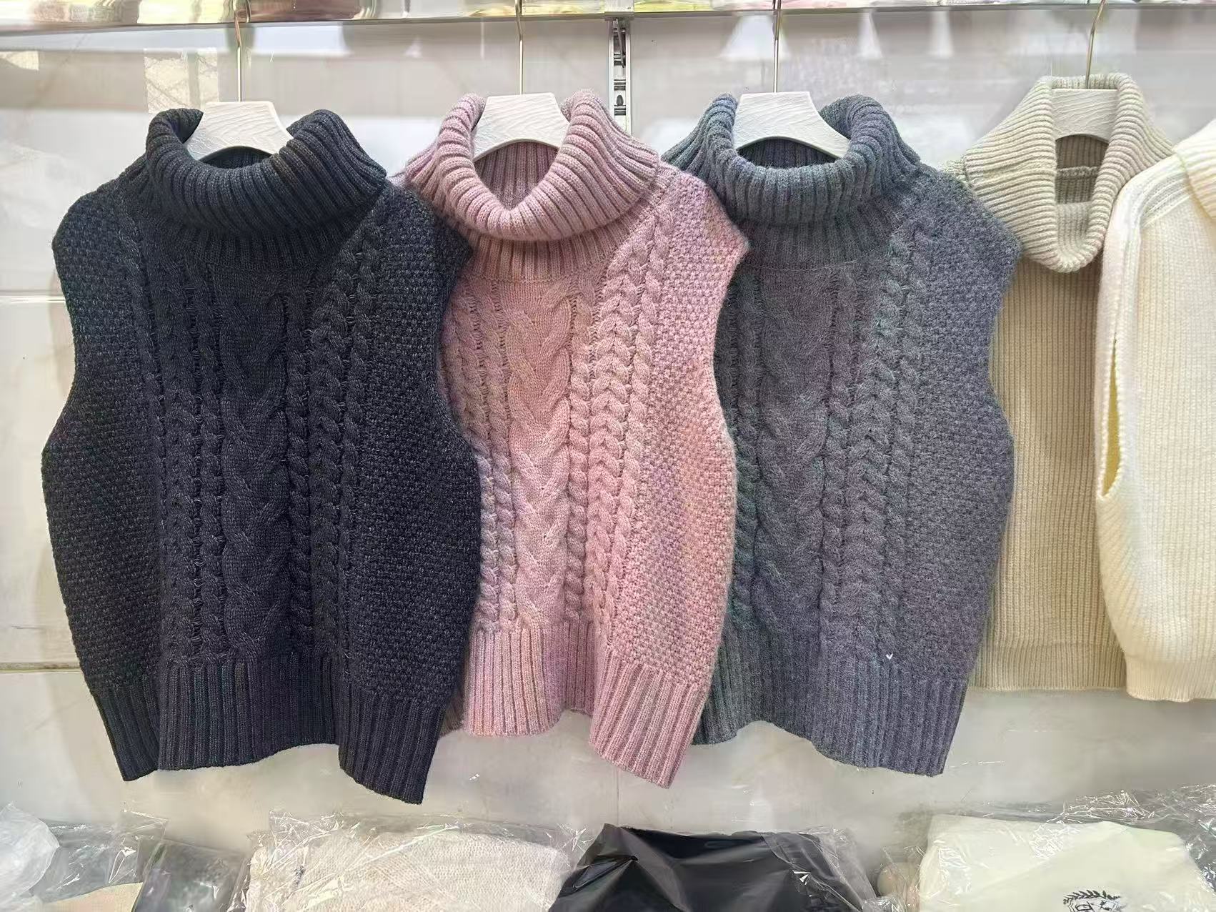 Otoño 2025 Estilo Europeo y Americano Nuevo Chaleco de Punto Trenzado de Moda para Mujer Top de Punto sin Mangas de Cuello Alto Chaleco