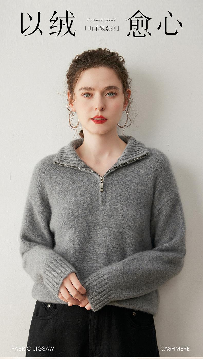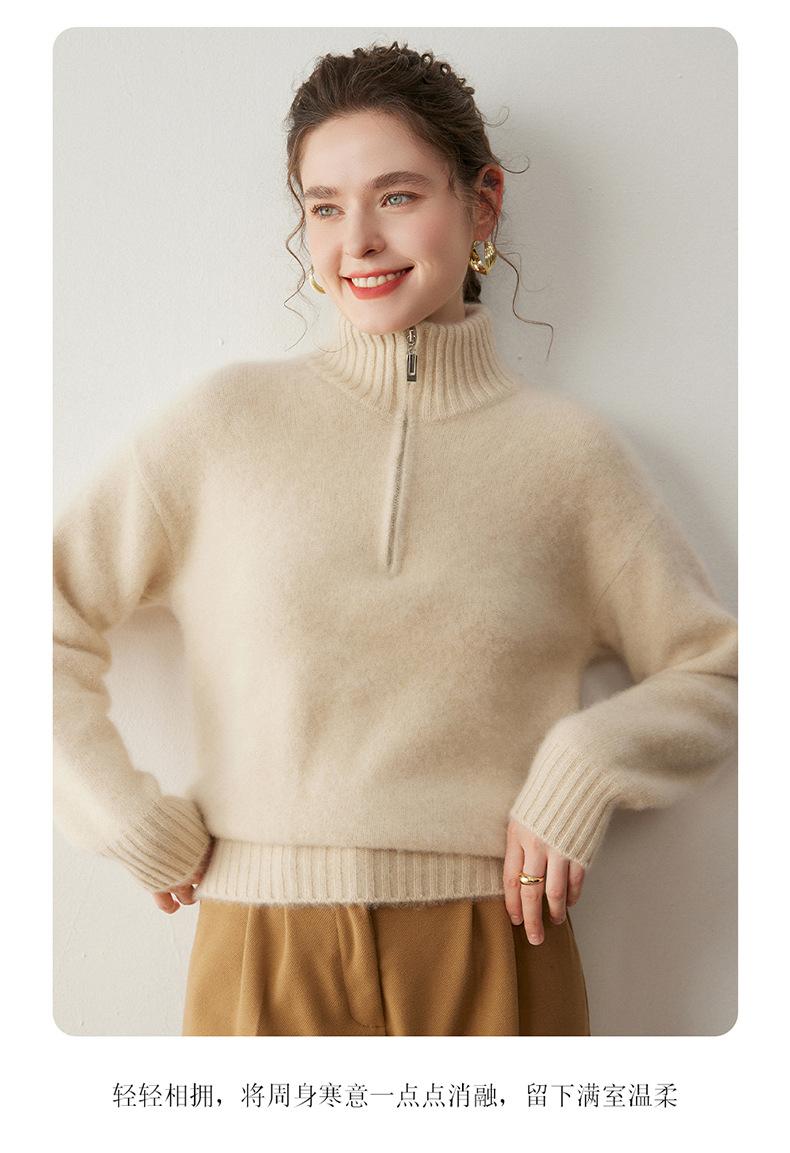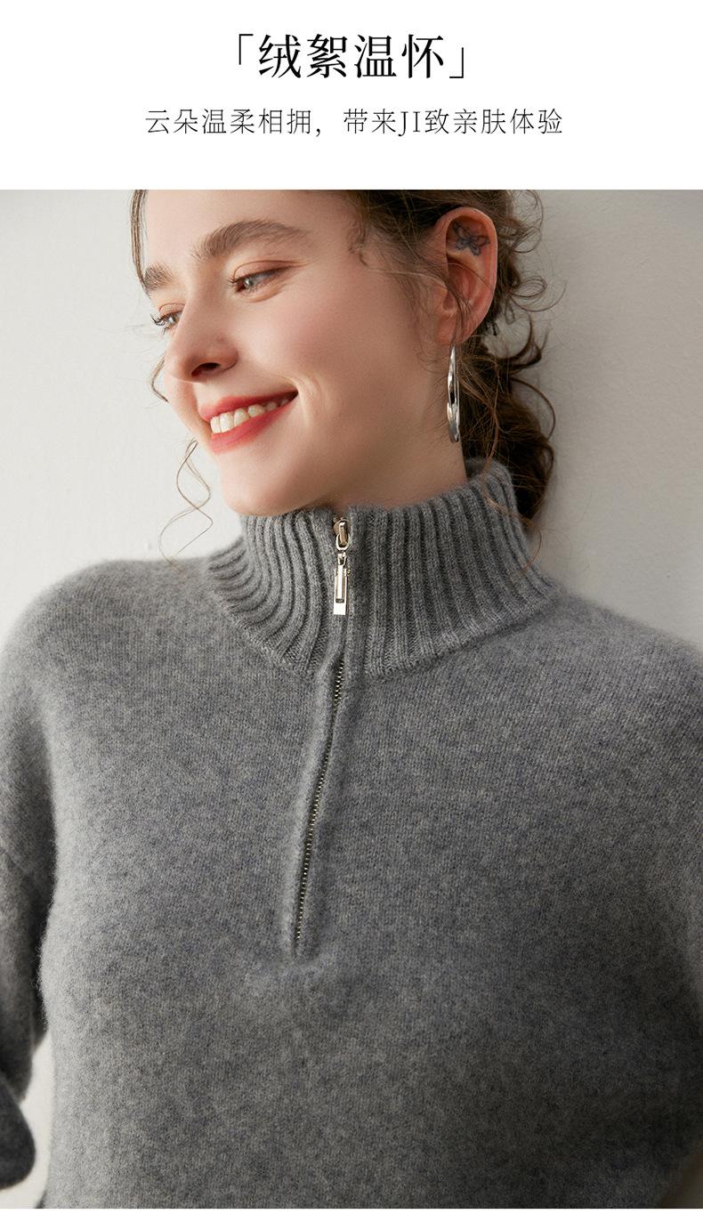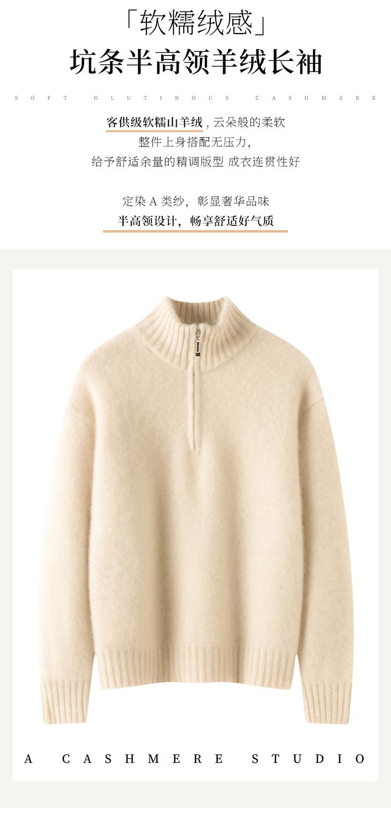 Cachemira Otoño Invierno Nuevo Camiseta de Base Holgada de Cuello Alto para Mujer Jersey de Color Sólido Estilo Casual Versátil Capa Interior Suéter de Punto