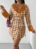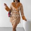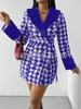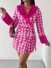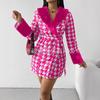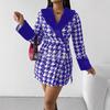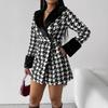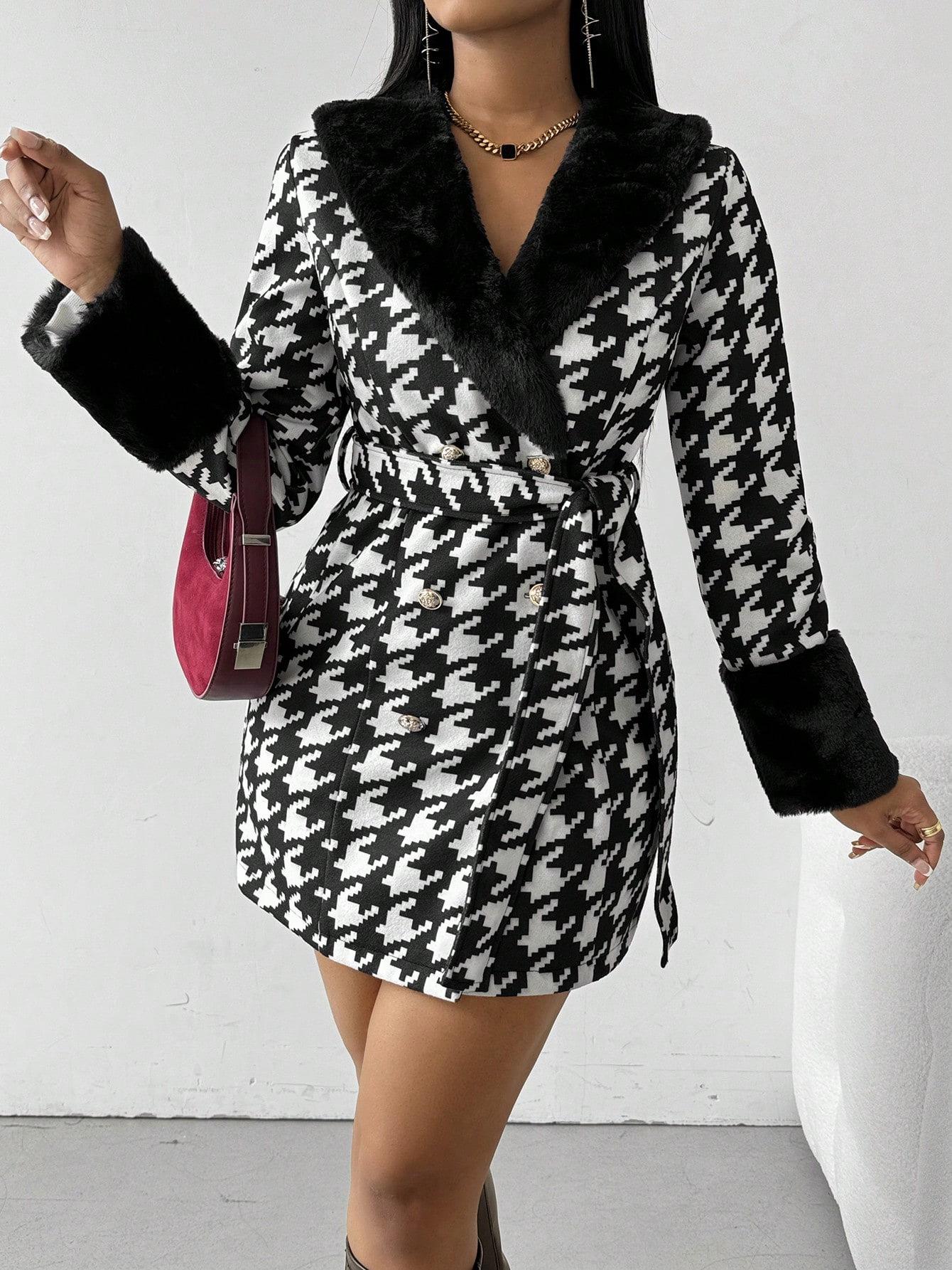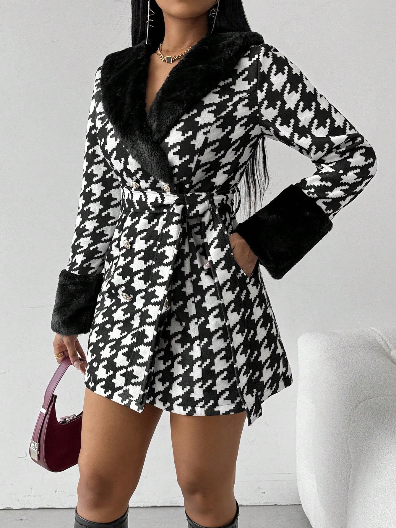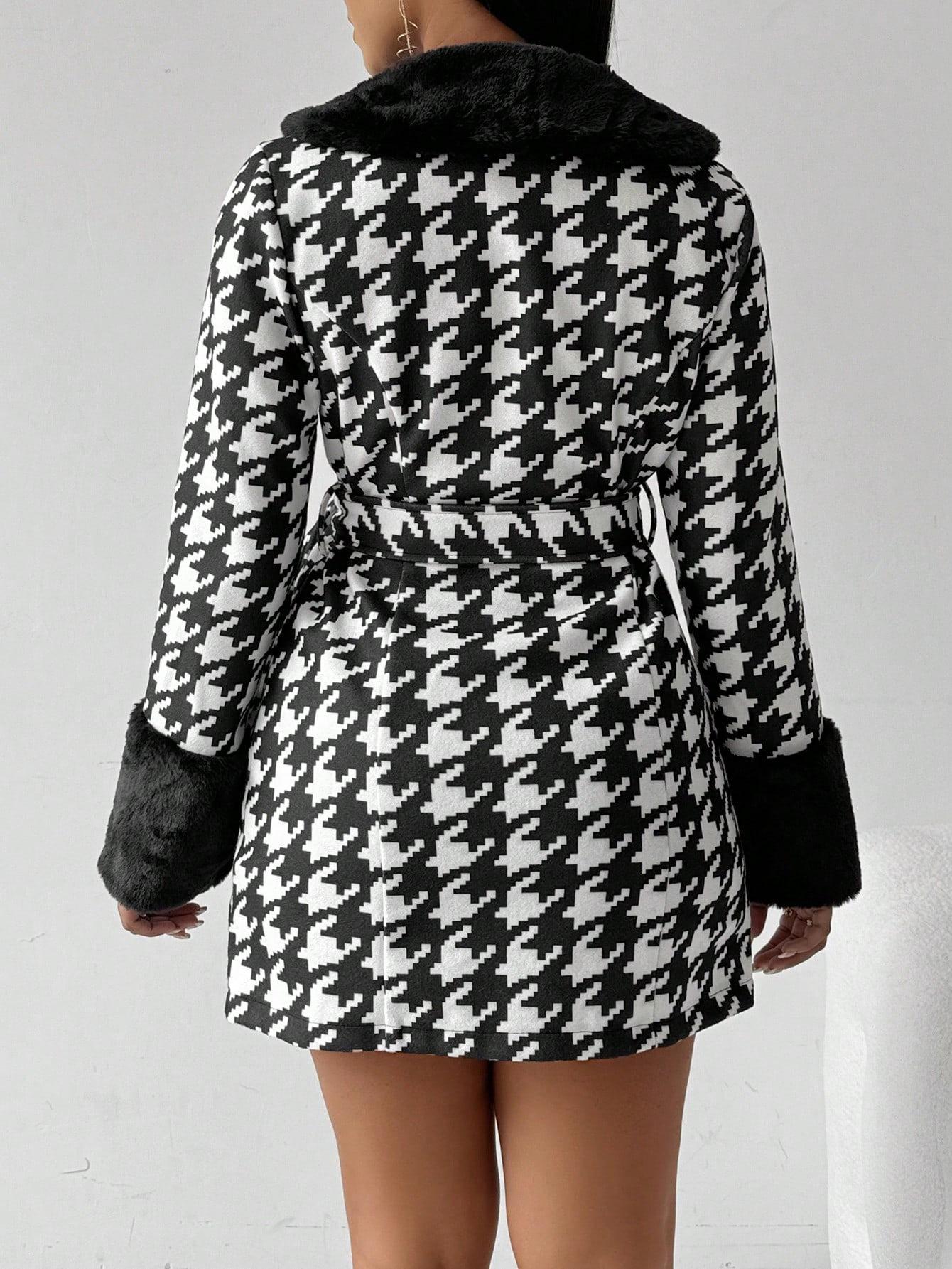 Abrigo de Lana para Mujer Europeo y Americano Transfronterizo con Costuras de Pata de Gallo en Blanco y Negro y Puños de Felpa