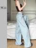 Pantalón de Chándal Rayado Gris para Mujer Otoño 2025 Nuevo Pantalón Recto de Pierna Ancha Petite de Cintura Alta Drapeado Suelto