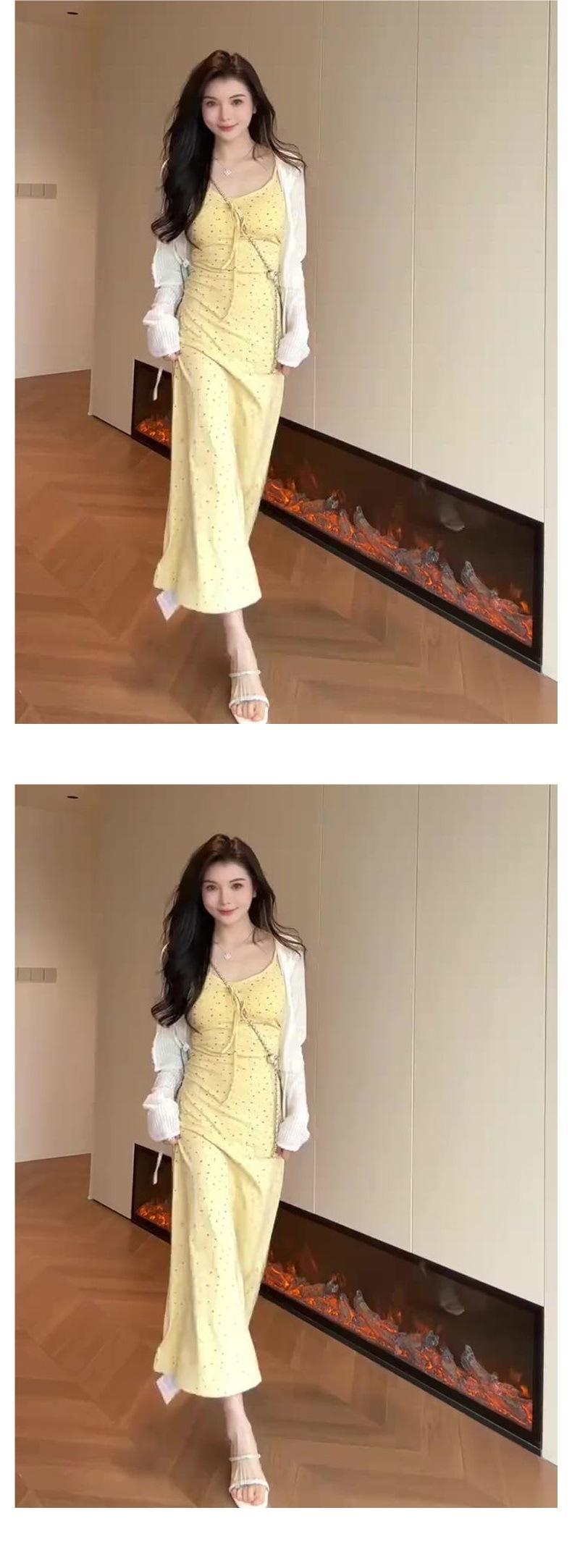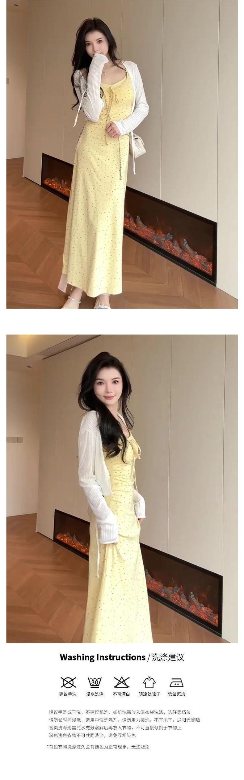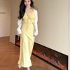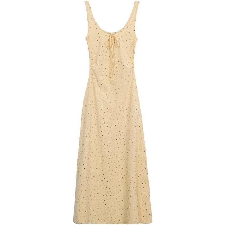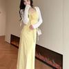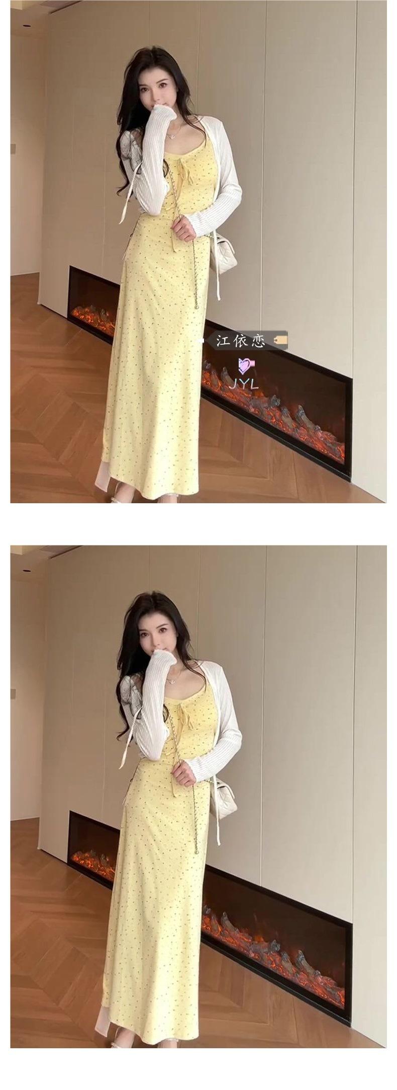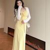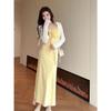 Temperamento Dulce Floral Francés Amarillo Camisola Vestido Mujer Verano Nueva Colección Adelgazante Ajustado Impresionante Vestido Largo