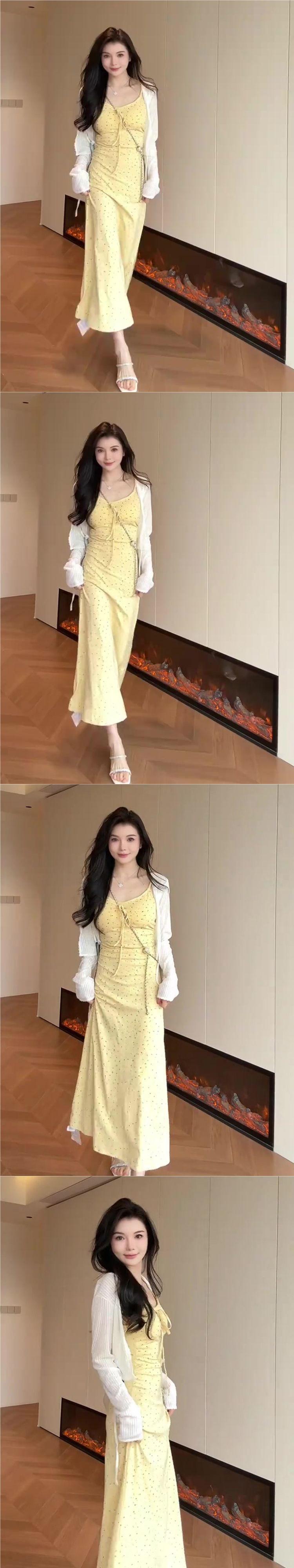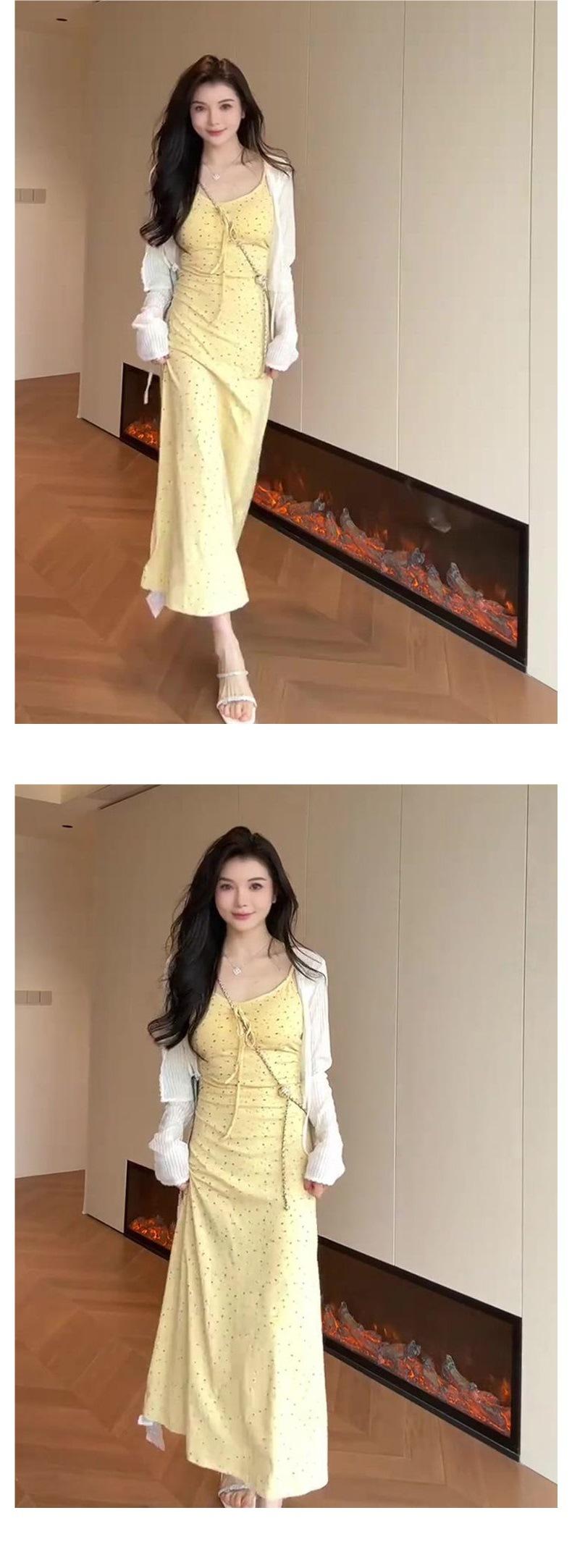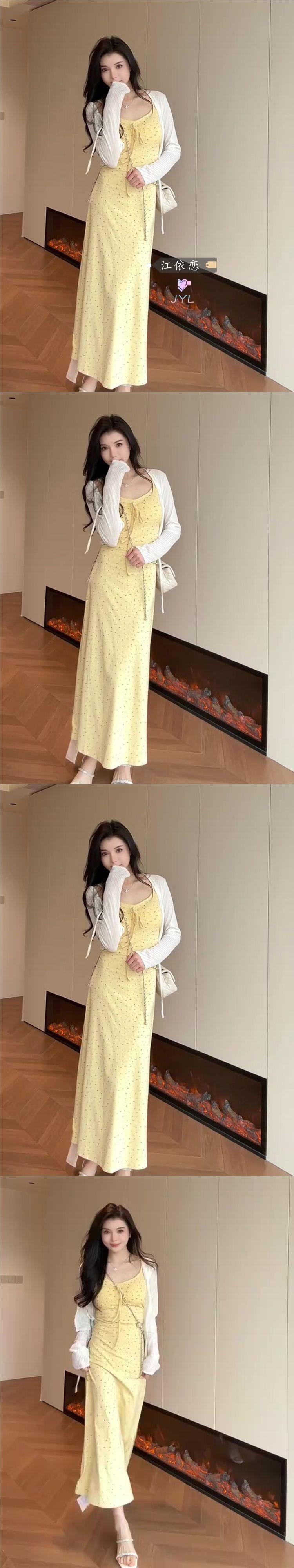 Temperamento Dulce Floral Francés Amarillo Camisola Vestido Mujer Verano Nueva Colección Adelgazante Ajustado Impresionante Vestido Largo