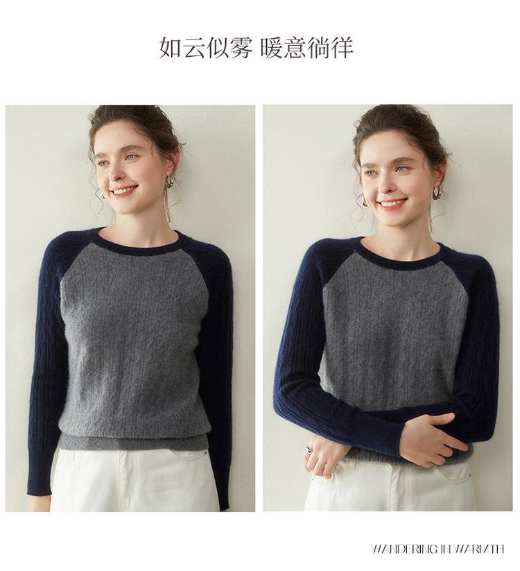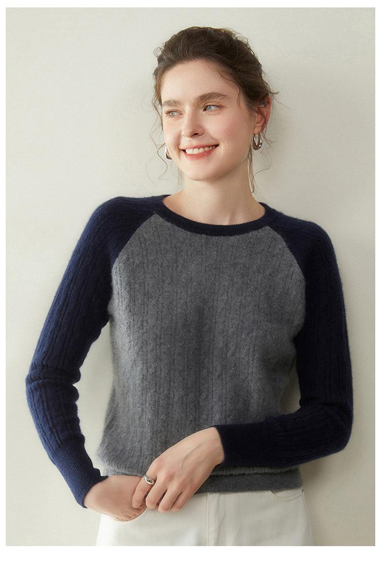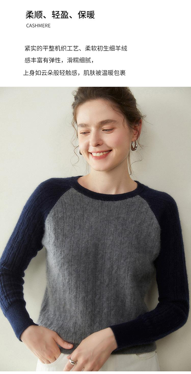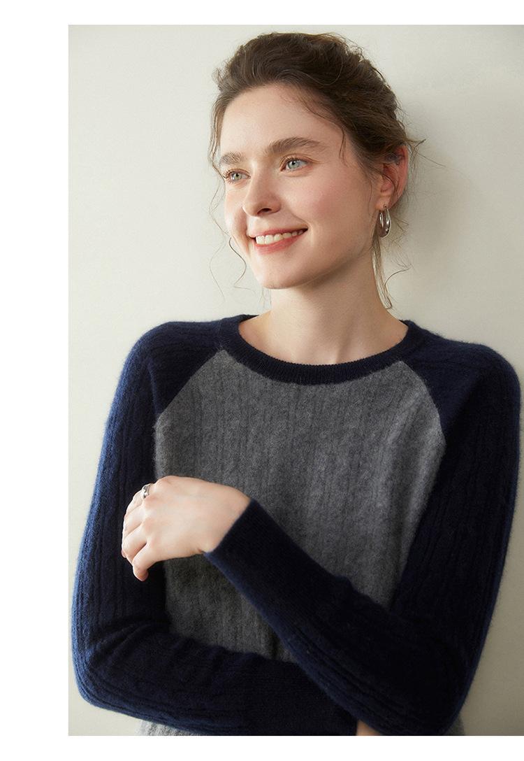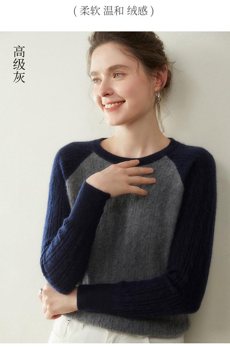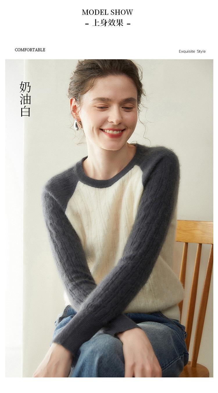 Suéter de Cachemira Nuevo de Otoño e Invierno para Mujer, Jersey de Cuello Redondo, Bloque de Color, Tejido Base, Suéter Holgado Adelgazante, Top de Capa Interior