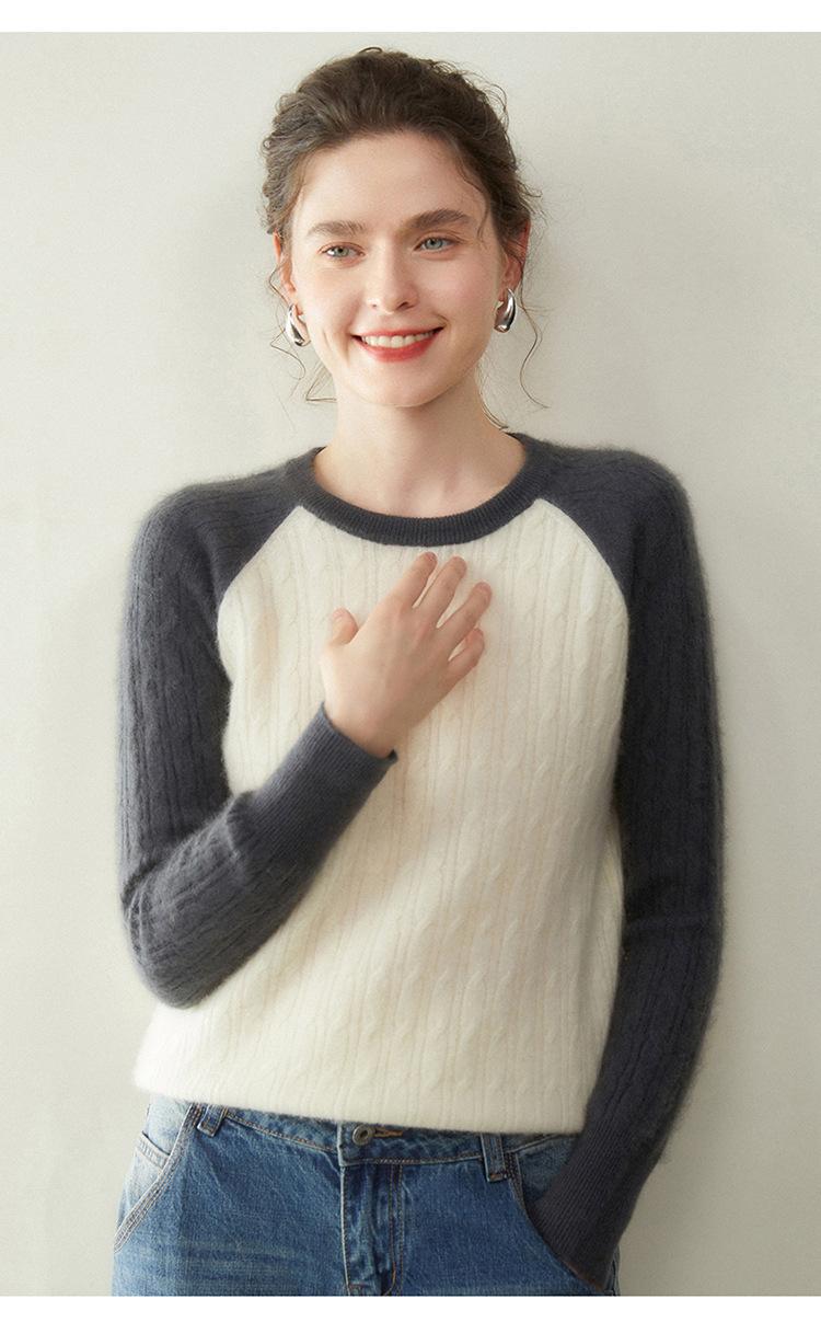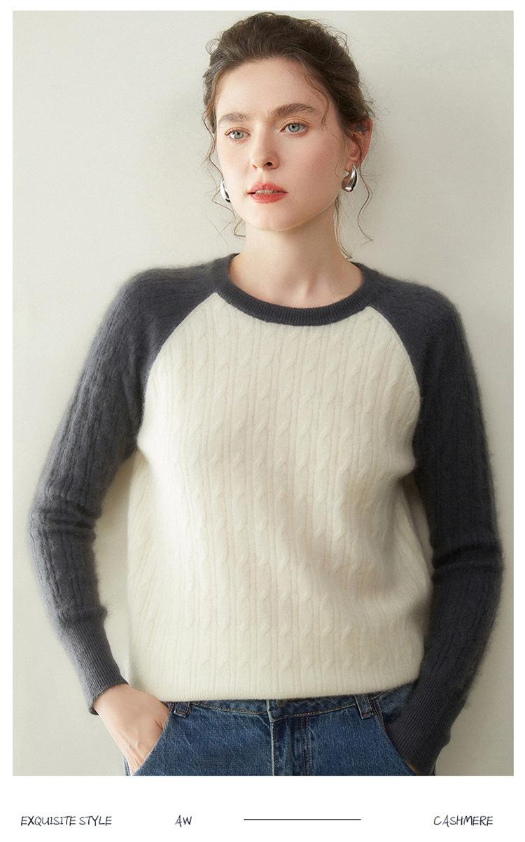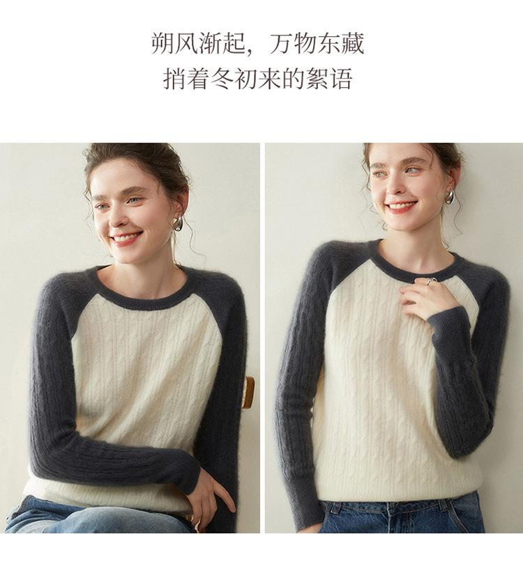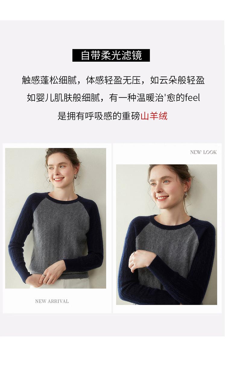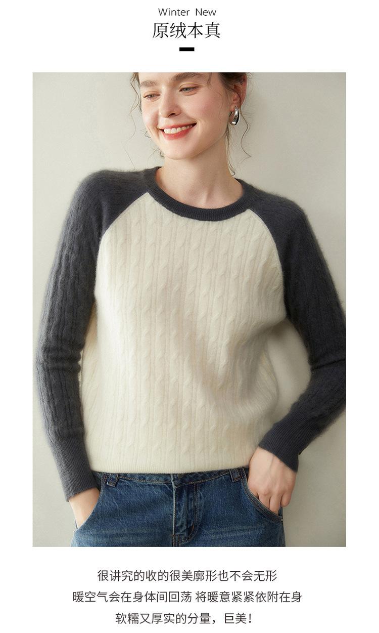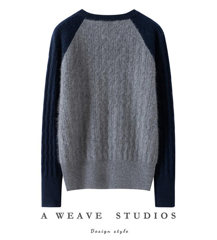 Suéter de Cachemira Nuevo de Otoño e Invierno para Mujer, Jersey de Cuello Redondo, Bloque de Color, Tejido Base, Suéter Holgado Adelgazante, Top de Capa Interior