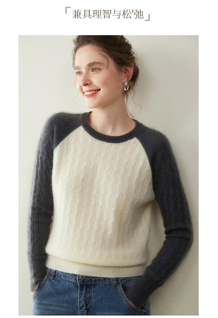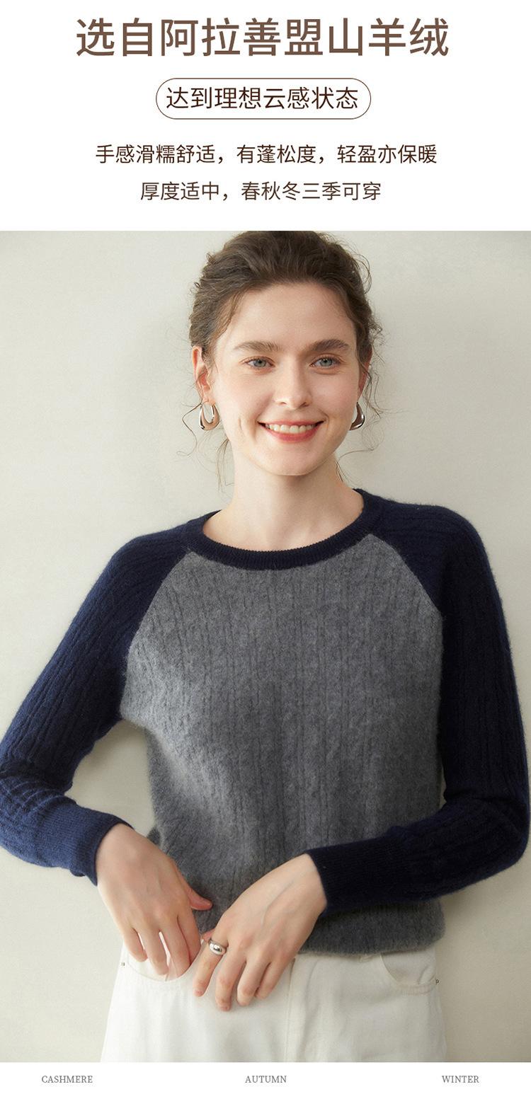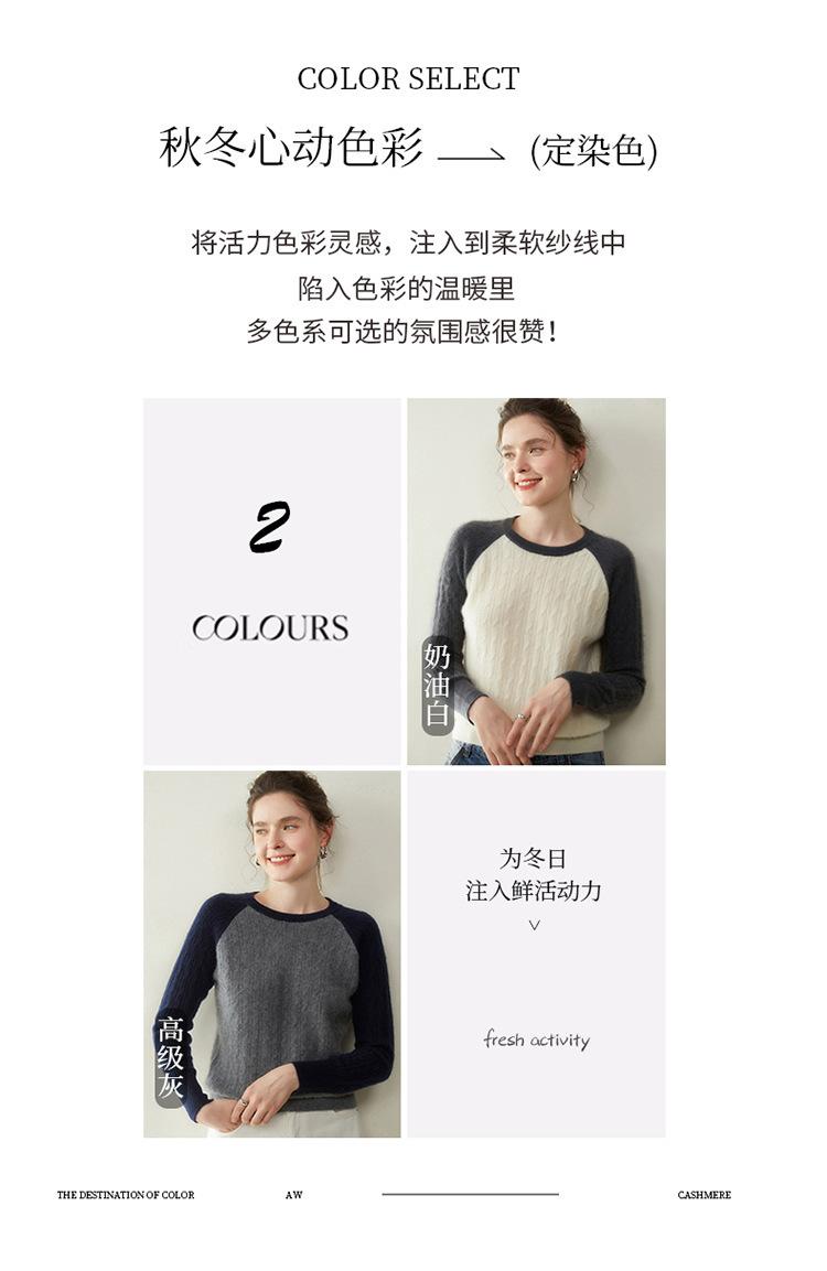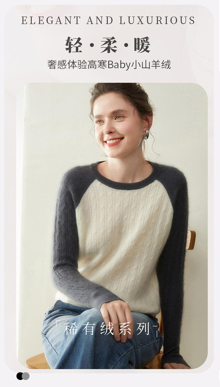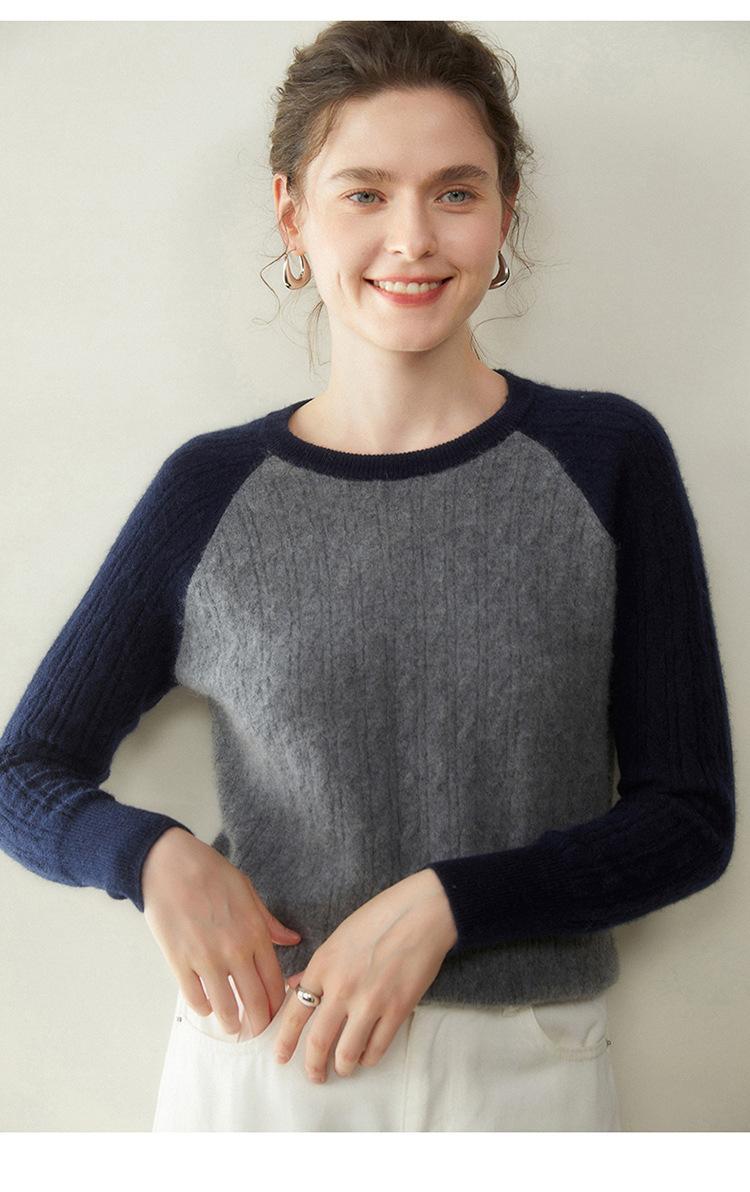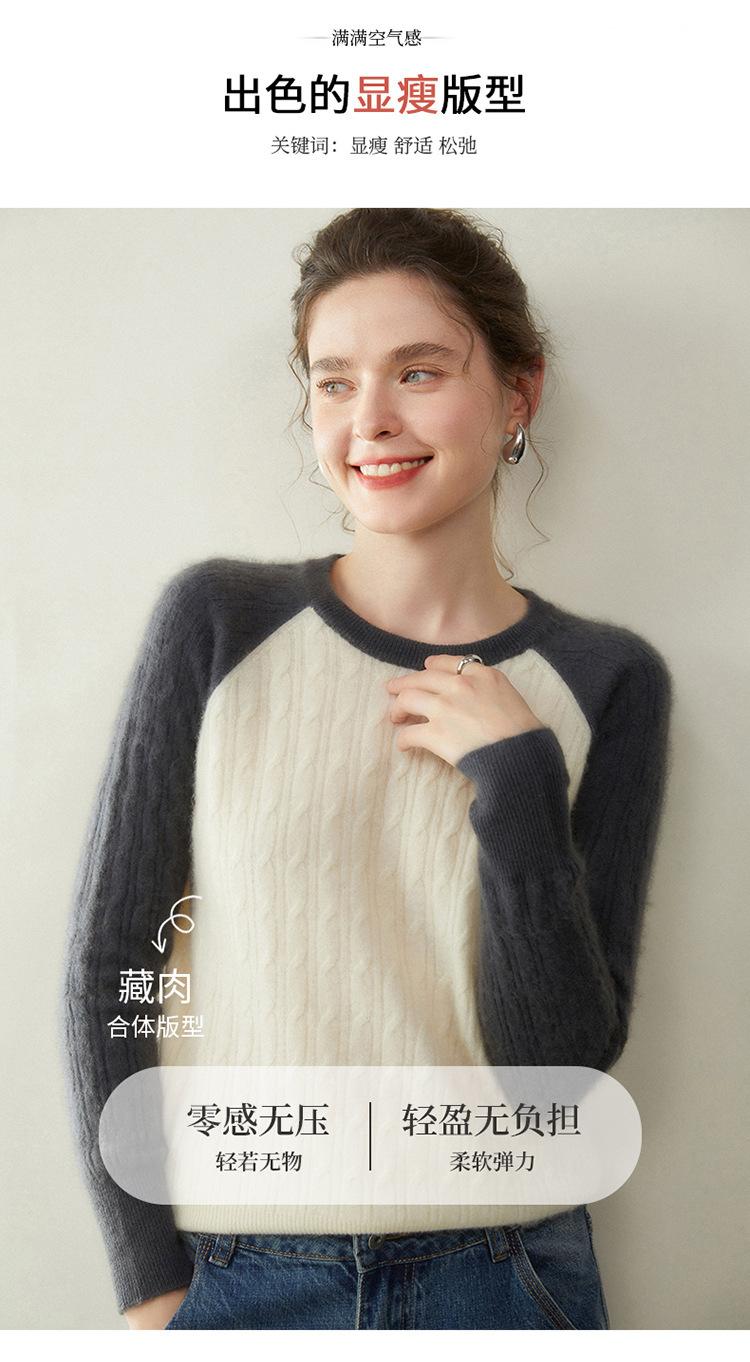 Suéter de Cachemira Nuevo de Otoño e Invierno para Mujer, Jersey de Cuello Redondo, Bloque de Color, Tejido Base, Suéter Holgado Adelgazante, Top de Capa Interior