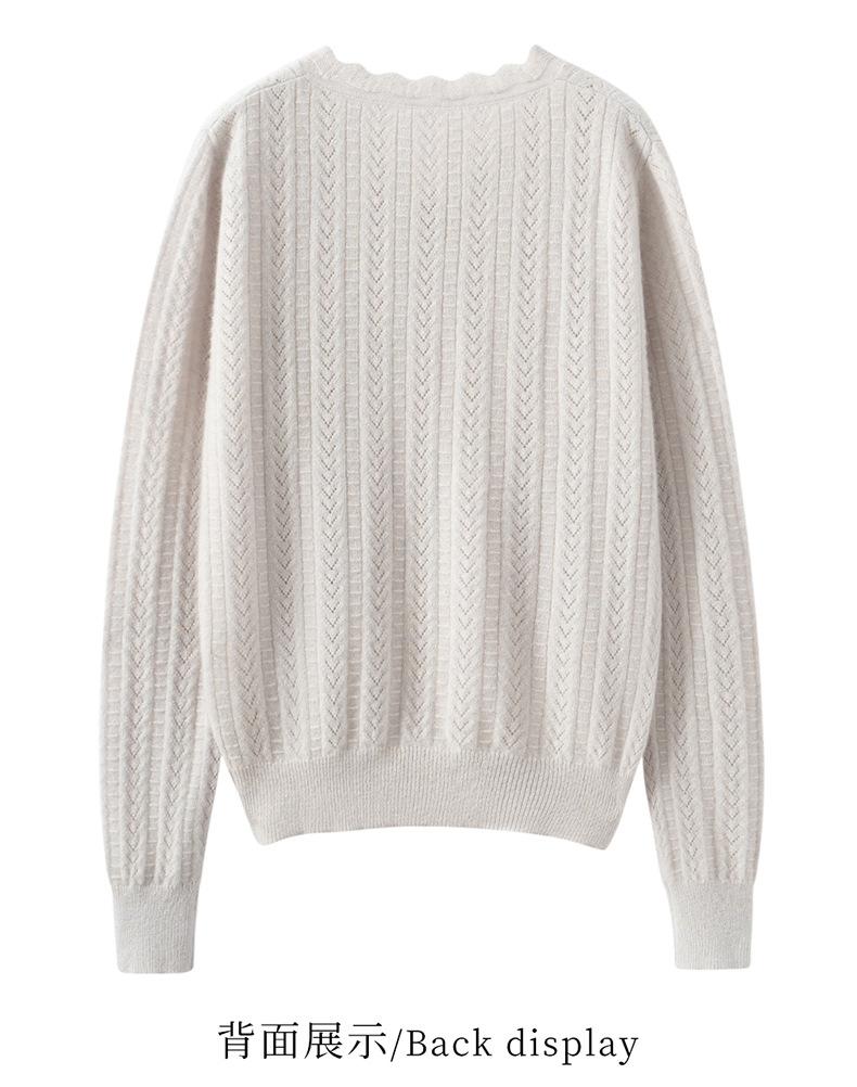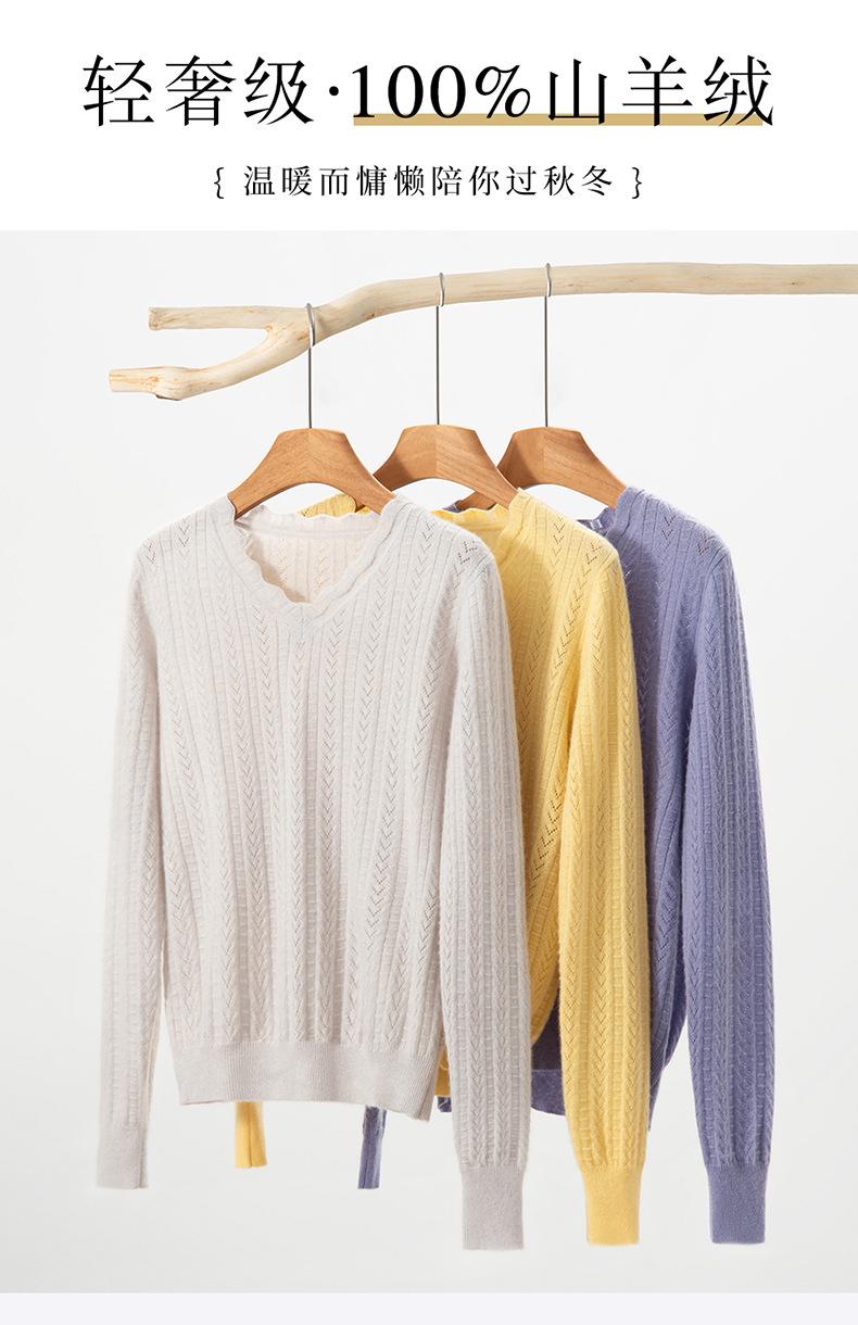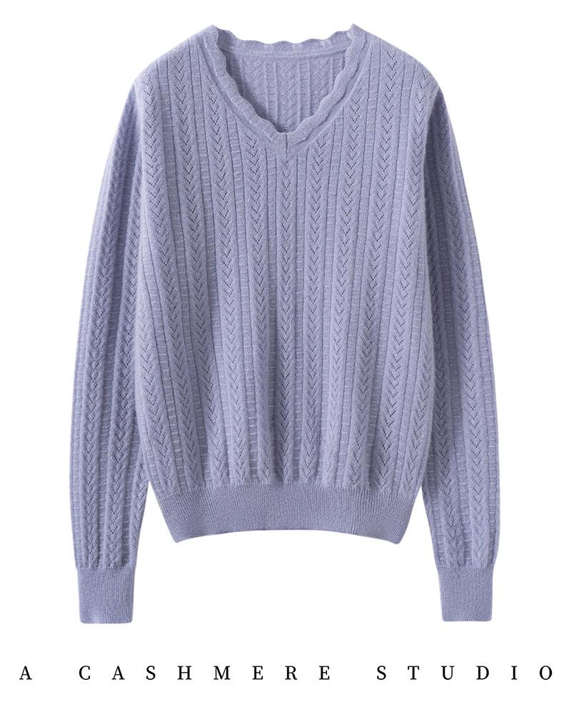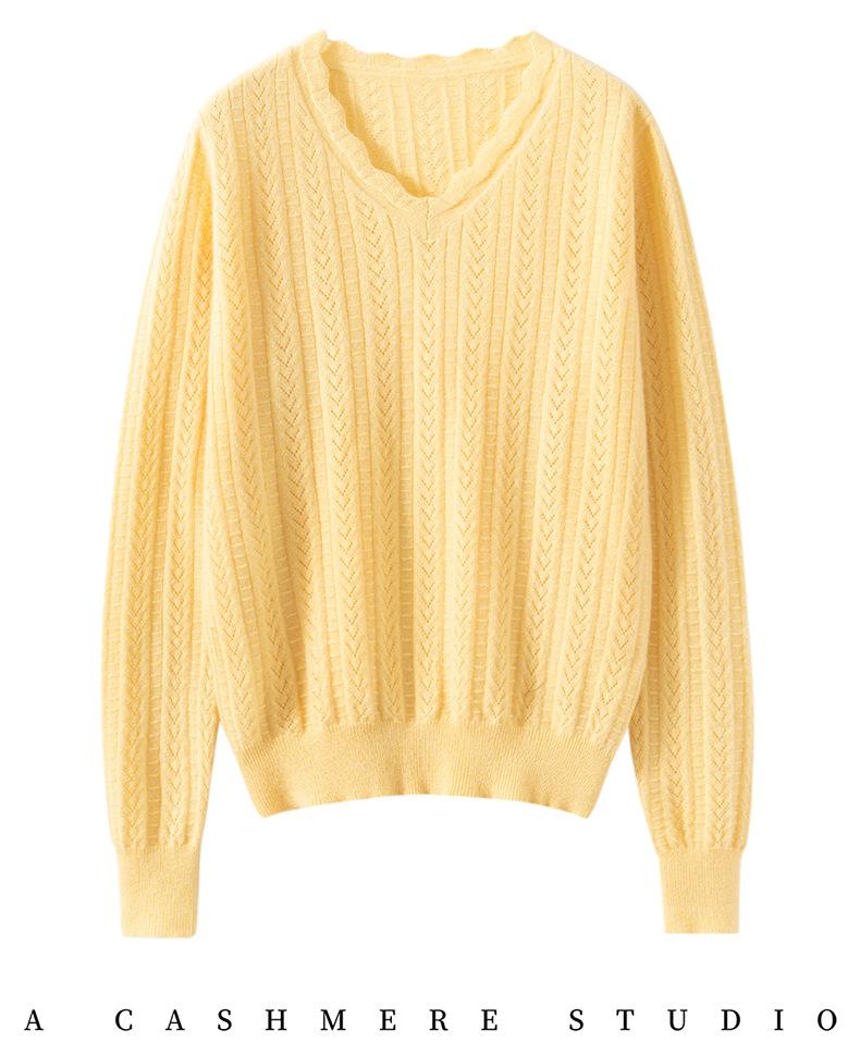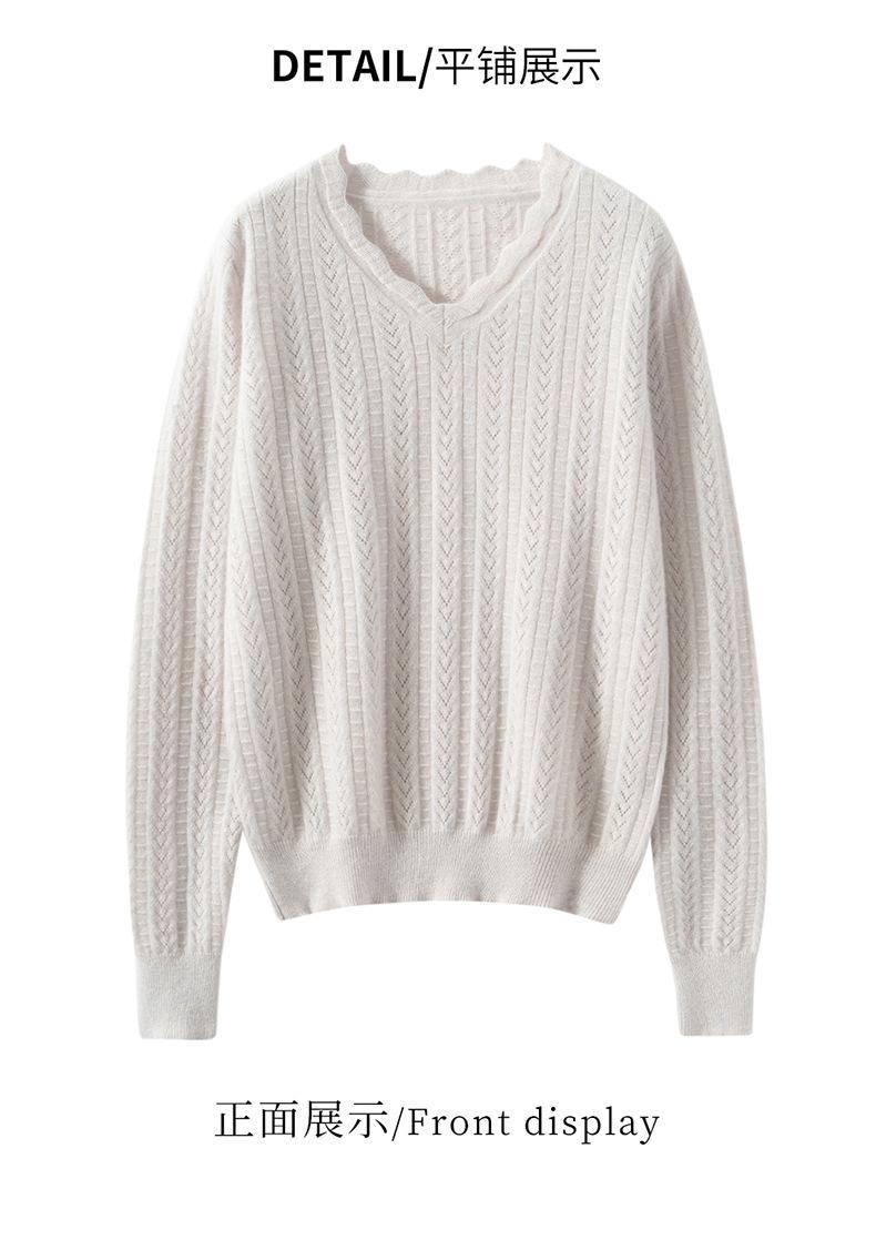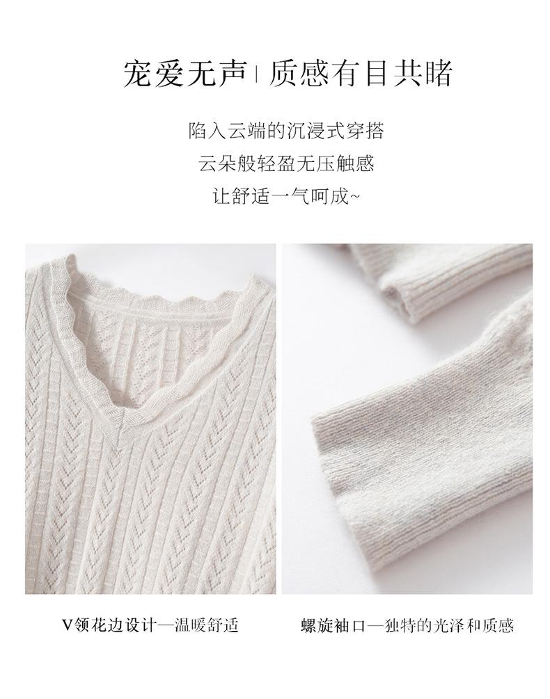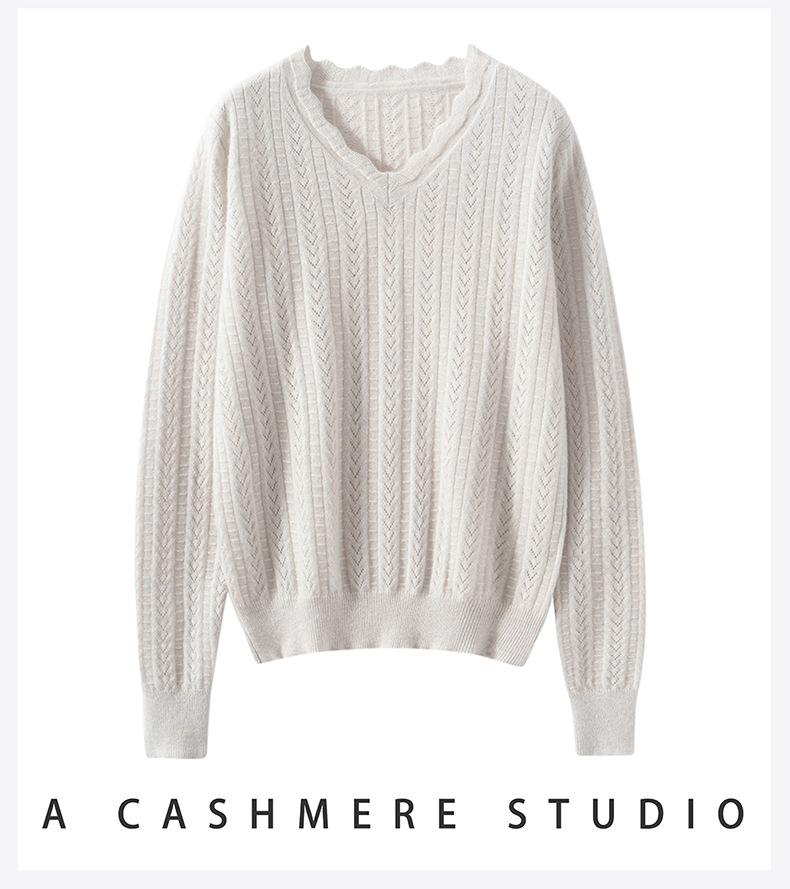 Suéter de cachemira para mujer 100% cachemira pura otoño e invierno nuevo suave ceroso casual versátil ola cuello en V jersey de punto