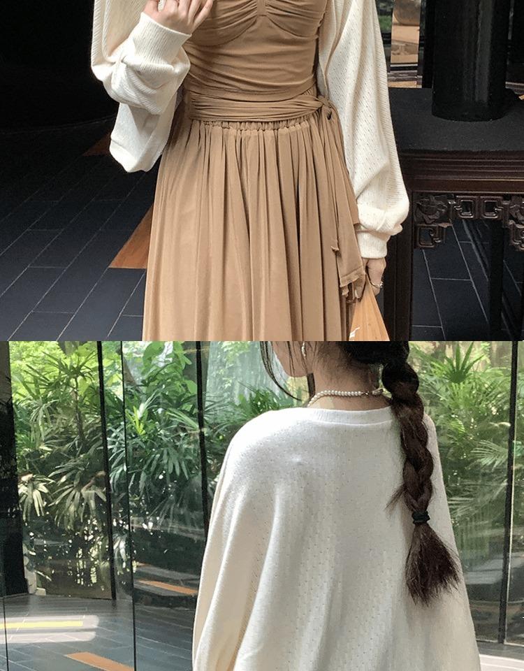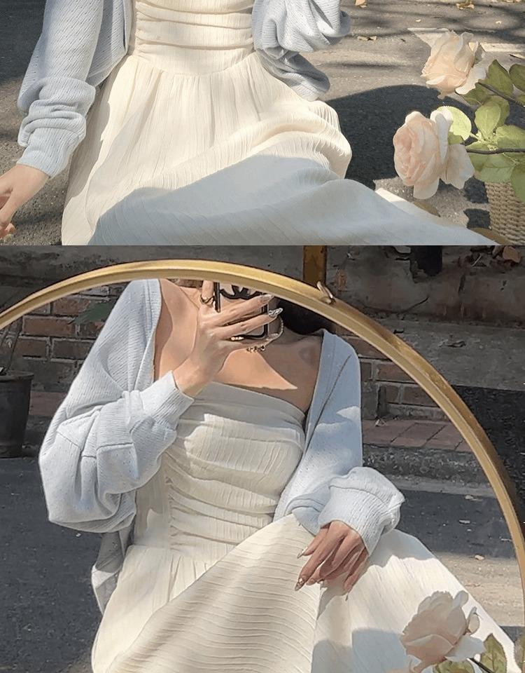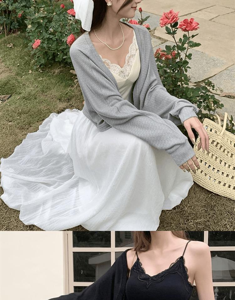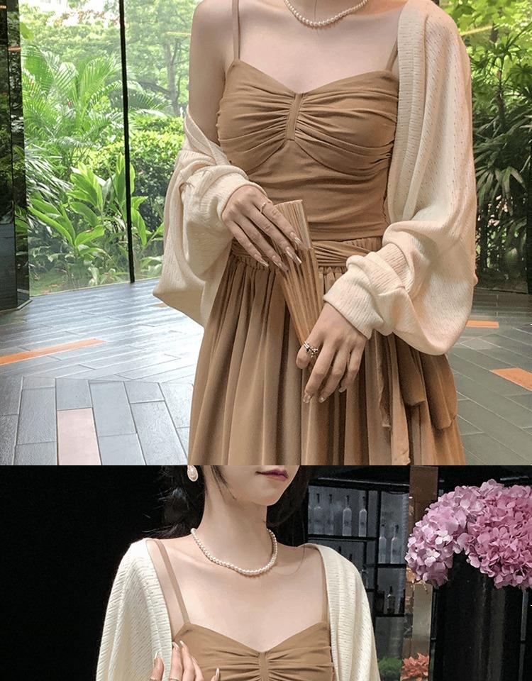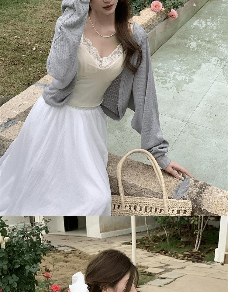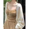 Estilo Perezoso Chal de Seda de Hielo Falda con Tirantes con Cárdigan de Punto Chaqueta Protección Solar Chaleco Blusa de Verano para Mujer