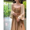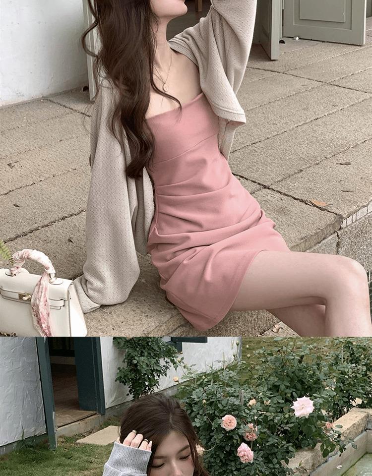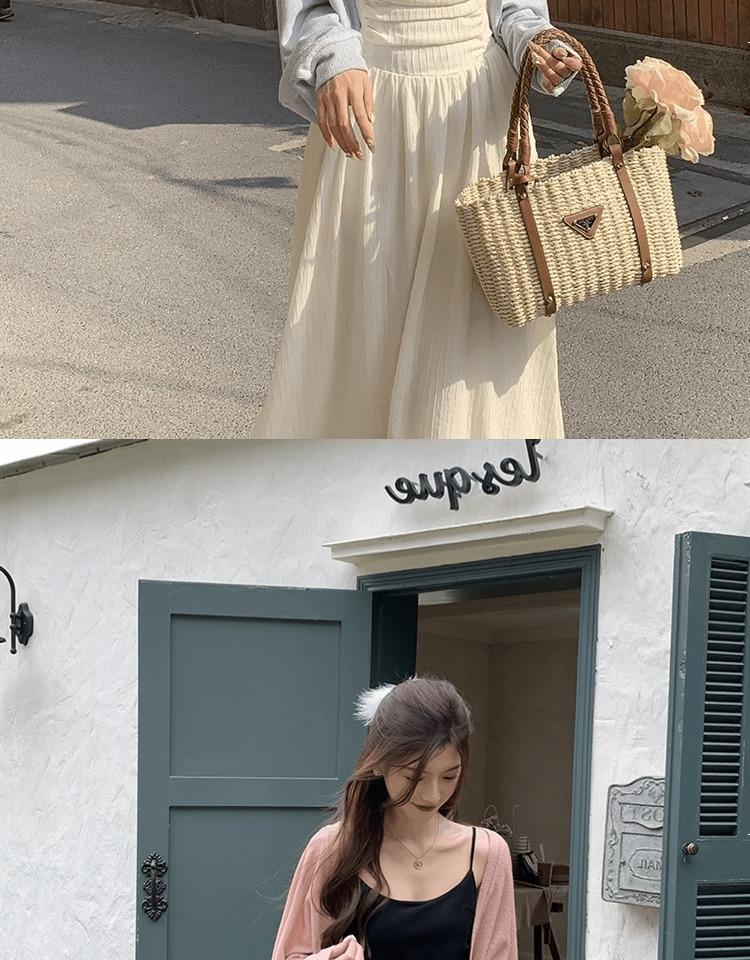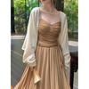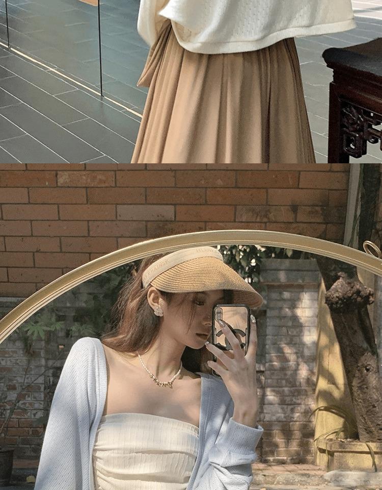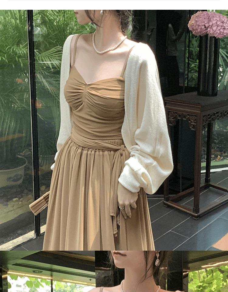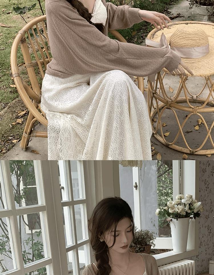 Estilo Perezoso Chal de Seda de Hielo Falda con Tirantes con Cárdigan de Punto Chaqueta Protección Solar Chaleco Blusa de Verano para Mujer