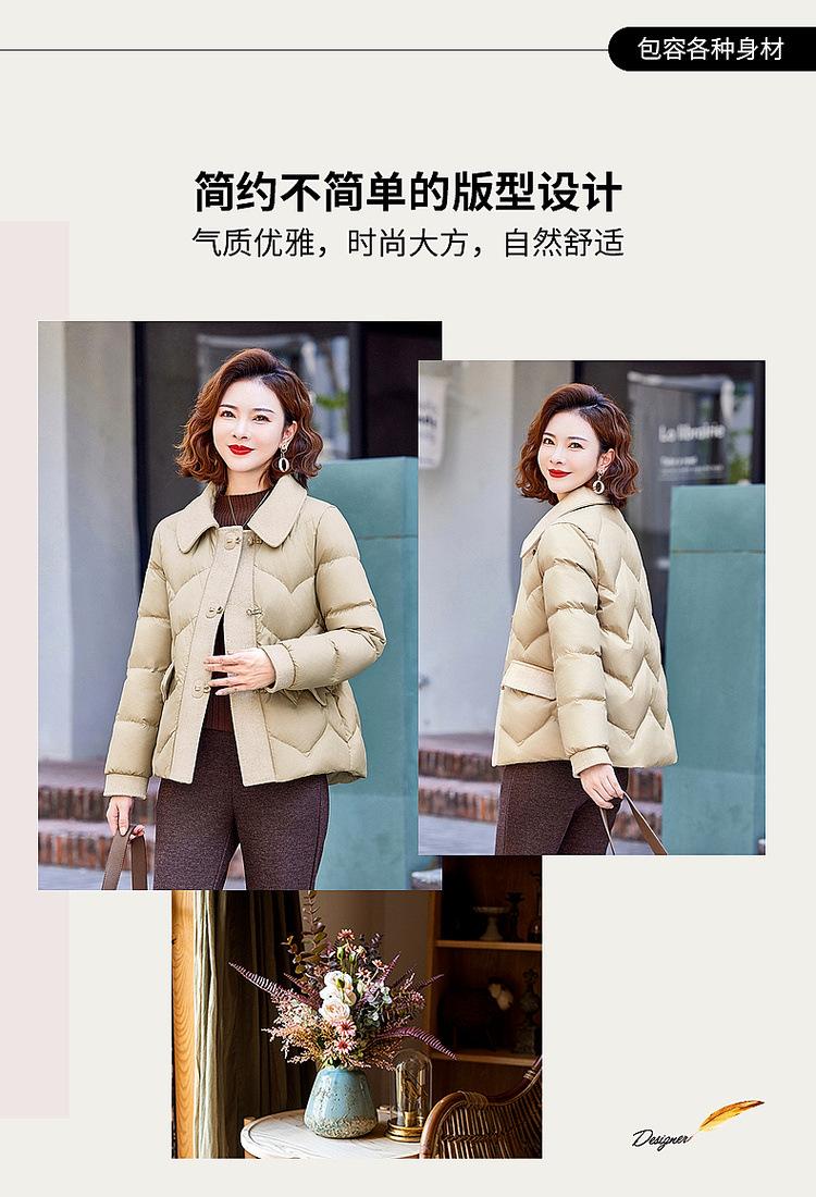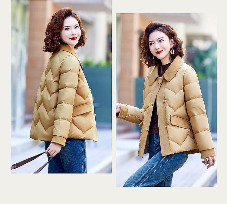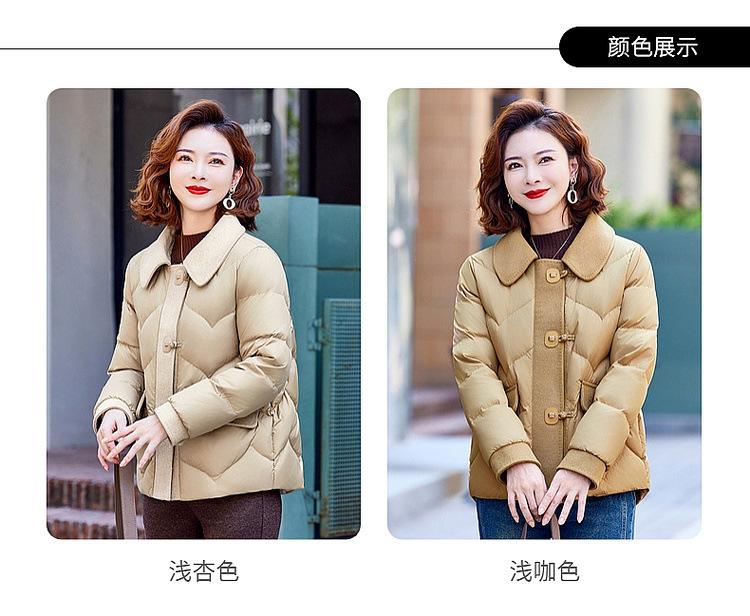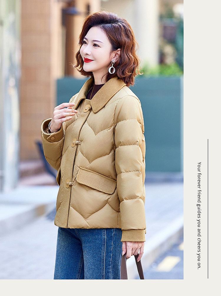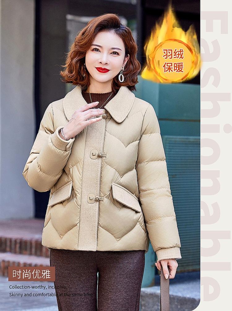 Chaqueta Corta de Plumón de Invierno para Mujer de Mediana Edad Plumón de Pato Blanco Top 2025 Nuevo Temperamento Solapa Abrigo Cálido