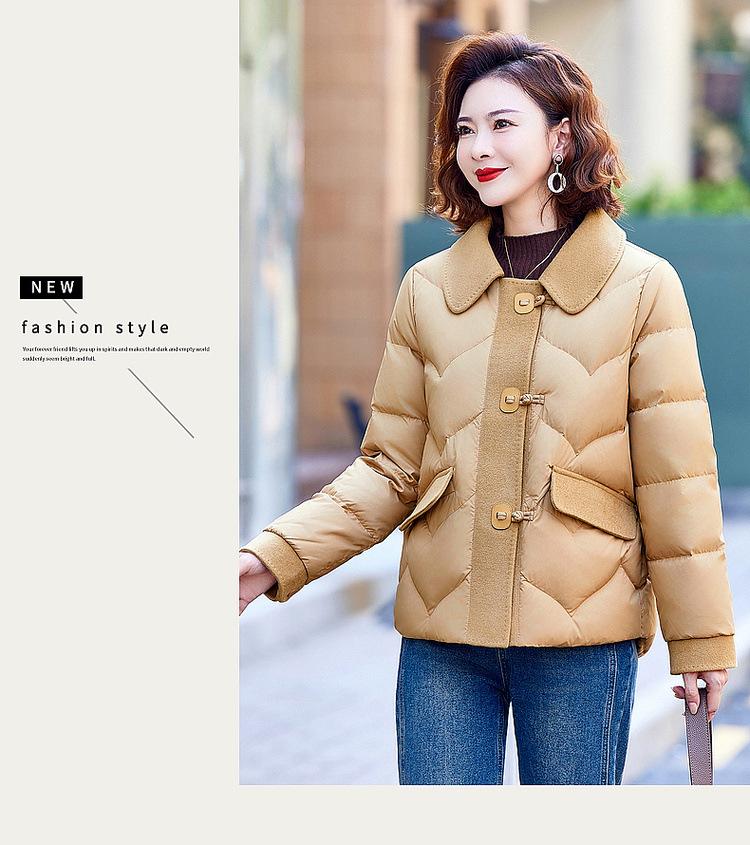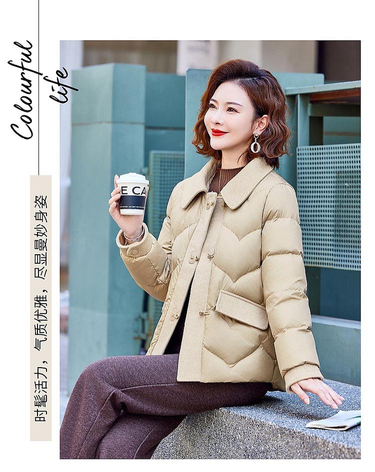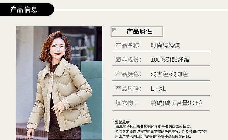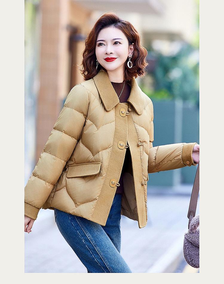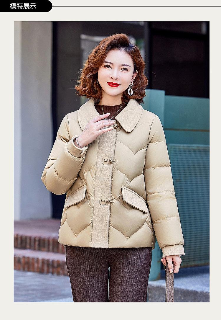 Chaqueta Corta de Plumón de Invierno para Mujer de Mediana Edad Plumón de Pato Blanco Top 2025 Nuevo Temperamento Solapa Abrigo Cálido