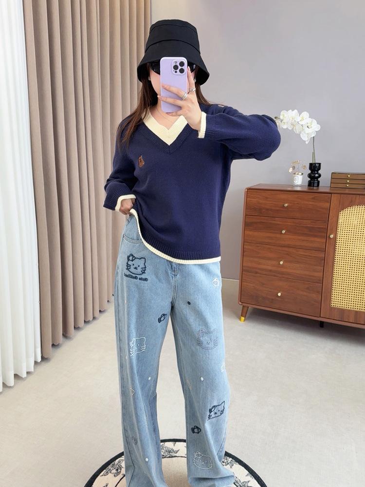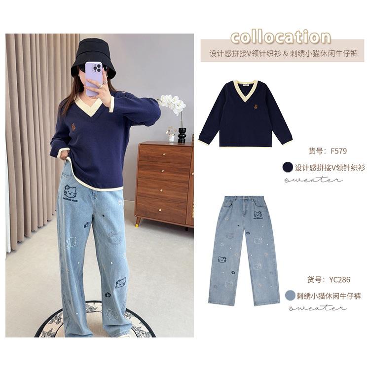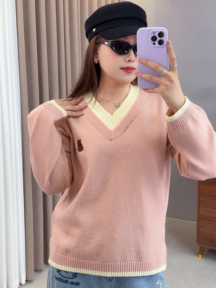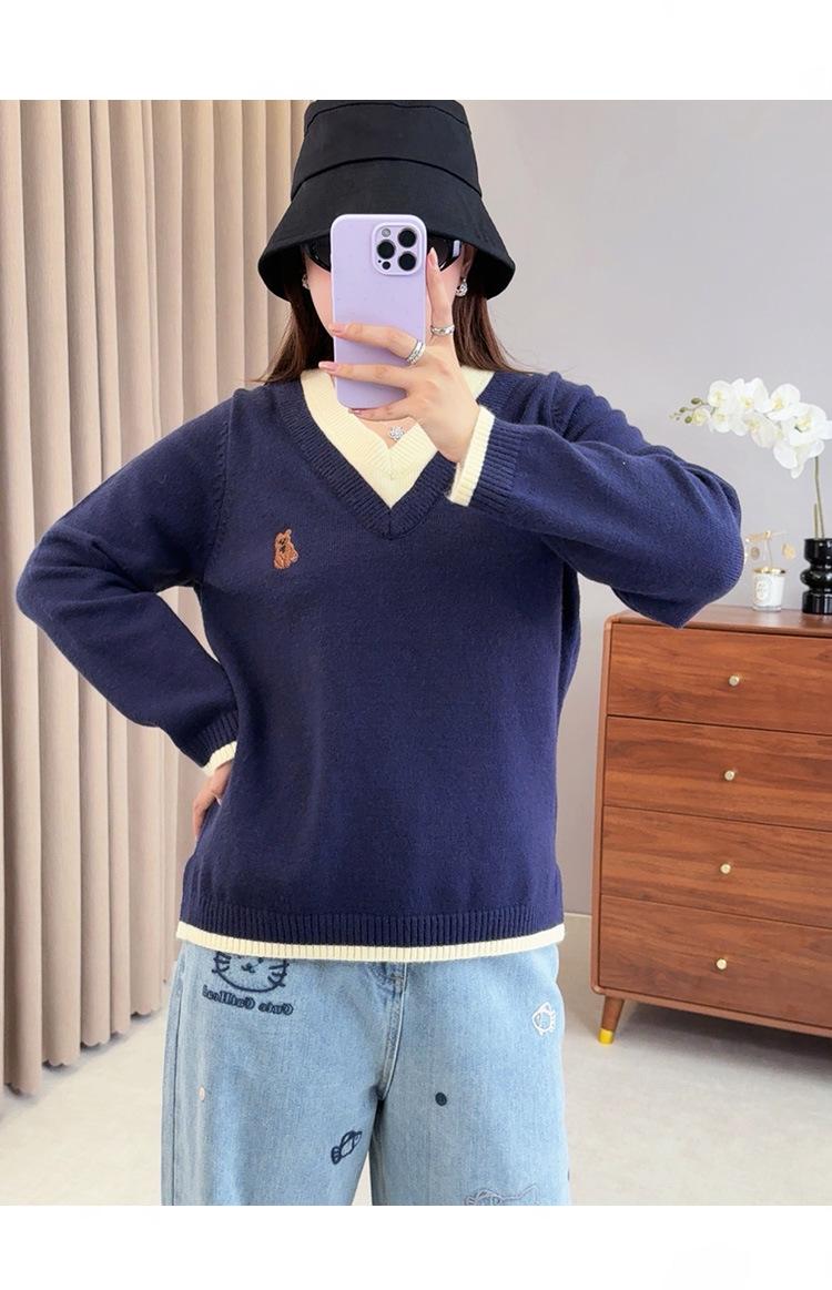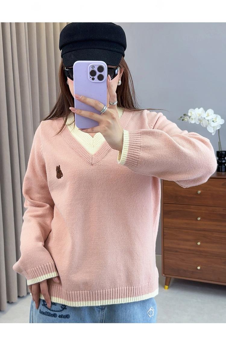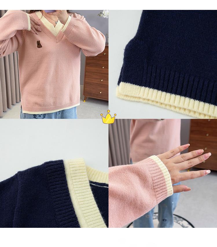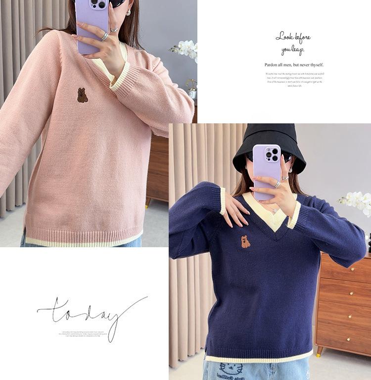 Tejido de punto con cuello en V pequeño con diseño de dos piezas