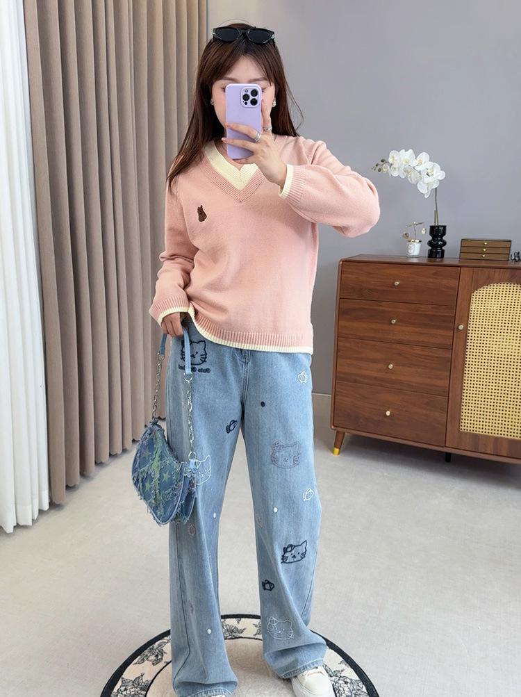 Se añadió un adorno con estampado de oso de dibujos animados a un lado del pecho.
