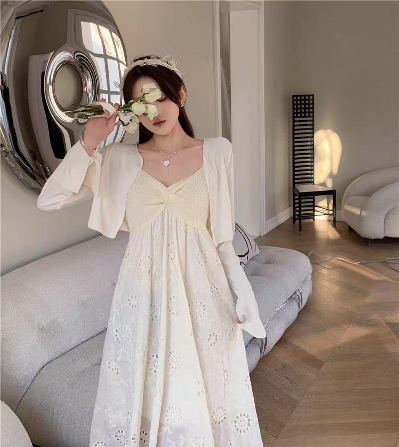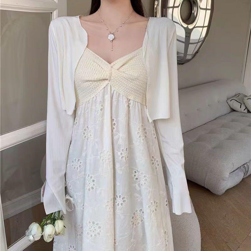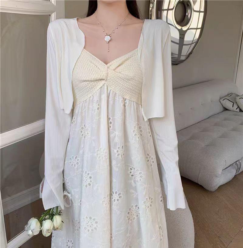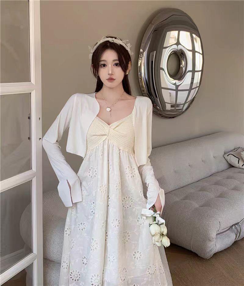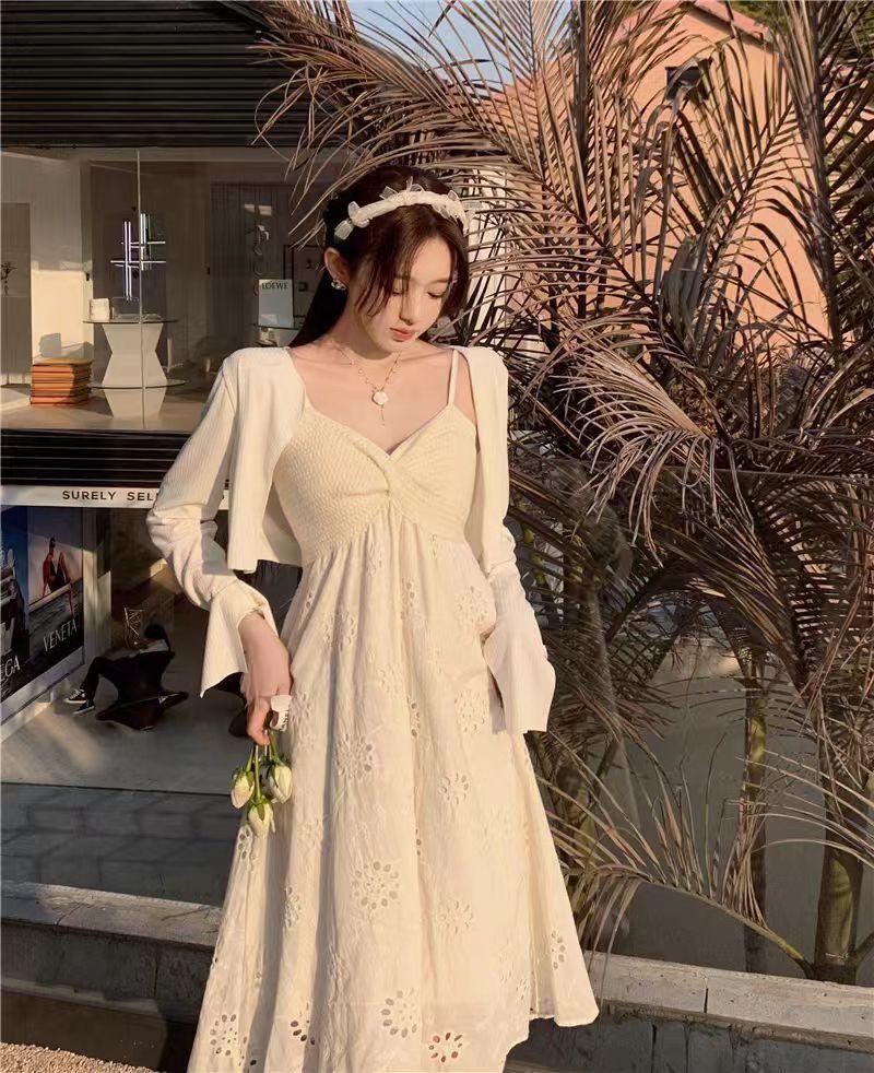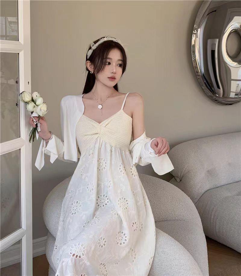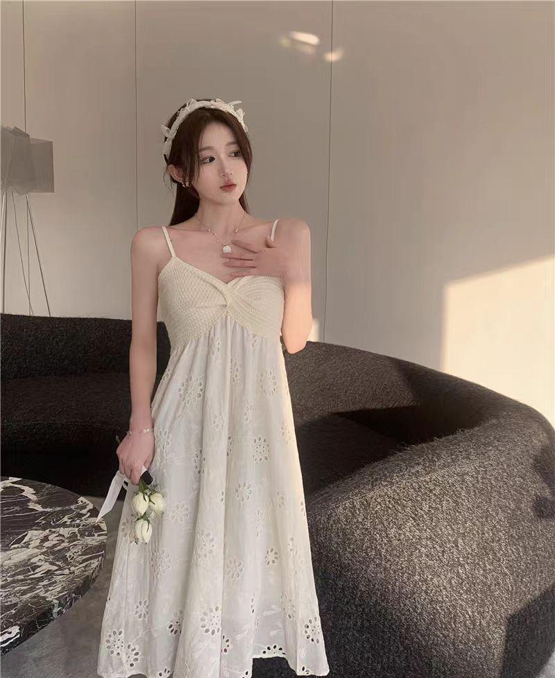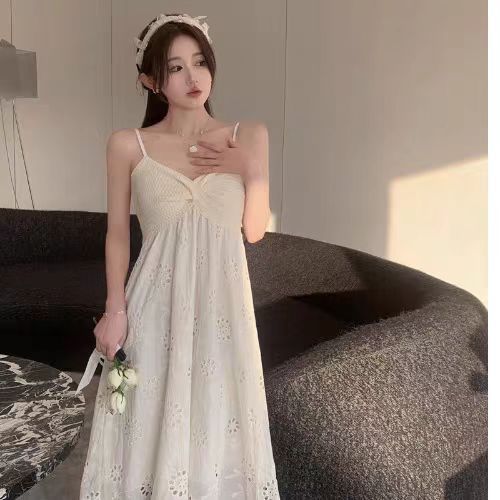 Vestido Verano 2025 Nuevo Bordado Calado Tirantes Francés Delgado Estilo Suave Temperamento Adelgazante Hada