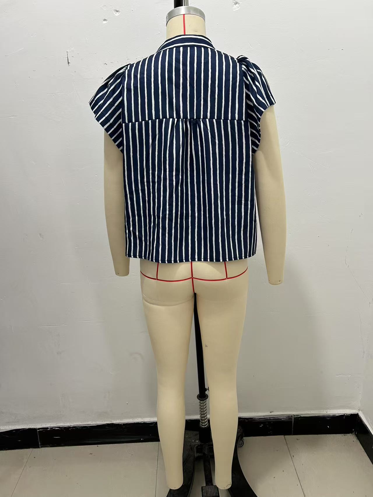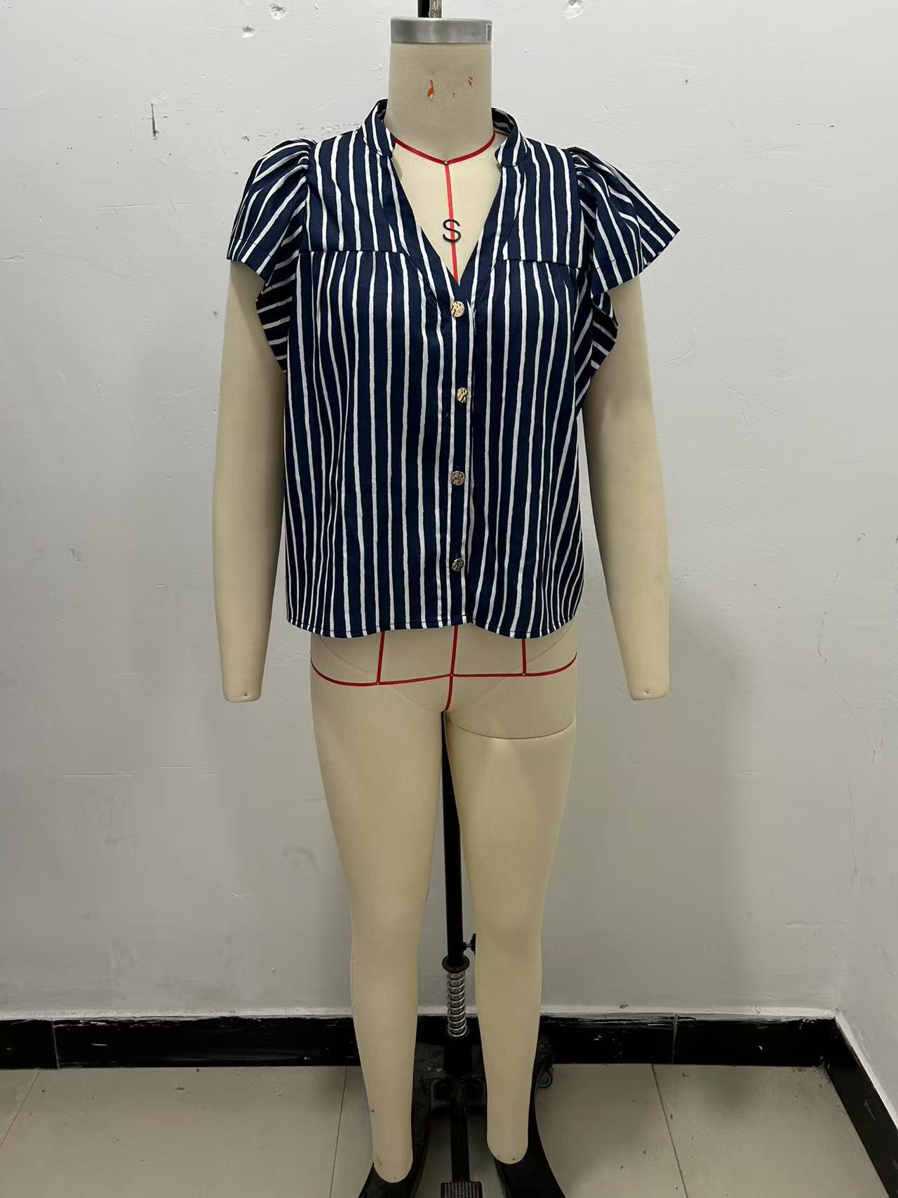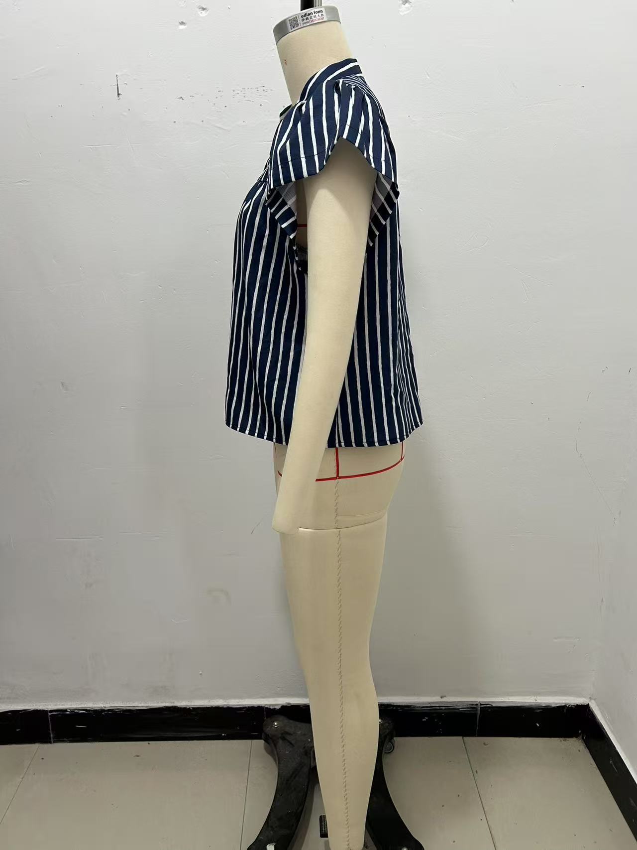 Ropa de mujer transfronteriza al por mayor estilo europeo y americano verano nuevo conjunto de camisa de rayas mixtas + shorts casuales de rayas