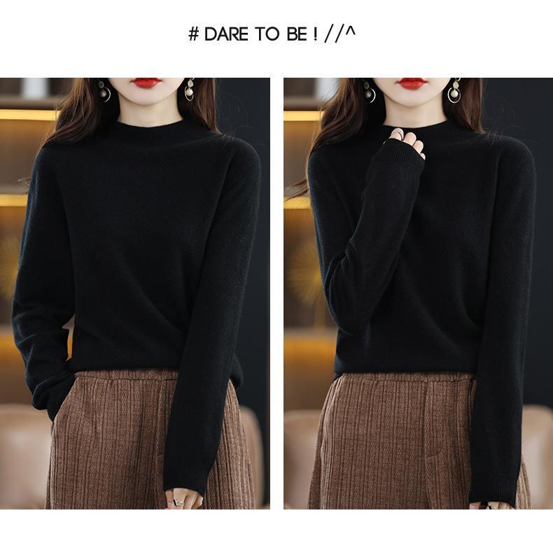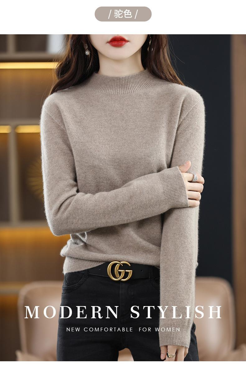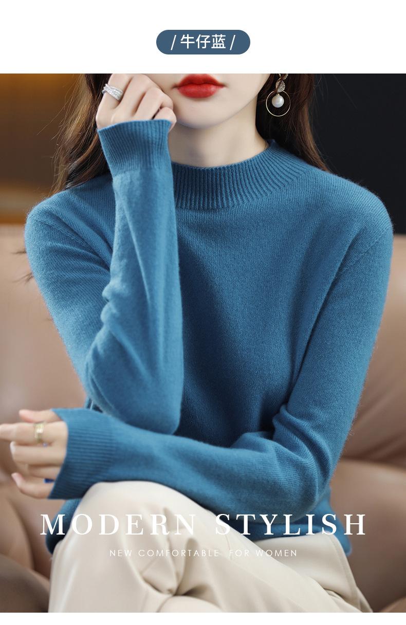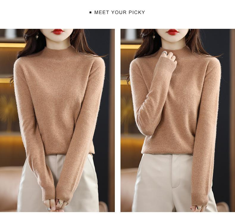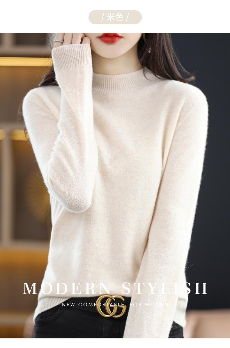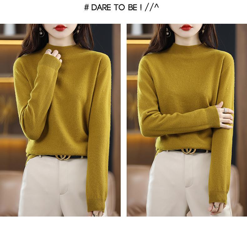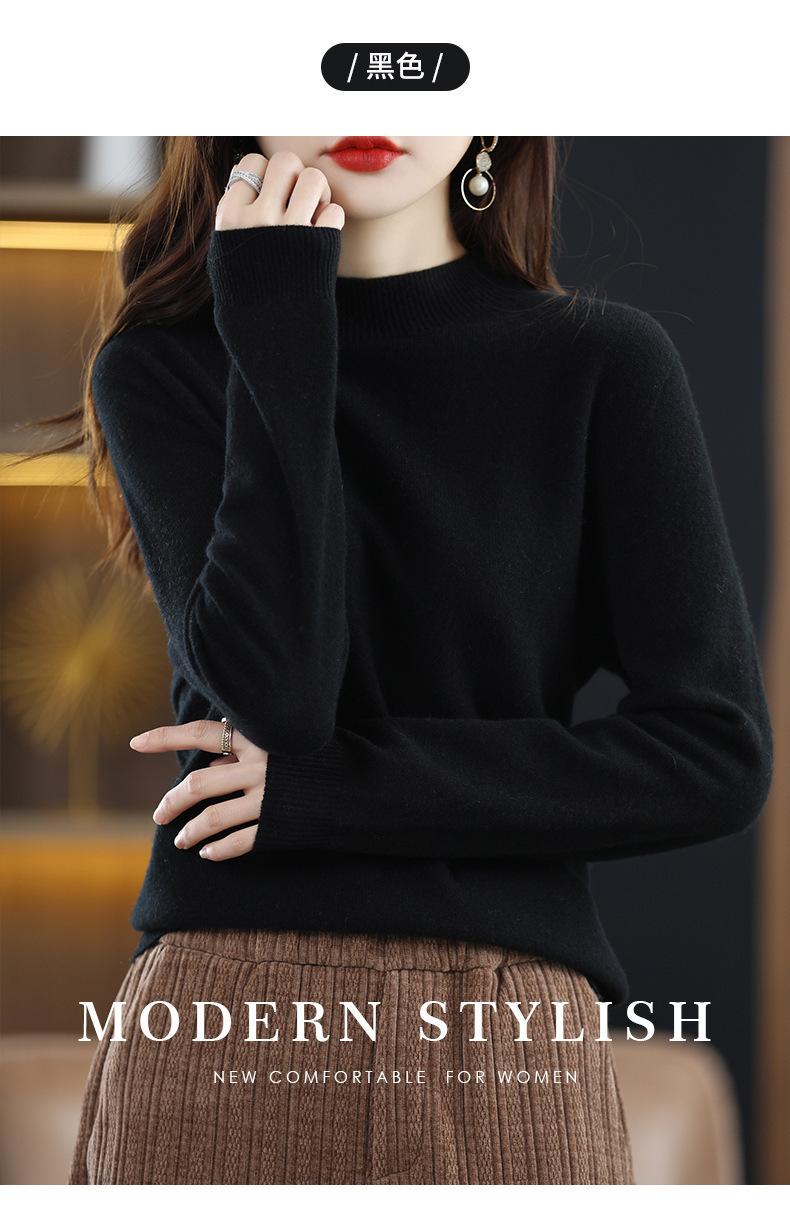 Nuevo Suéter de Punto para Mujer Otoño/Invierno Estilo Coreano Cuello Semi-Alto Capa Base Interior Jersey de Color Sólido Suéter para Mujer Venta al por Mayor Transfronteriza