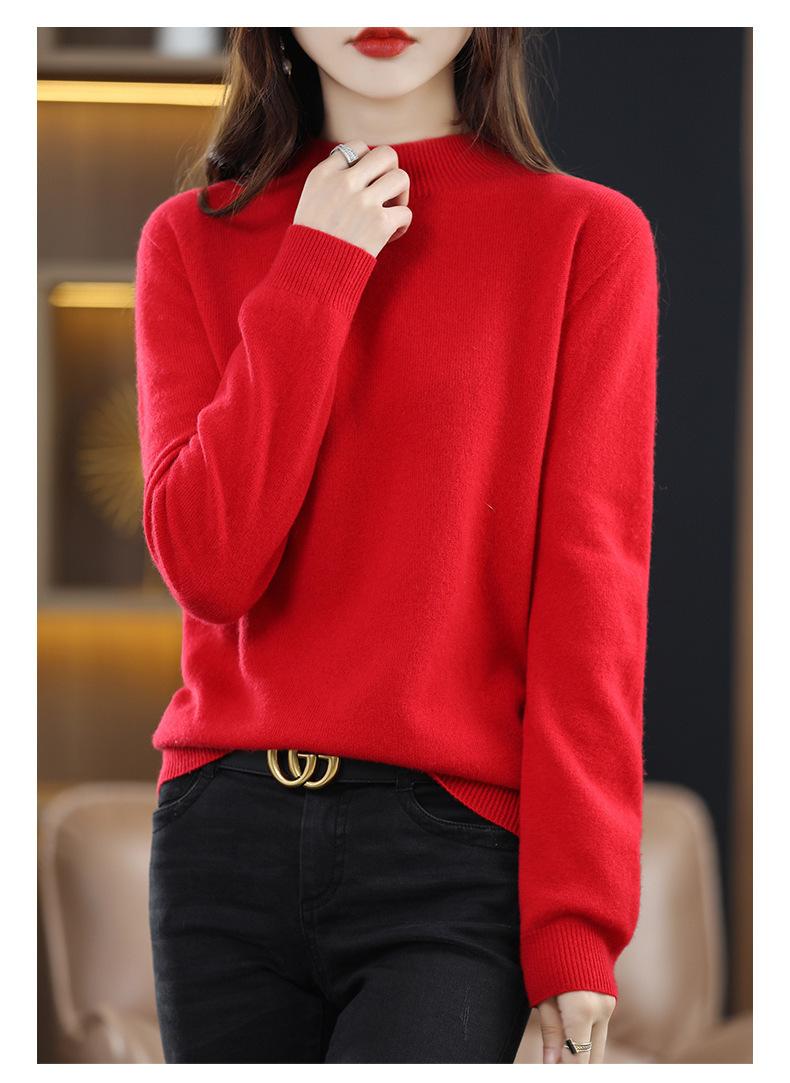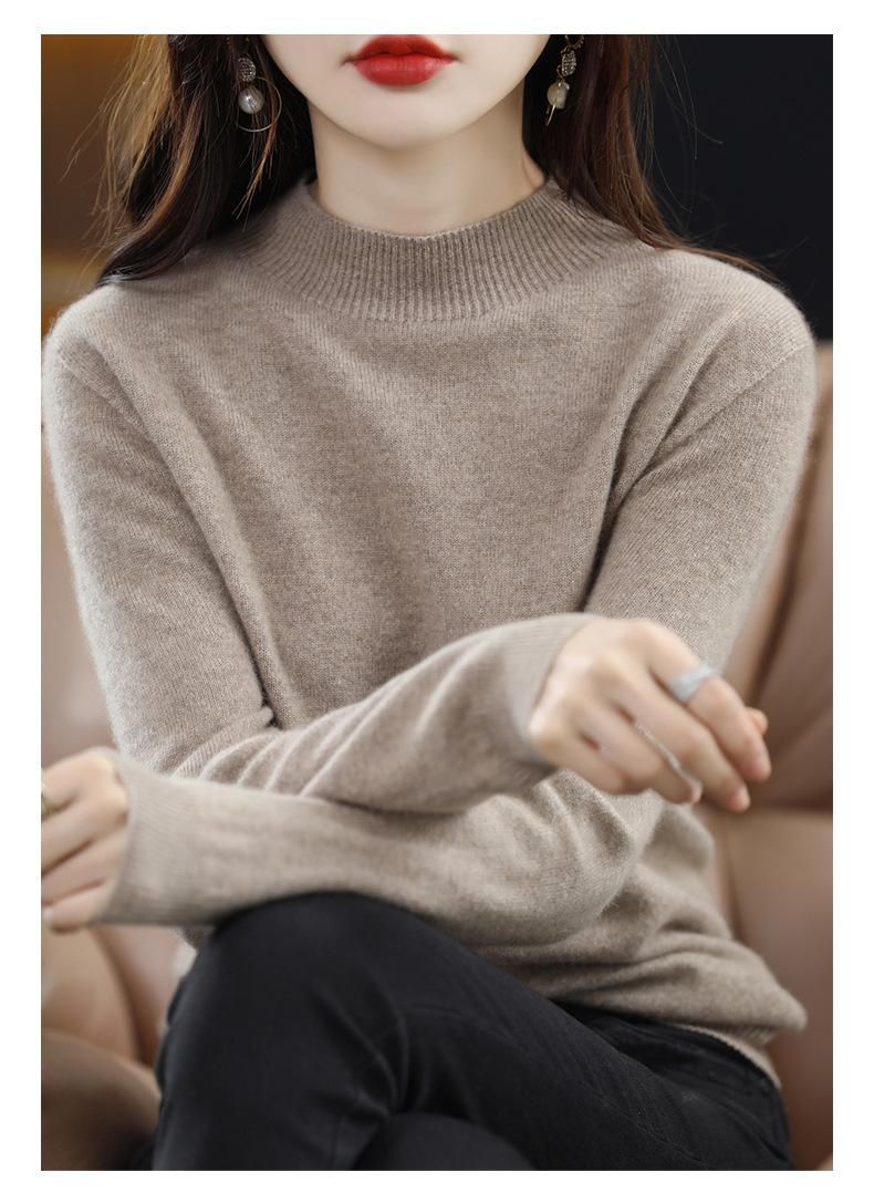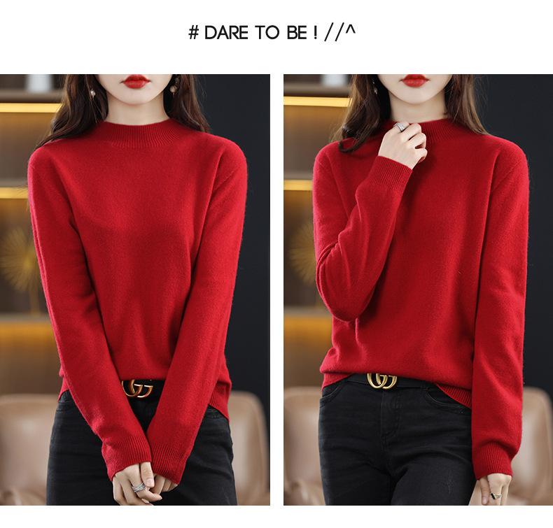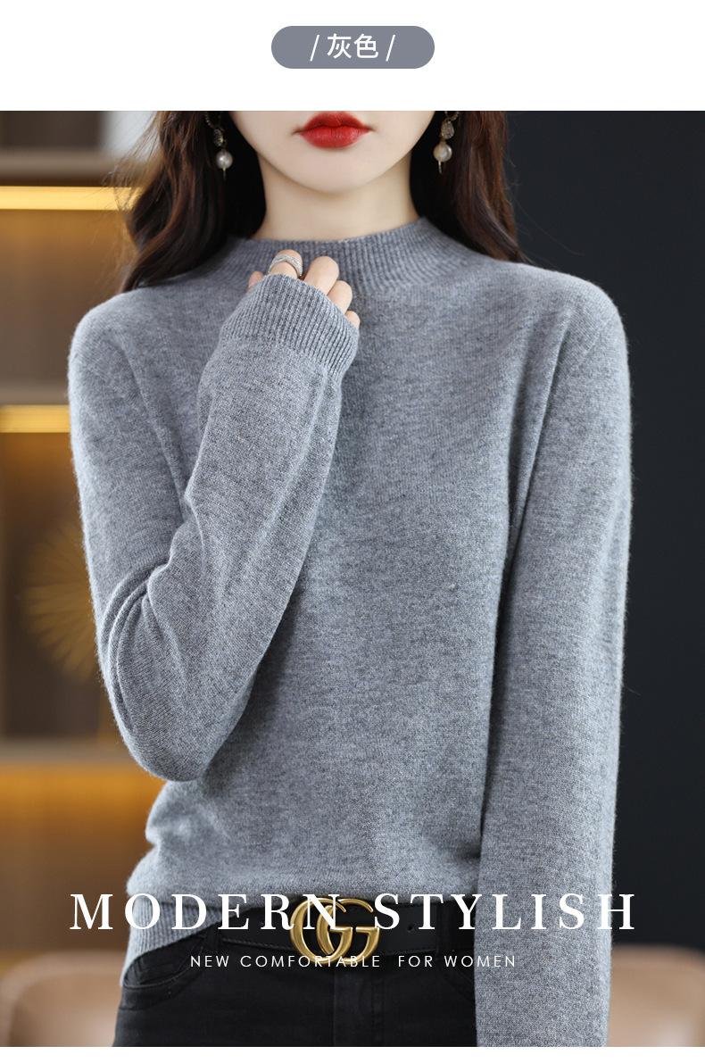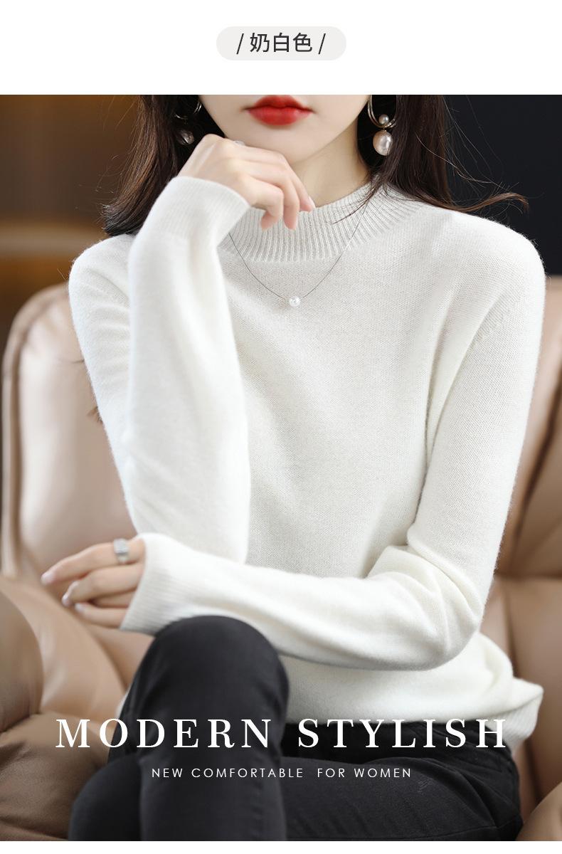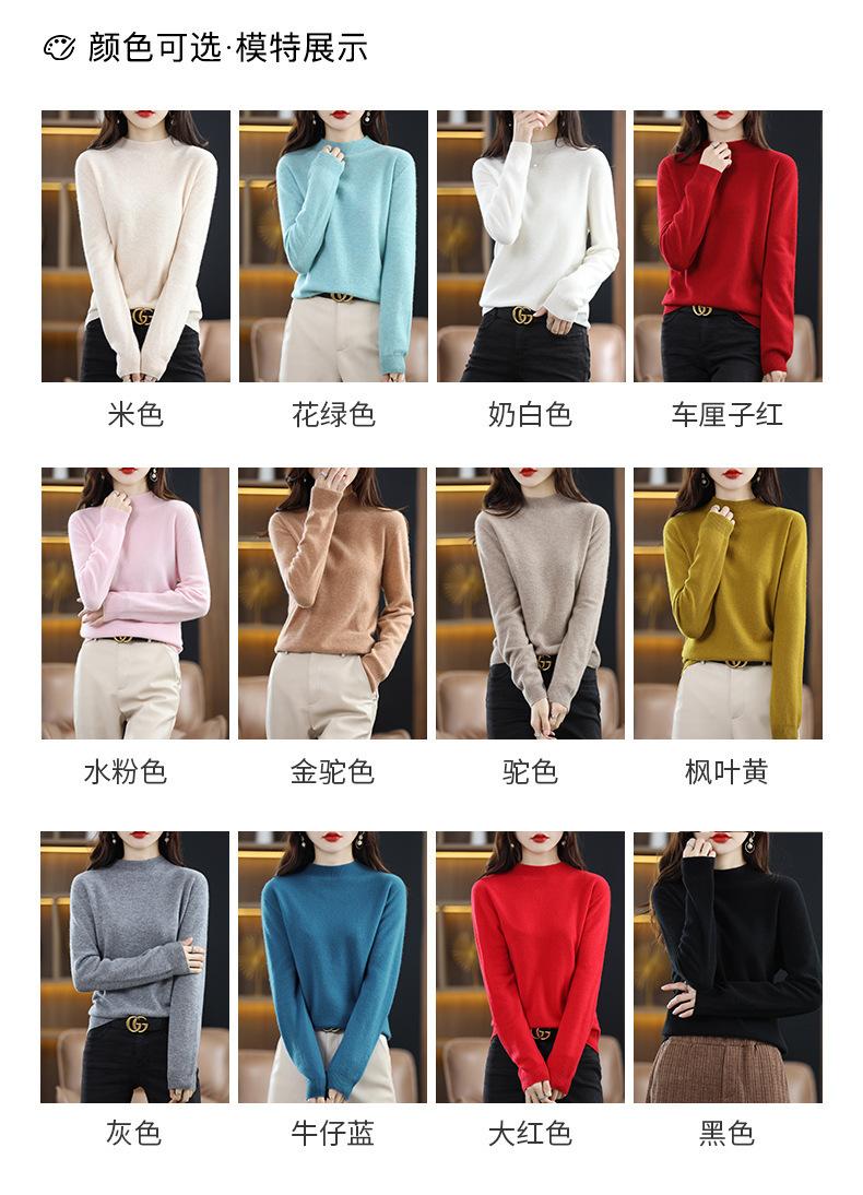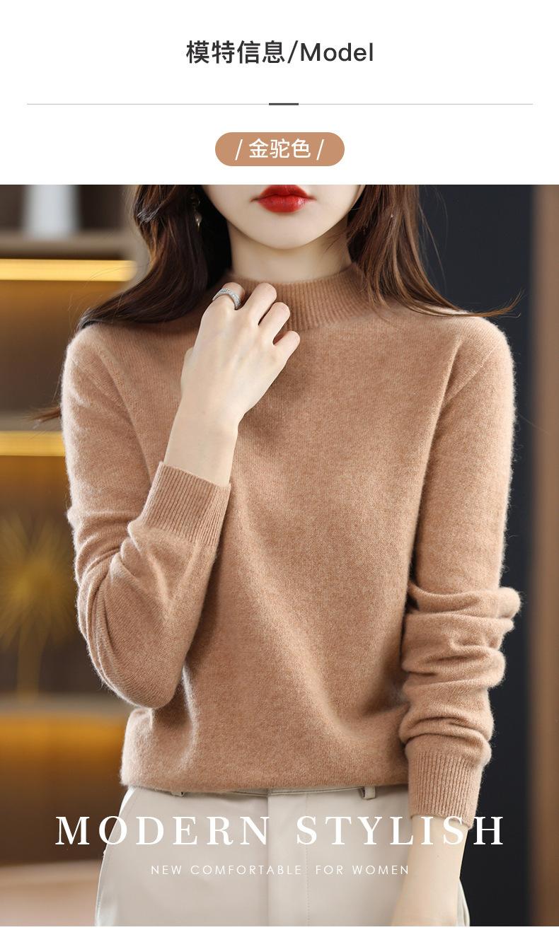 Nuevo Suéter de Punto para Mujer Otoño/Invierno Estilo Coreano Cuello Semi-Alto Capa Base Interior Jersey de Color Sólido Suéter para Mujer Venta al por Mayor Transfronteriza