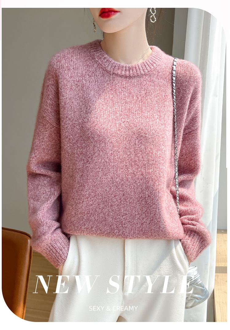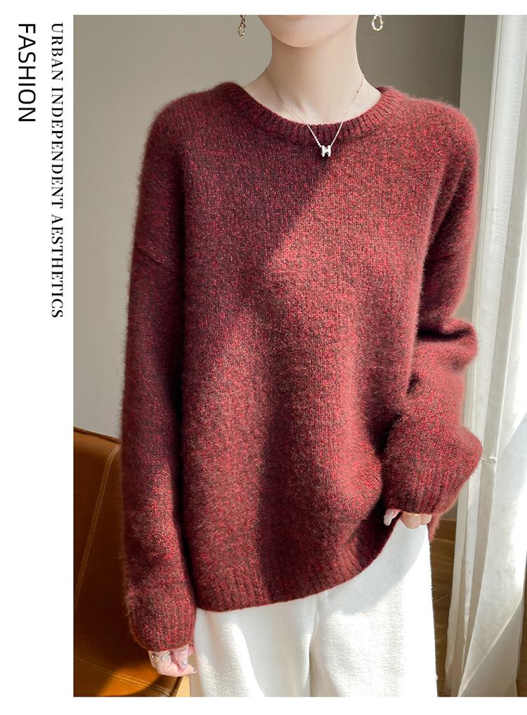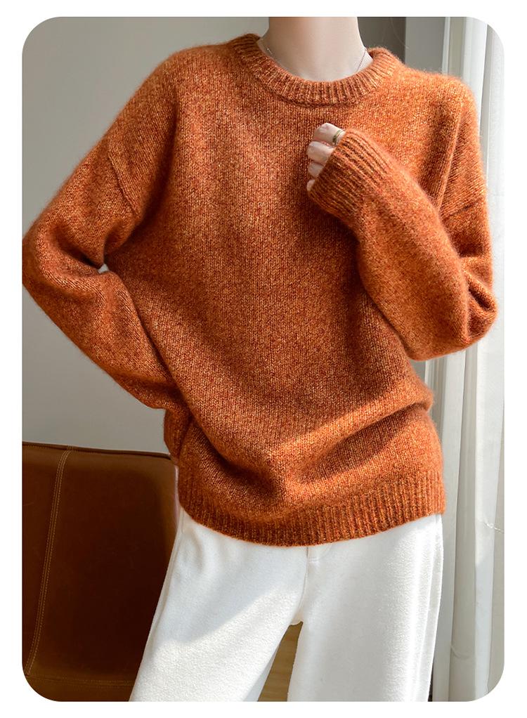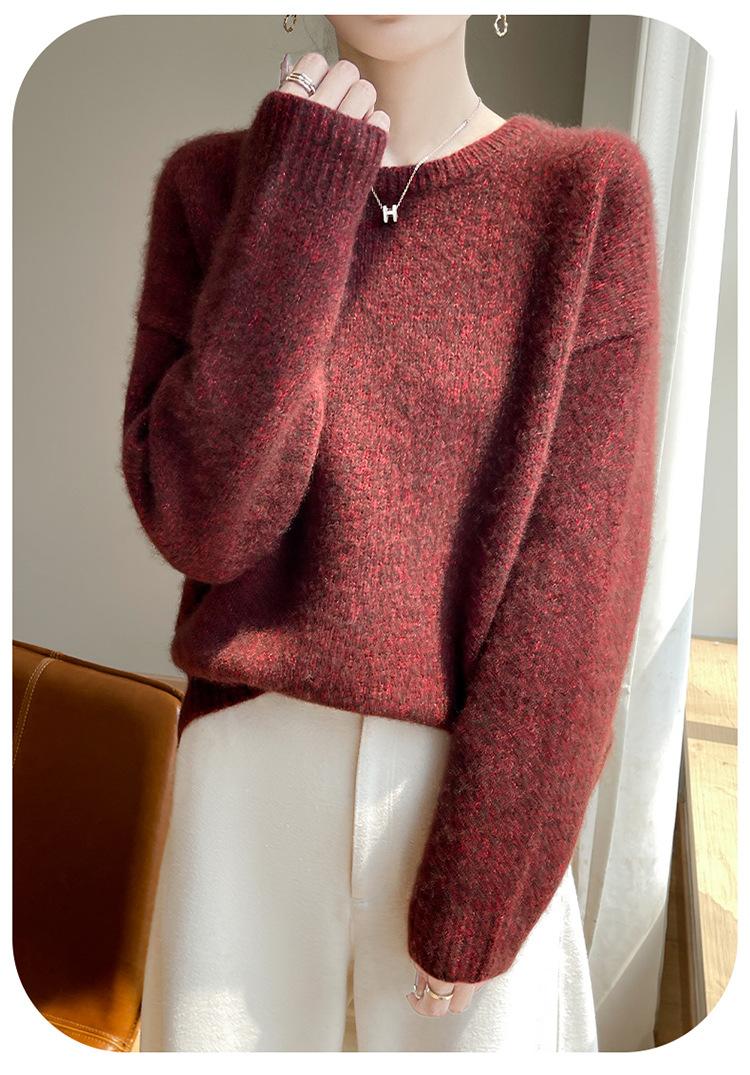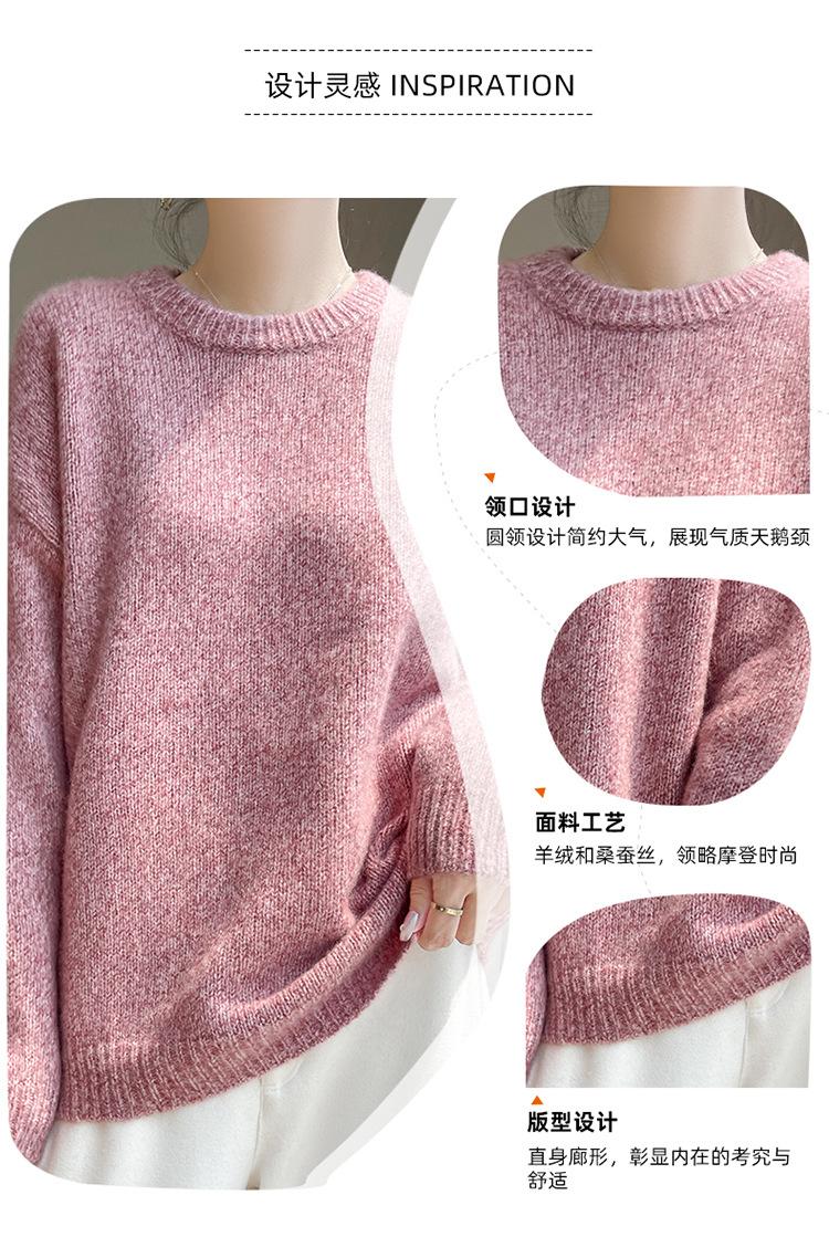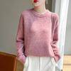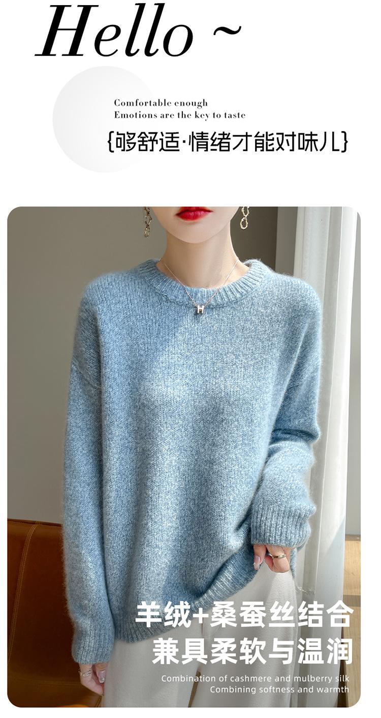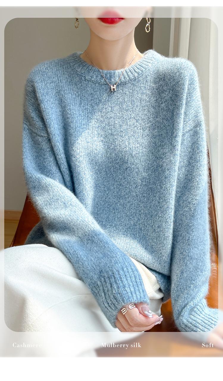 Suéter de Punto de Cuello Redondo de Hilo Fantasía de Seda Cachemira Nuevo Estilo Otoño/Invierno 2025 Manga Larga para Mujer Holgado Cálido Capa Base Top