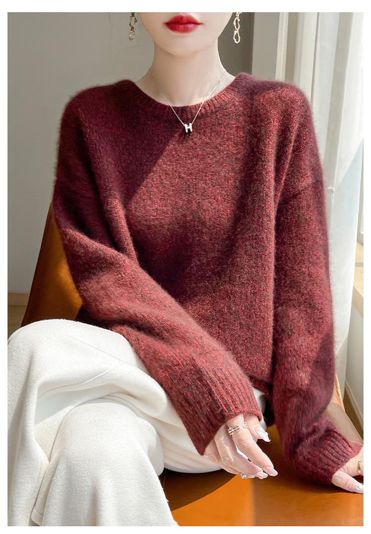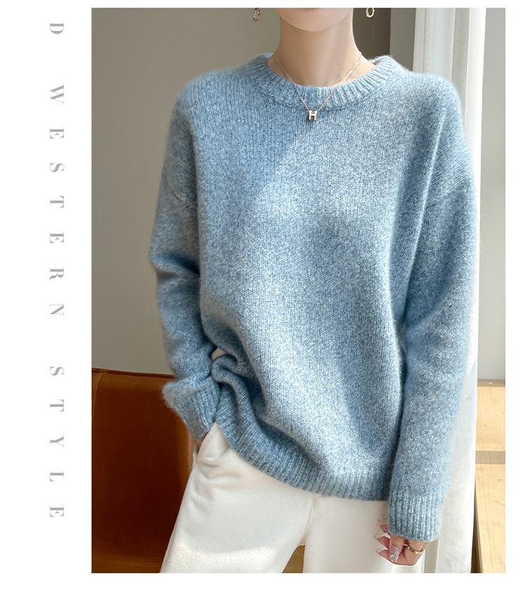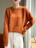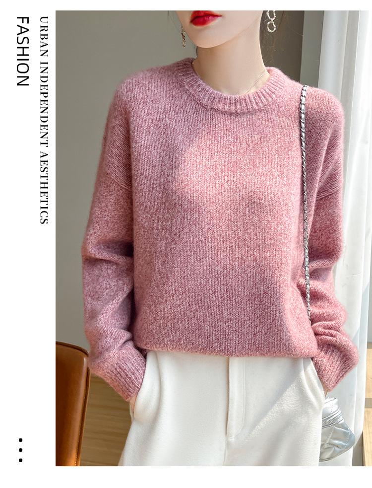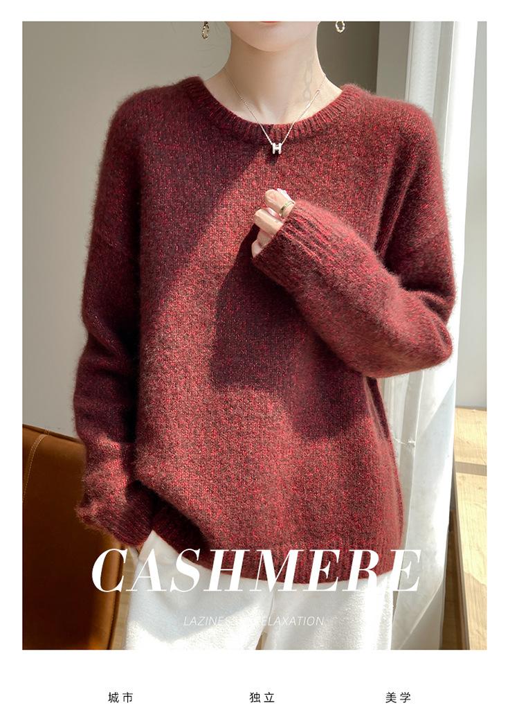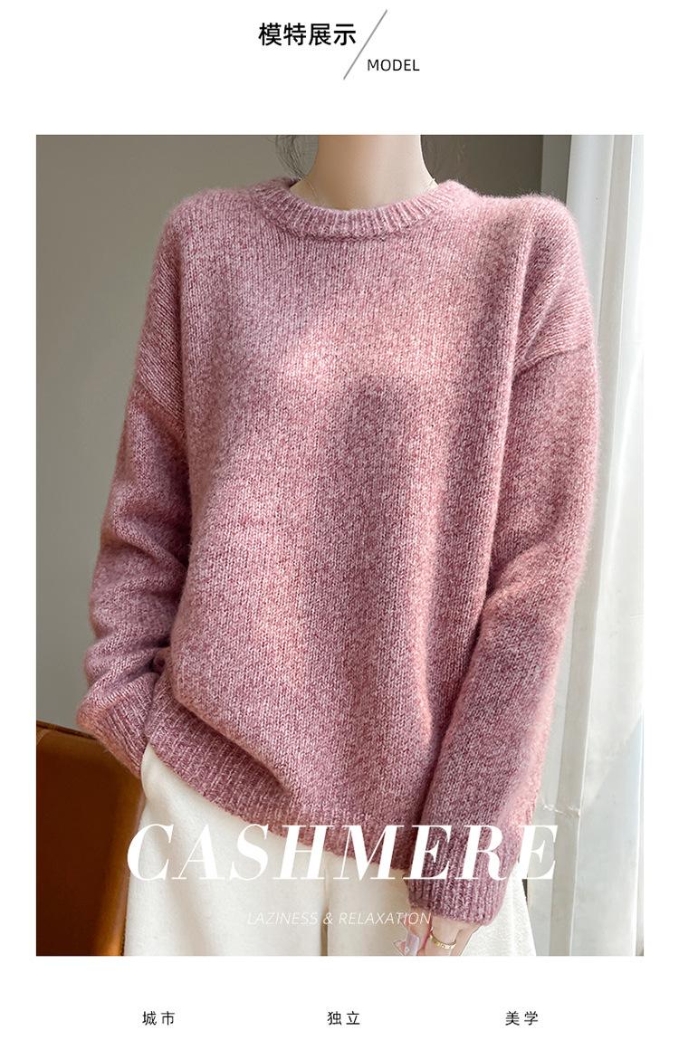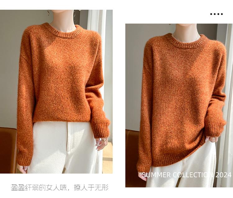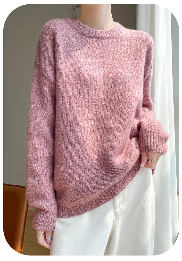Suéter de Punto de Cuello Redondo de Hilo Fantasía de Seda Cachemira Nuevo Estilo Otoño/Invierno 2025 Manga Larga para Mujer Holgado Cálido Capa Base Top