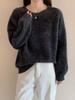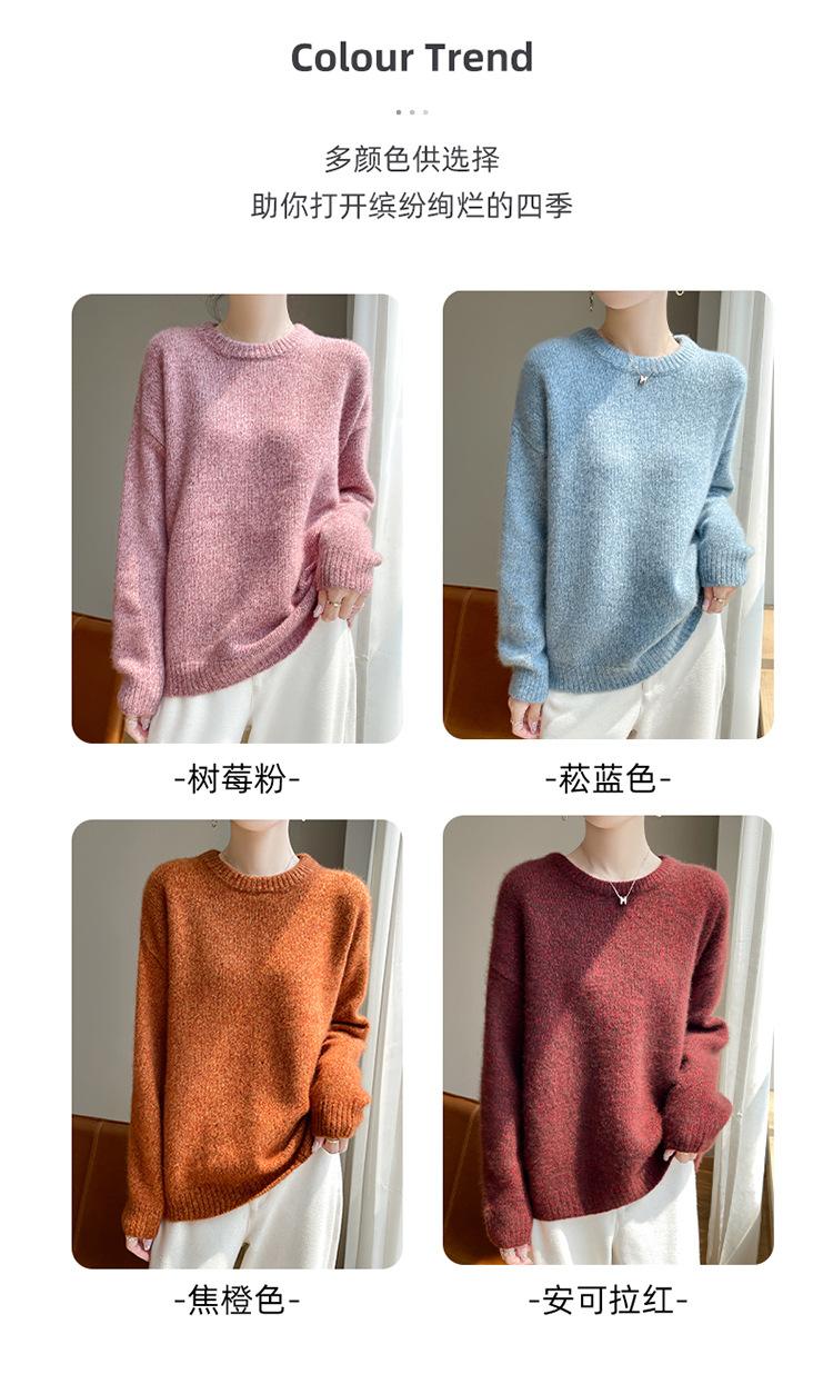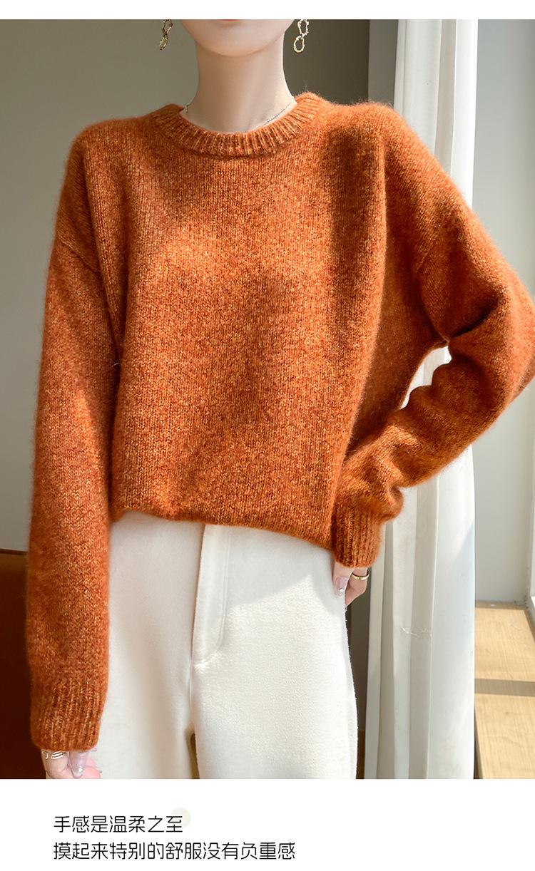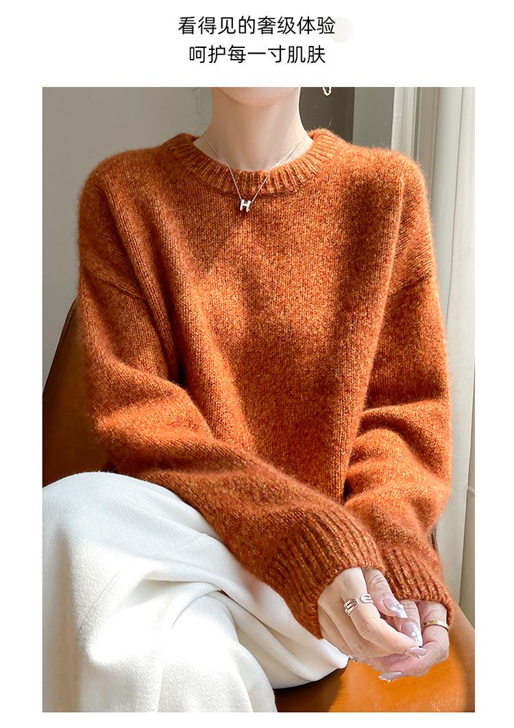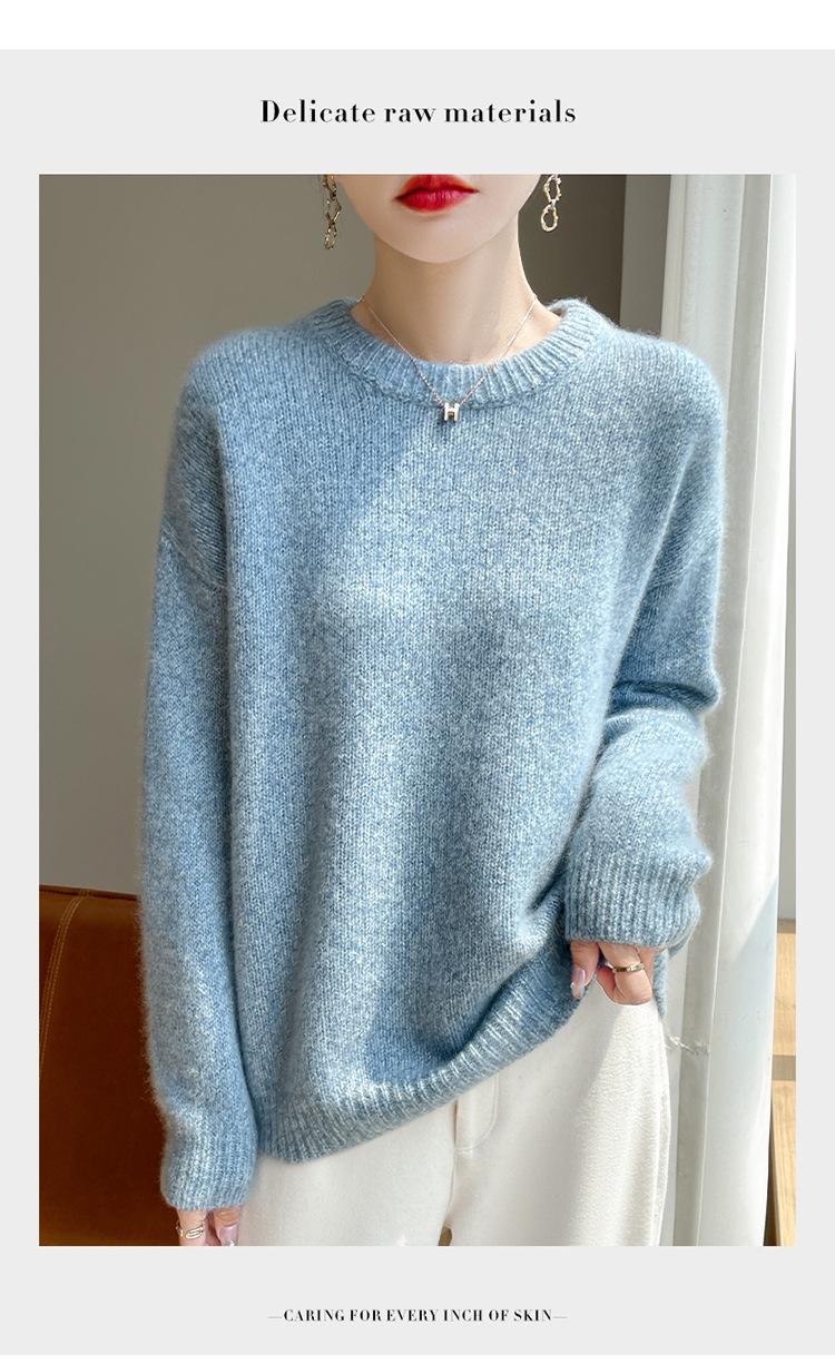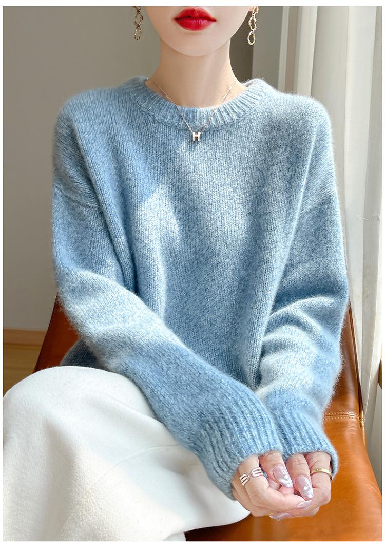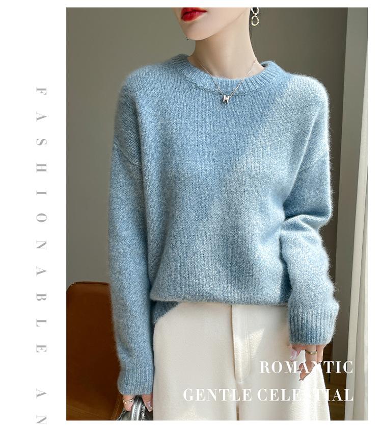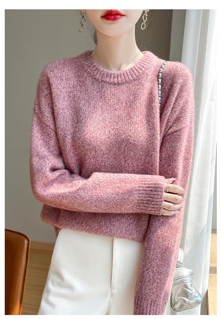 Suéter de Punto de Cuello Redondo de Hilo Fantasía de Seda Cachemira Nuevo Estilo Otoño/Invierno 2025 Manga Larga para Mujer Holgado Cálido Capa Base Top