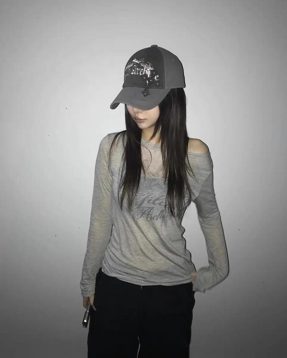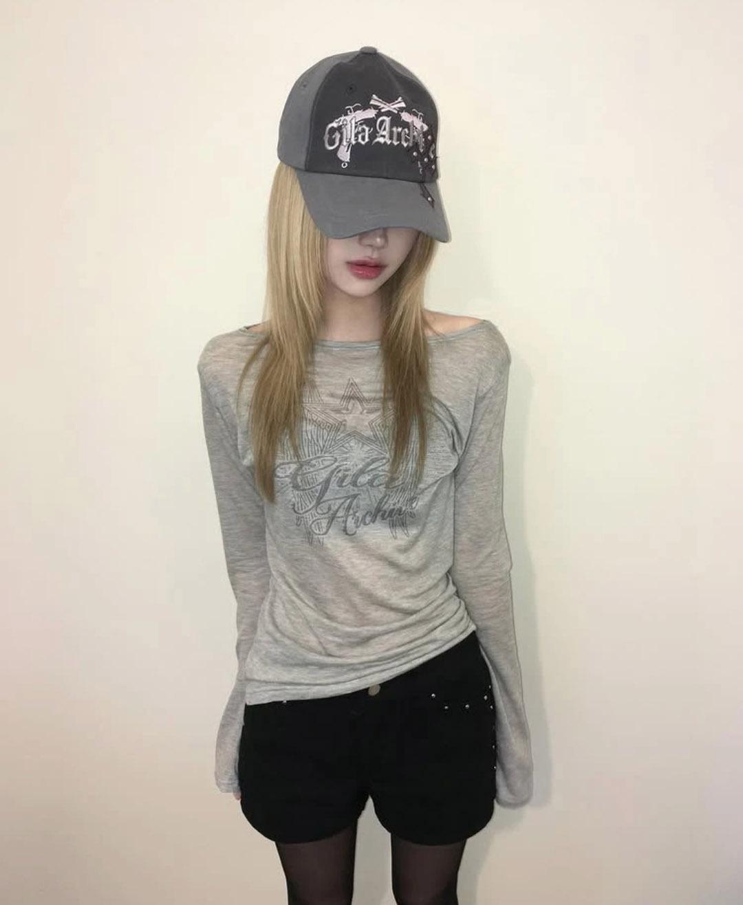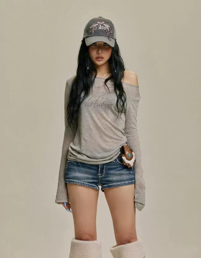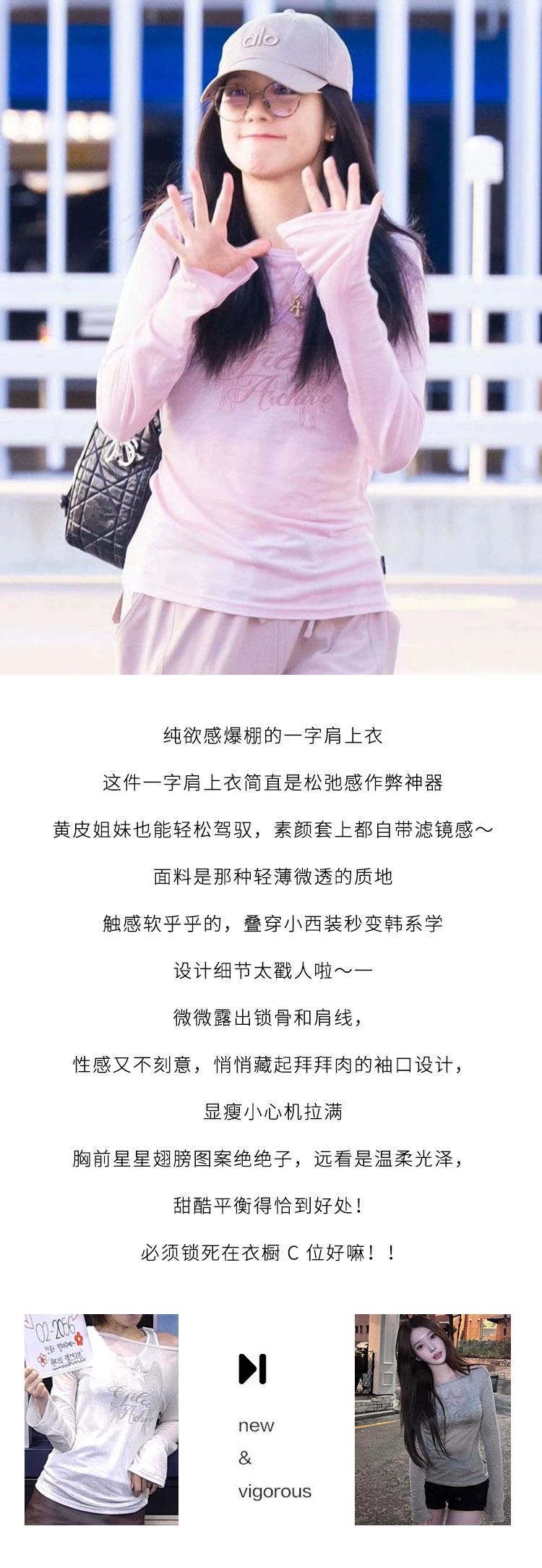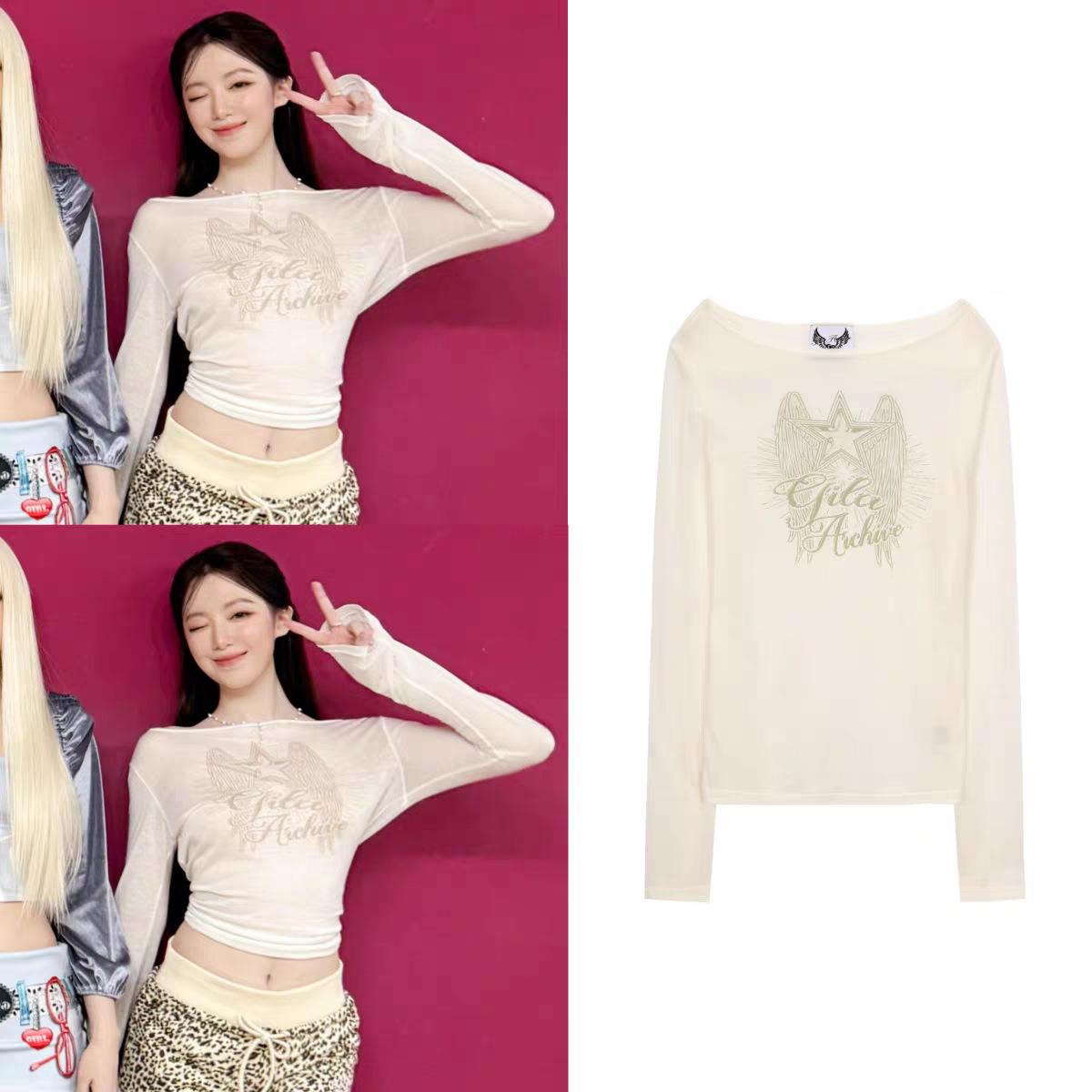 En stock 2025 Otoño nuevo coreano Dongdaemun [estilo Kim Ji-soo] top de un hombro con manga larga tipo estrella