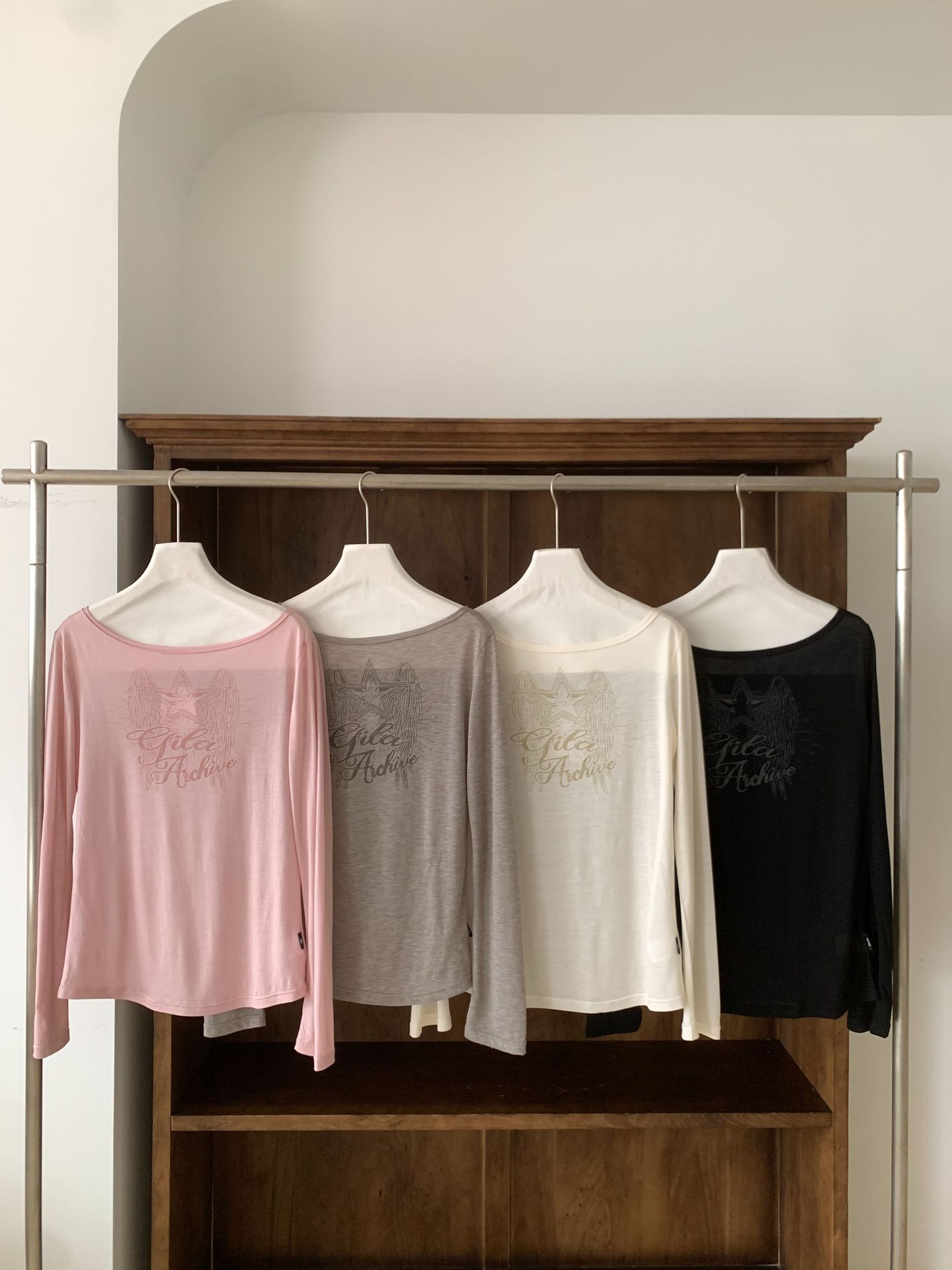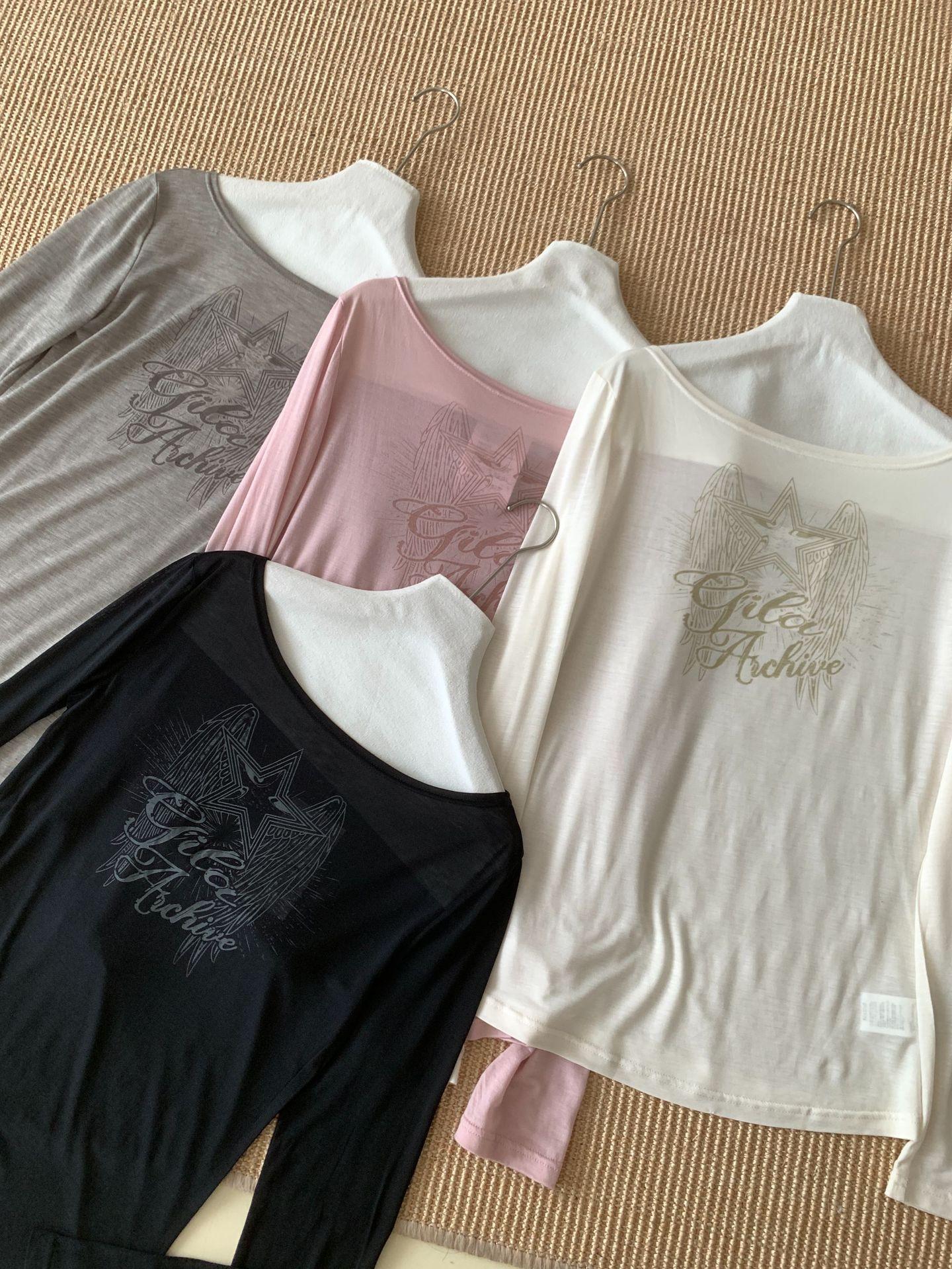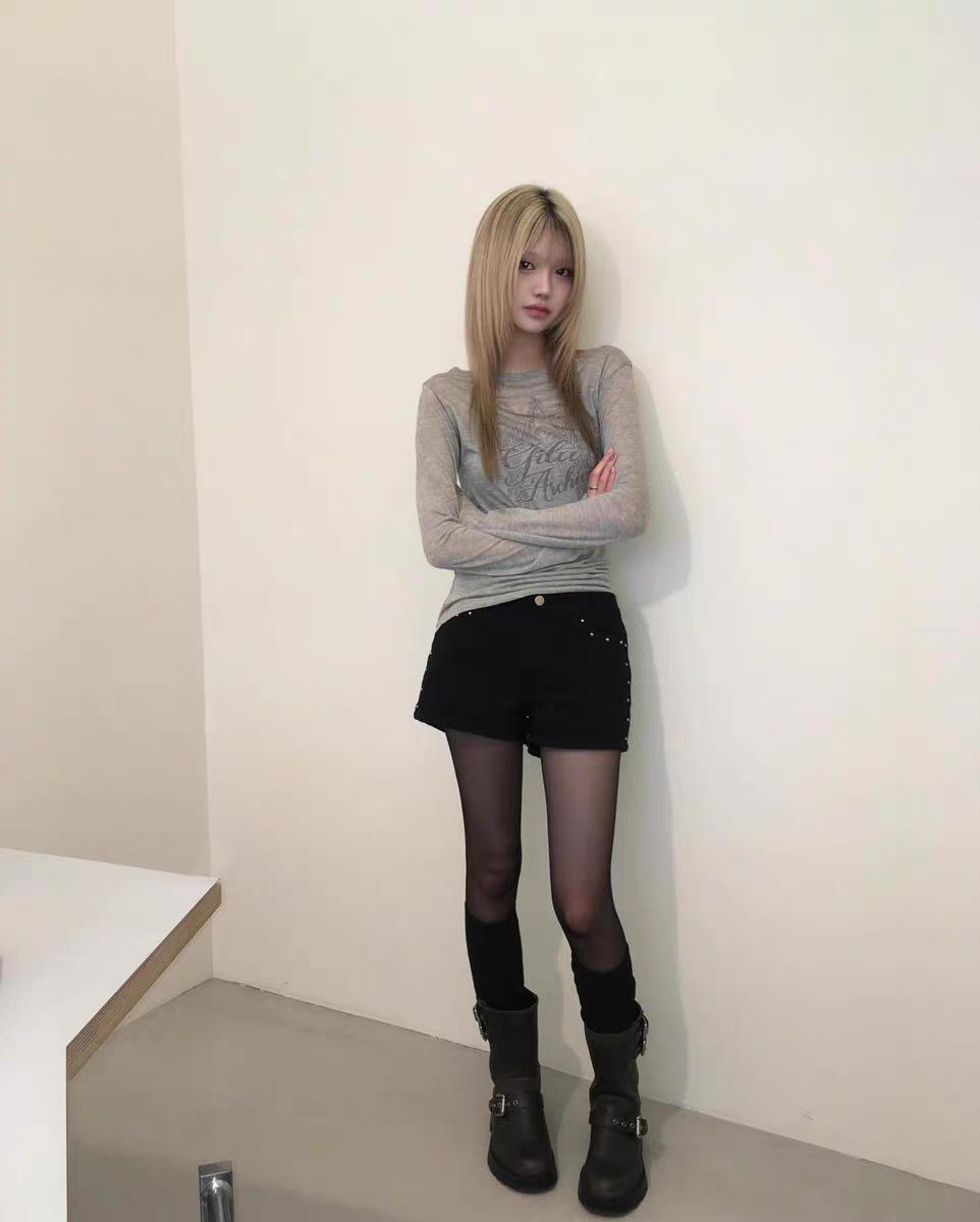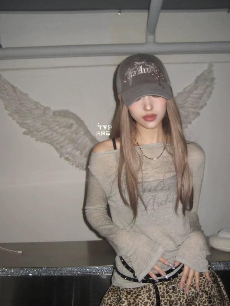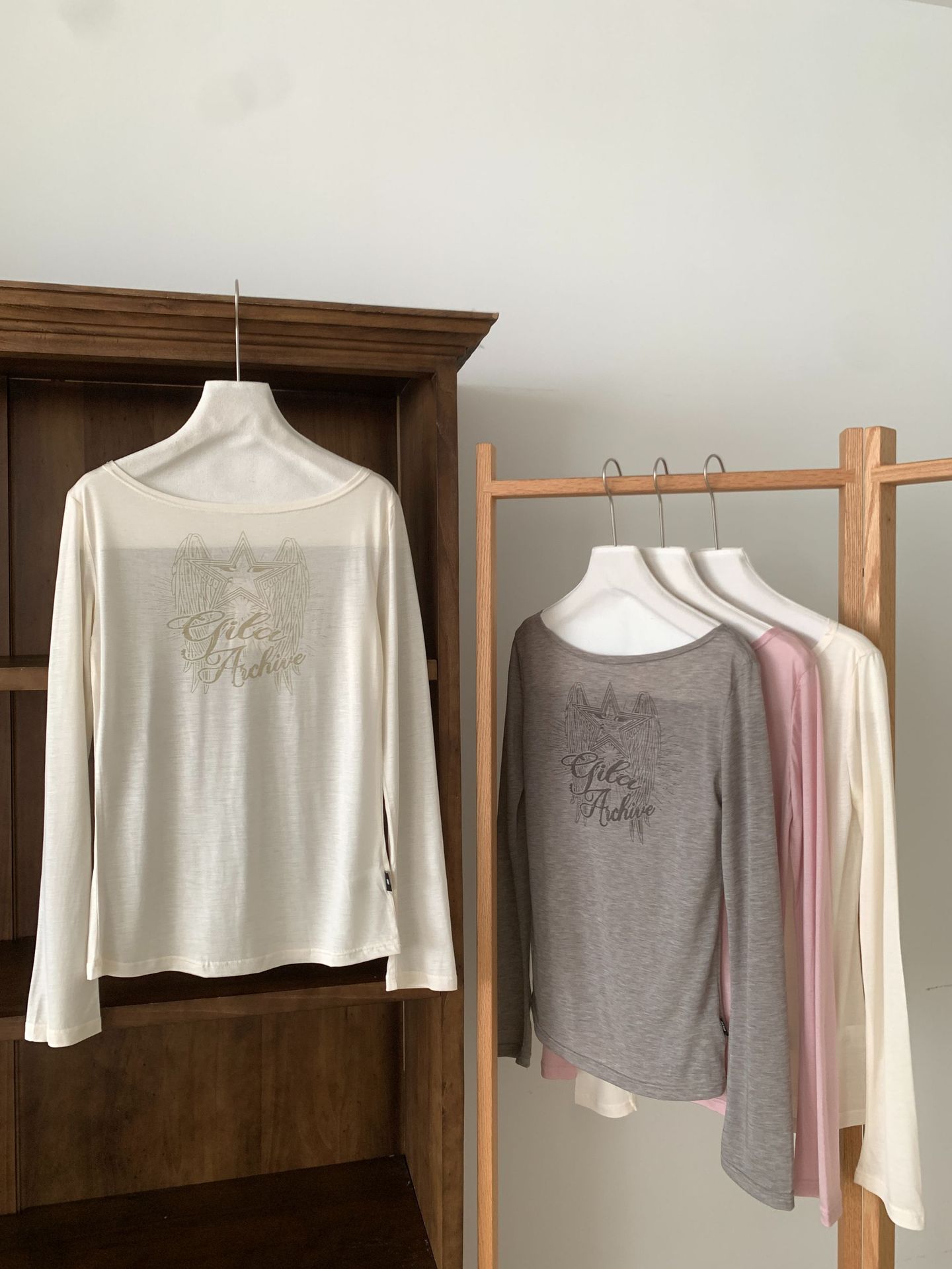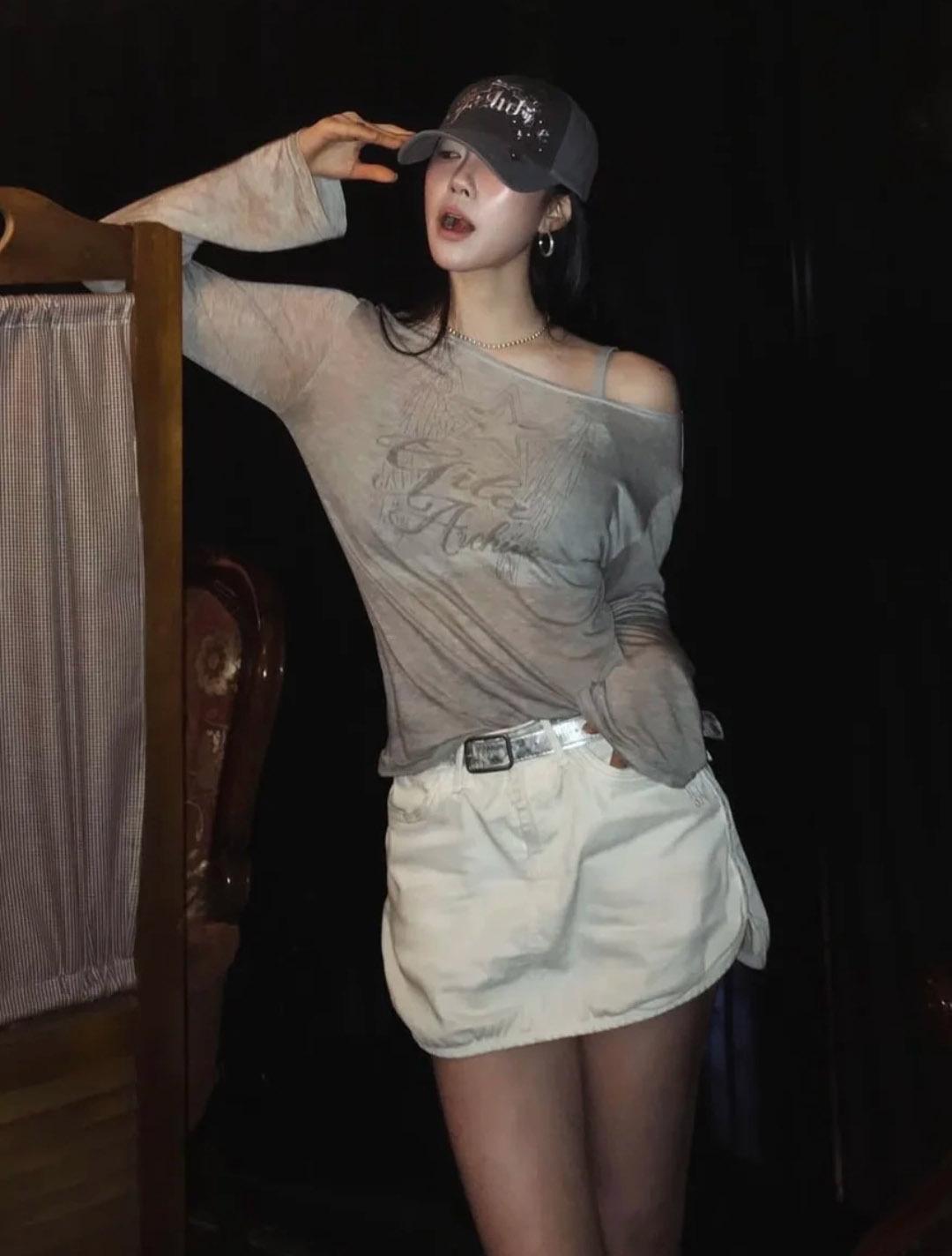 En stock 2025 Otoño nuevo coreano Dongdaemun [estilo Kim Ji-soo] top de un hombro con manga larga tipo estrella