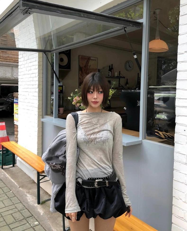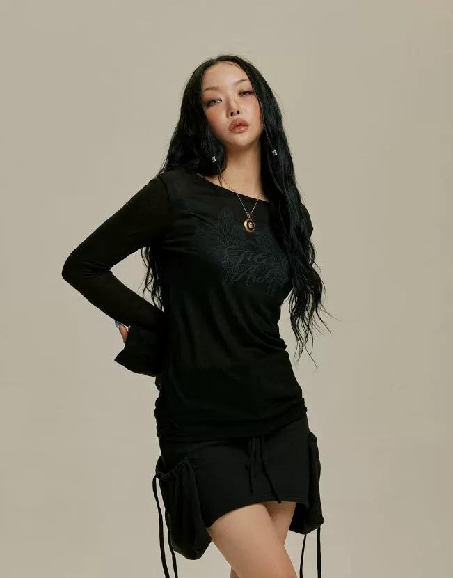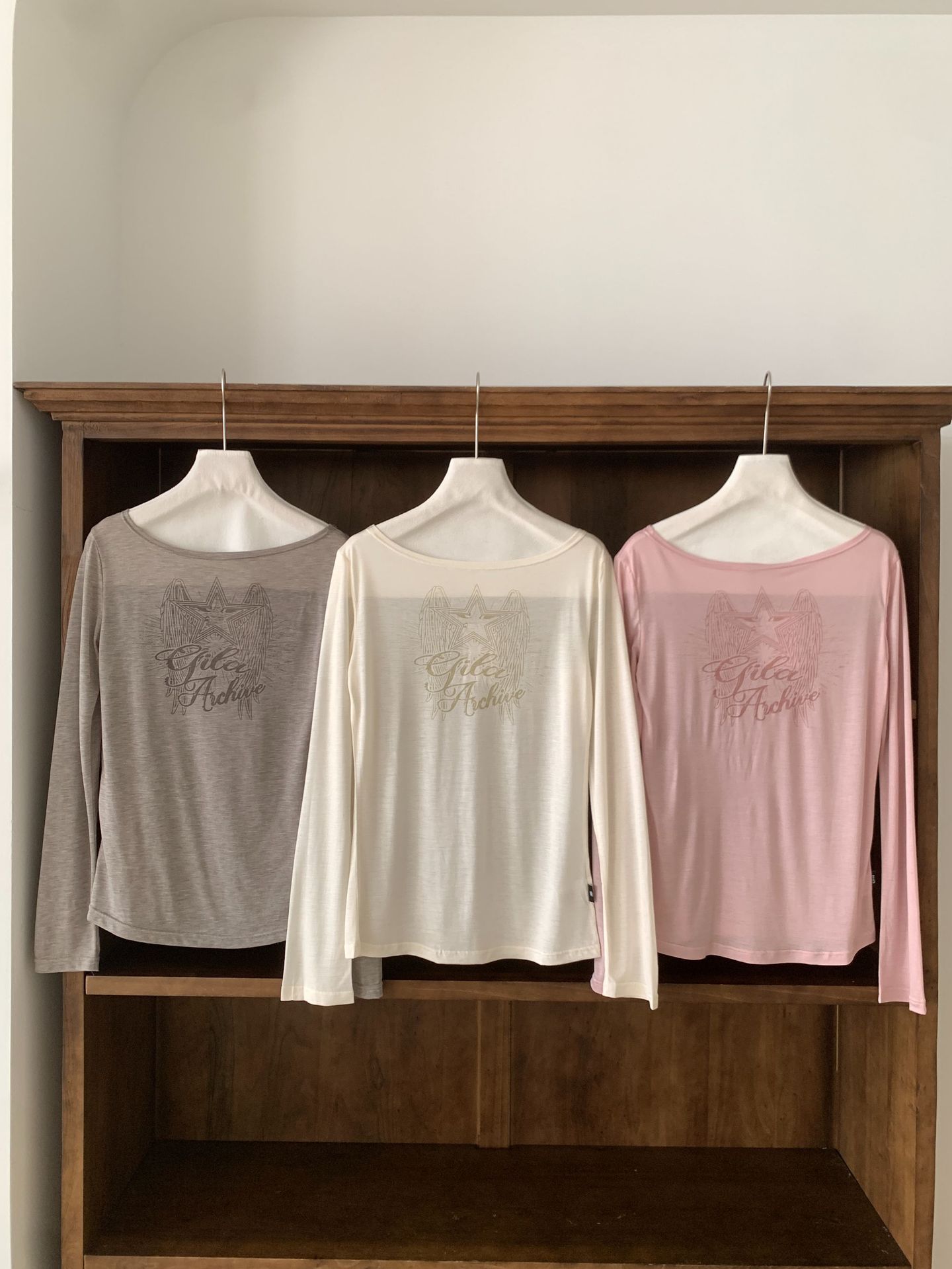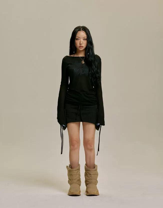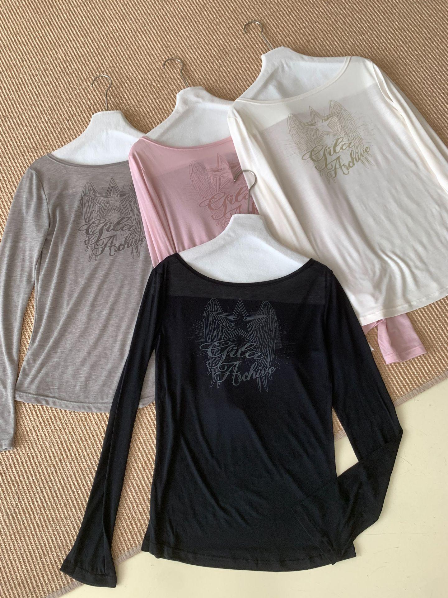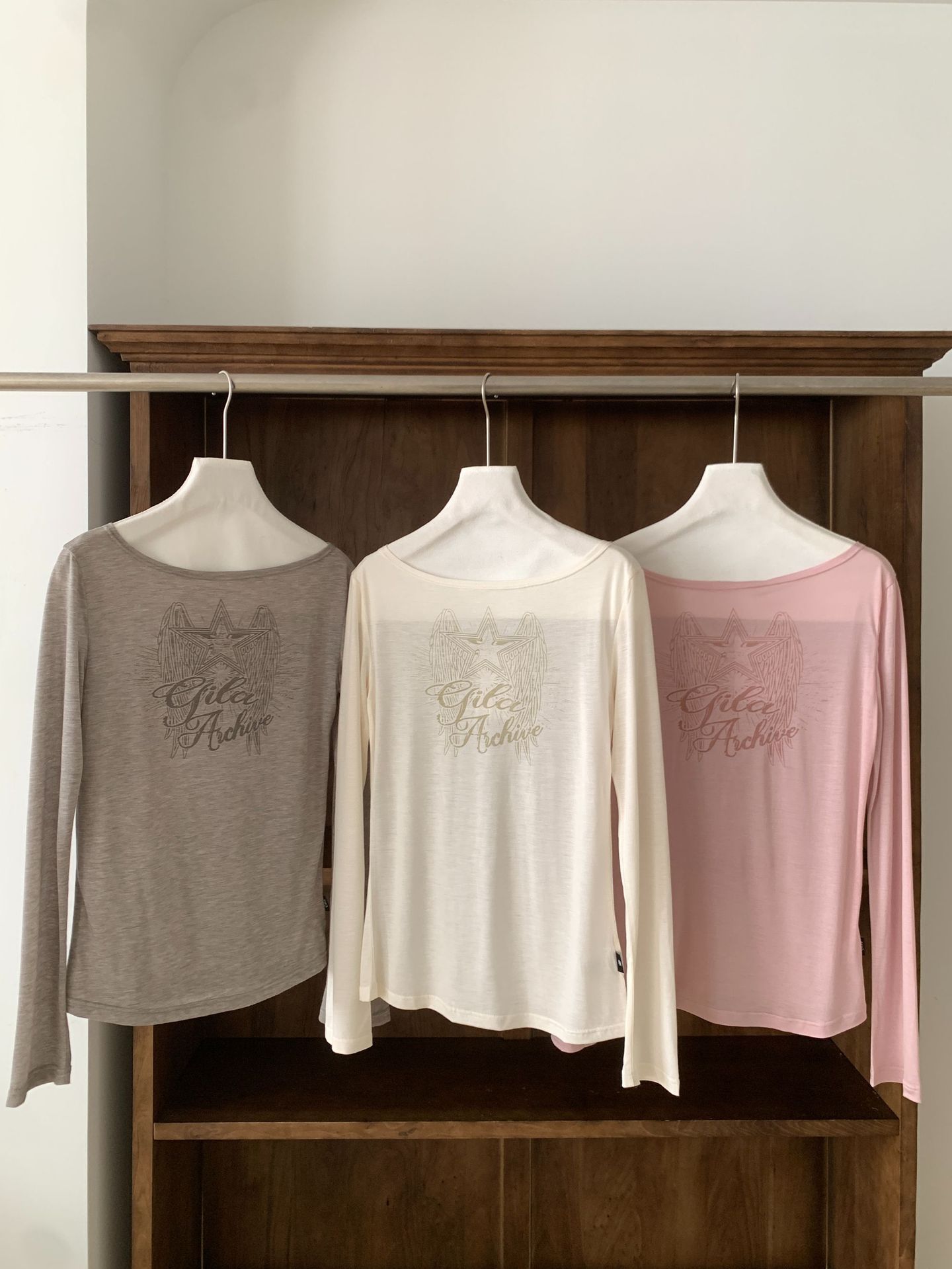En stock 2025 Otoño nuevo coreano Dongdaemun [estilo Kim Ji-soo] top de un hombro con manga larga tipo estrella