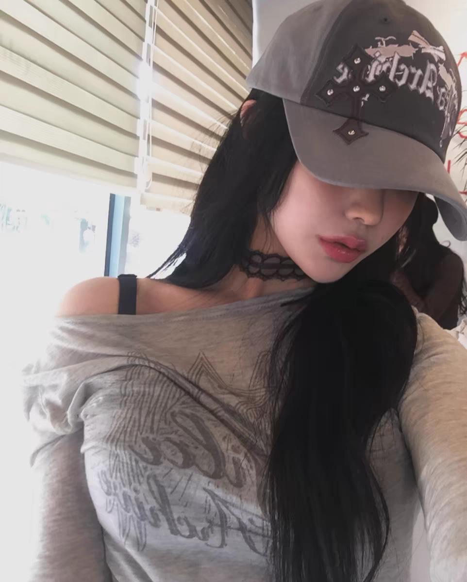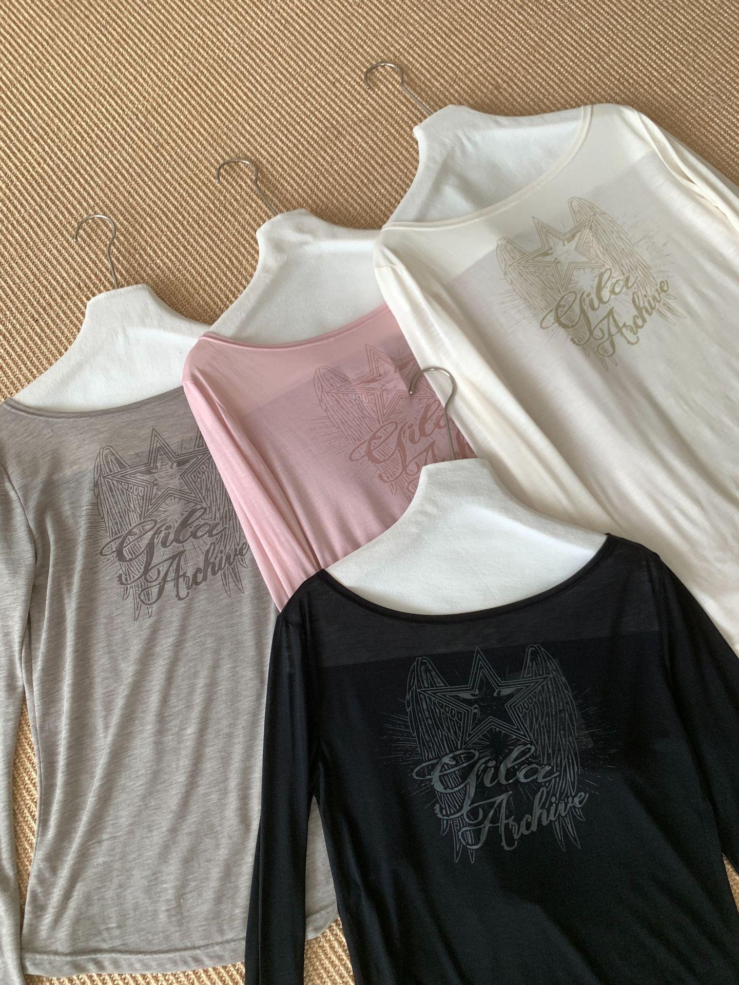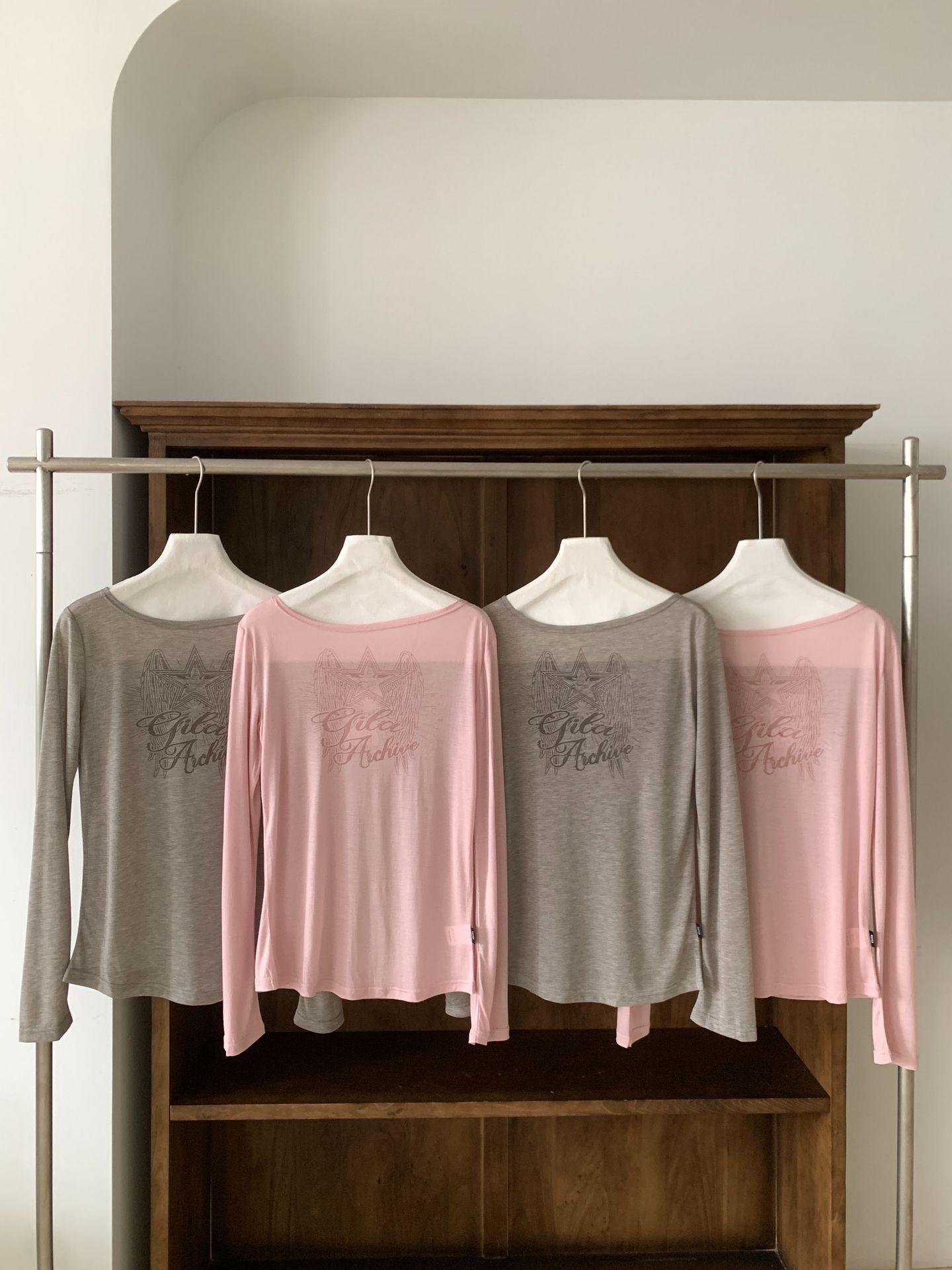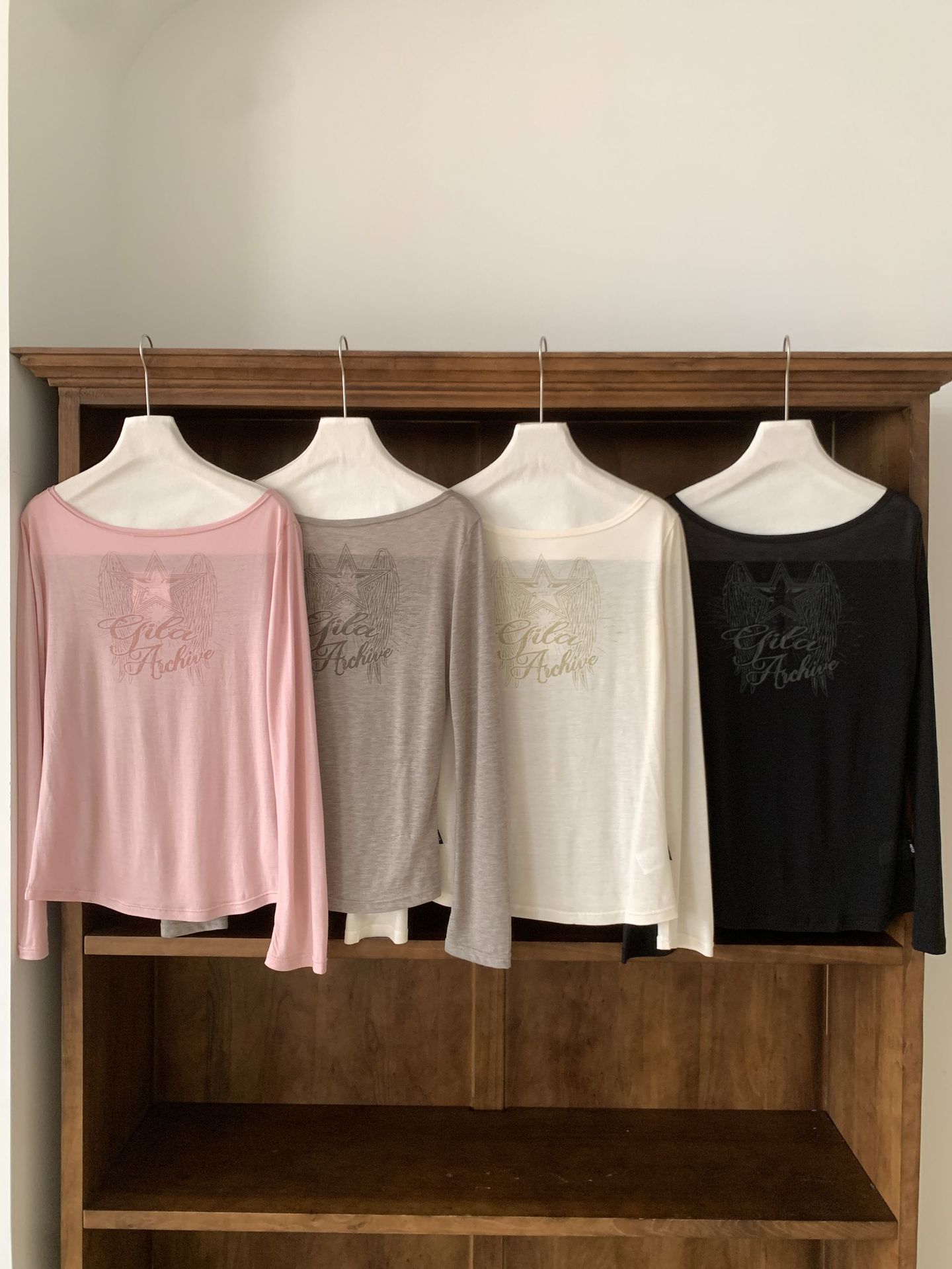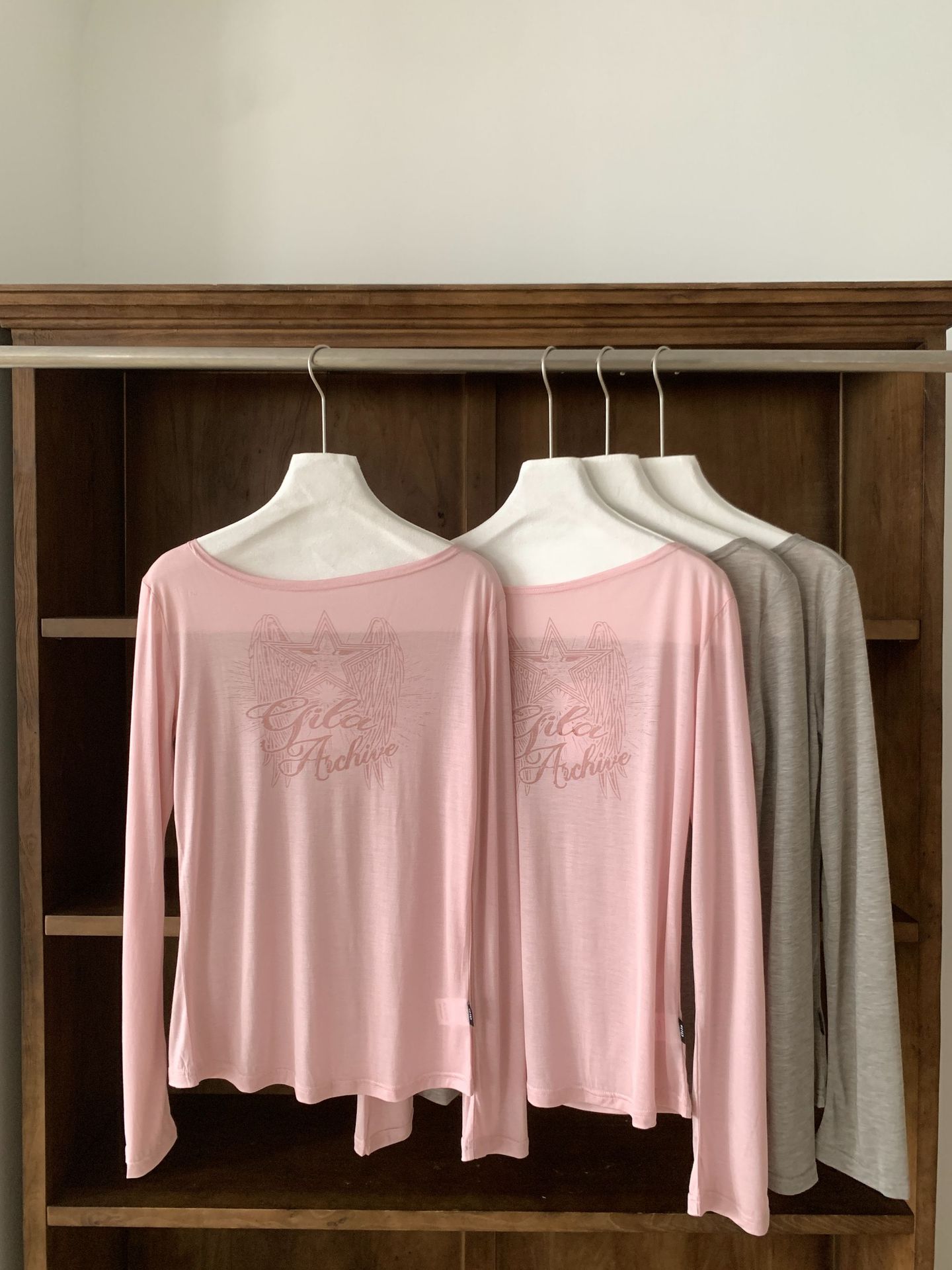 En stock 2025 Otoño nuevo coreano Dongdaemun [estilo Kim Ji-soo] top de un hombro con manga larga tipo estrella