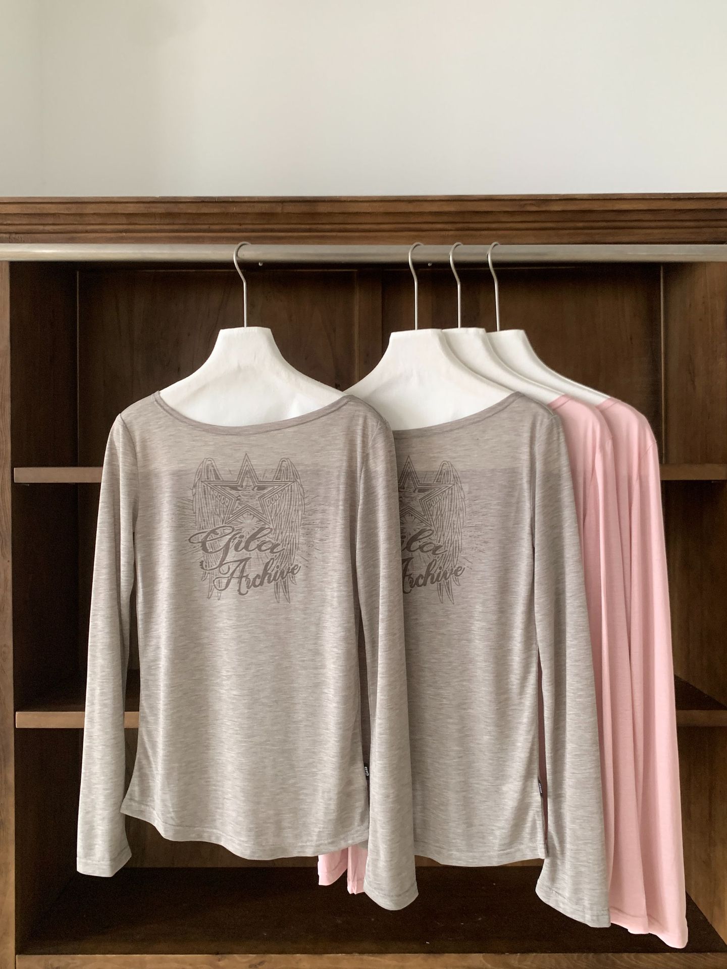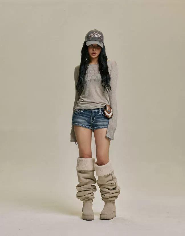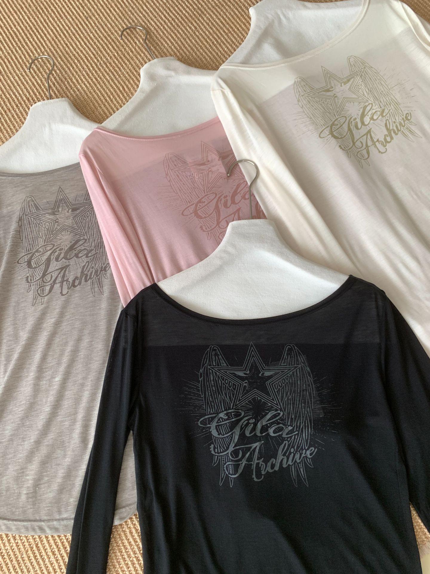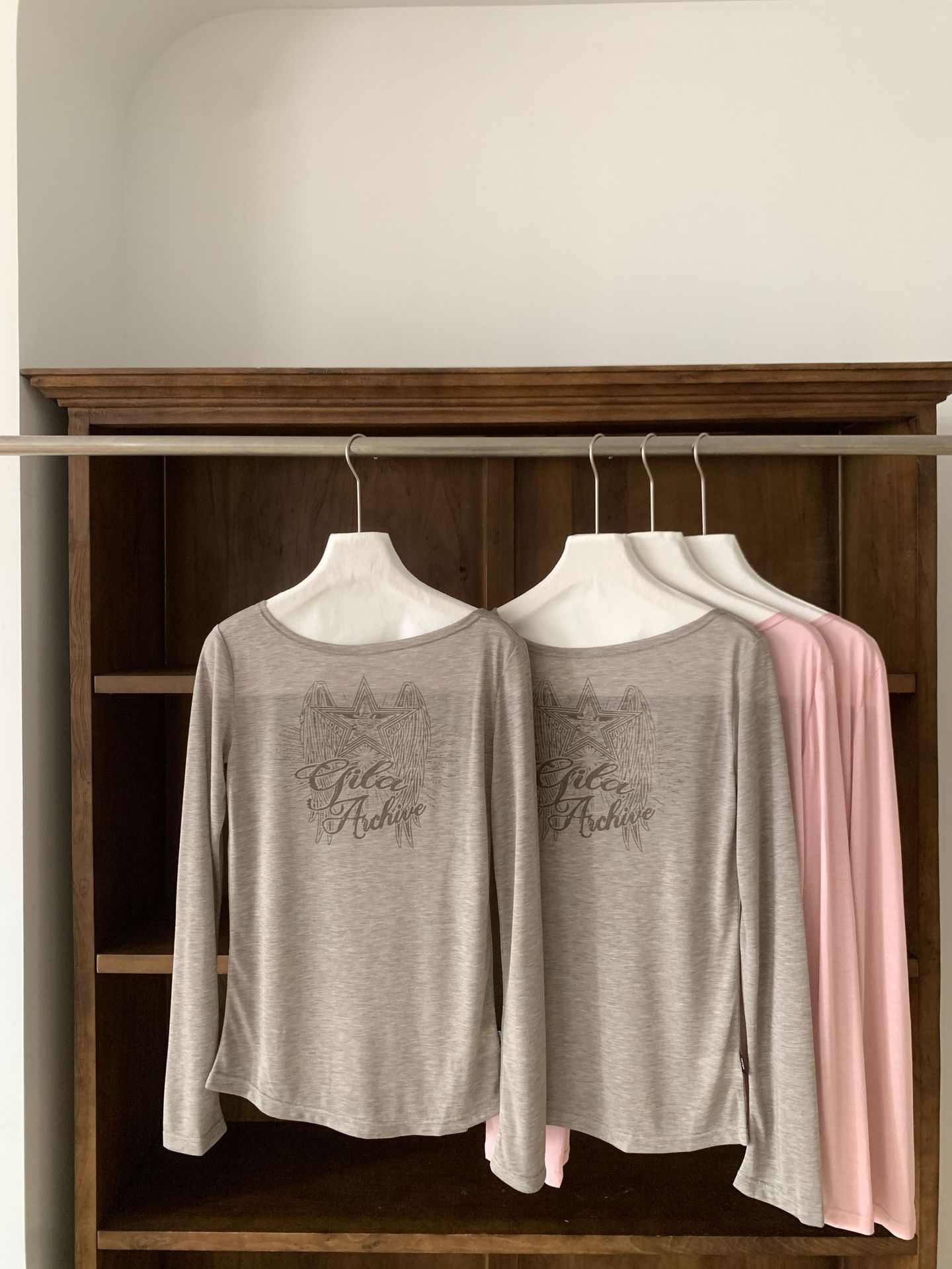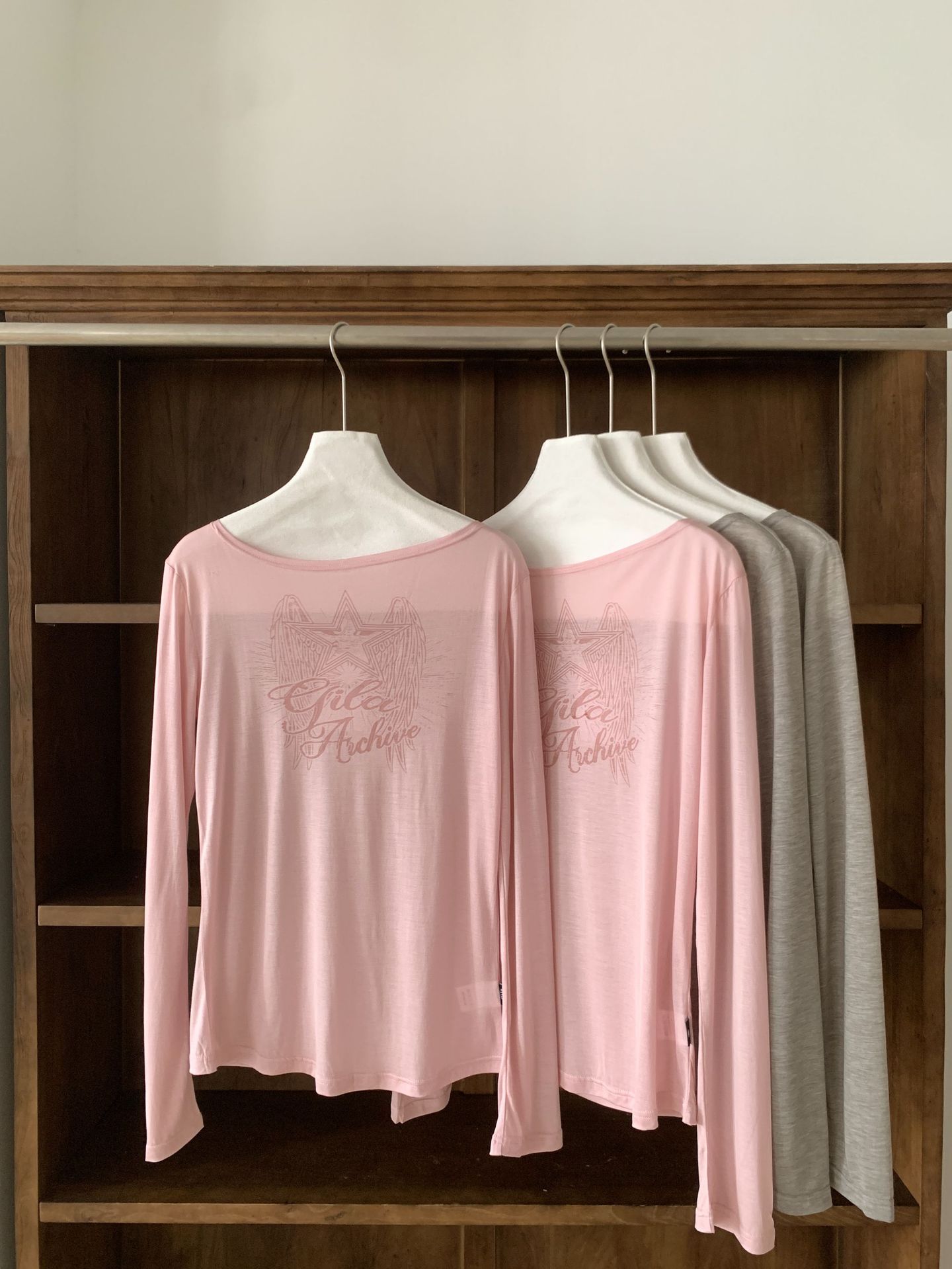 En stock 2025 Otoño nuevo coreano Dongdaemun [estilo Kim Ji-soo] top de un hombro con manga larga tipo estrella