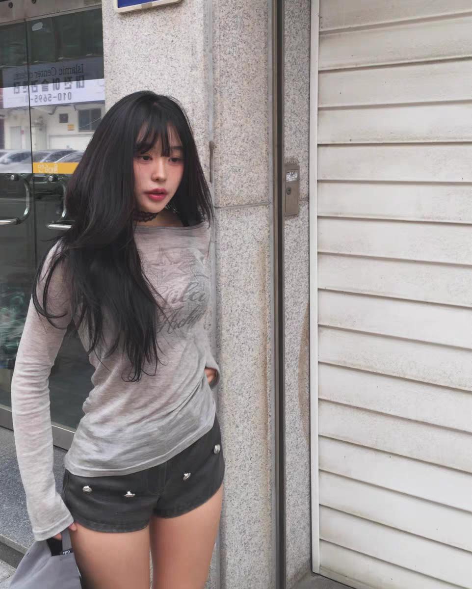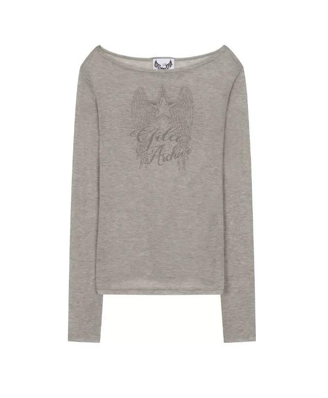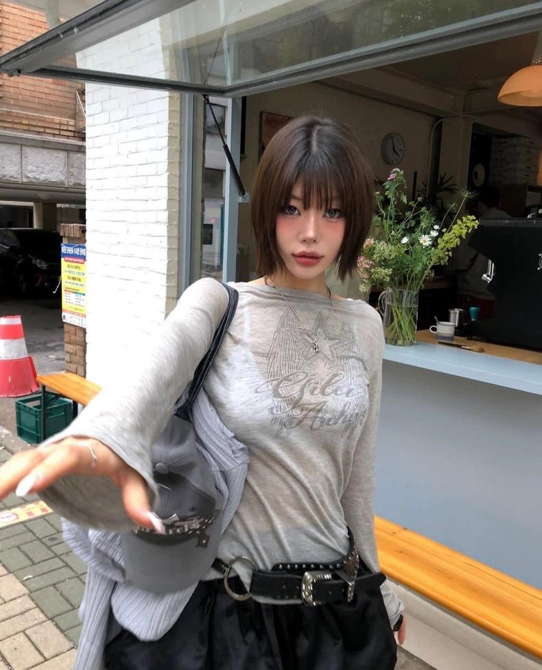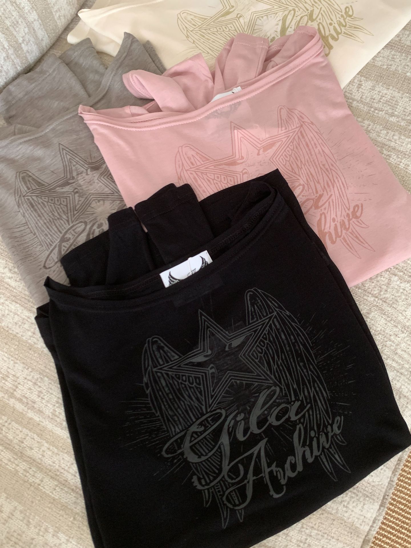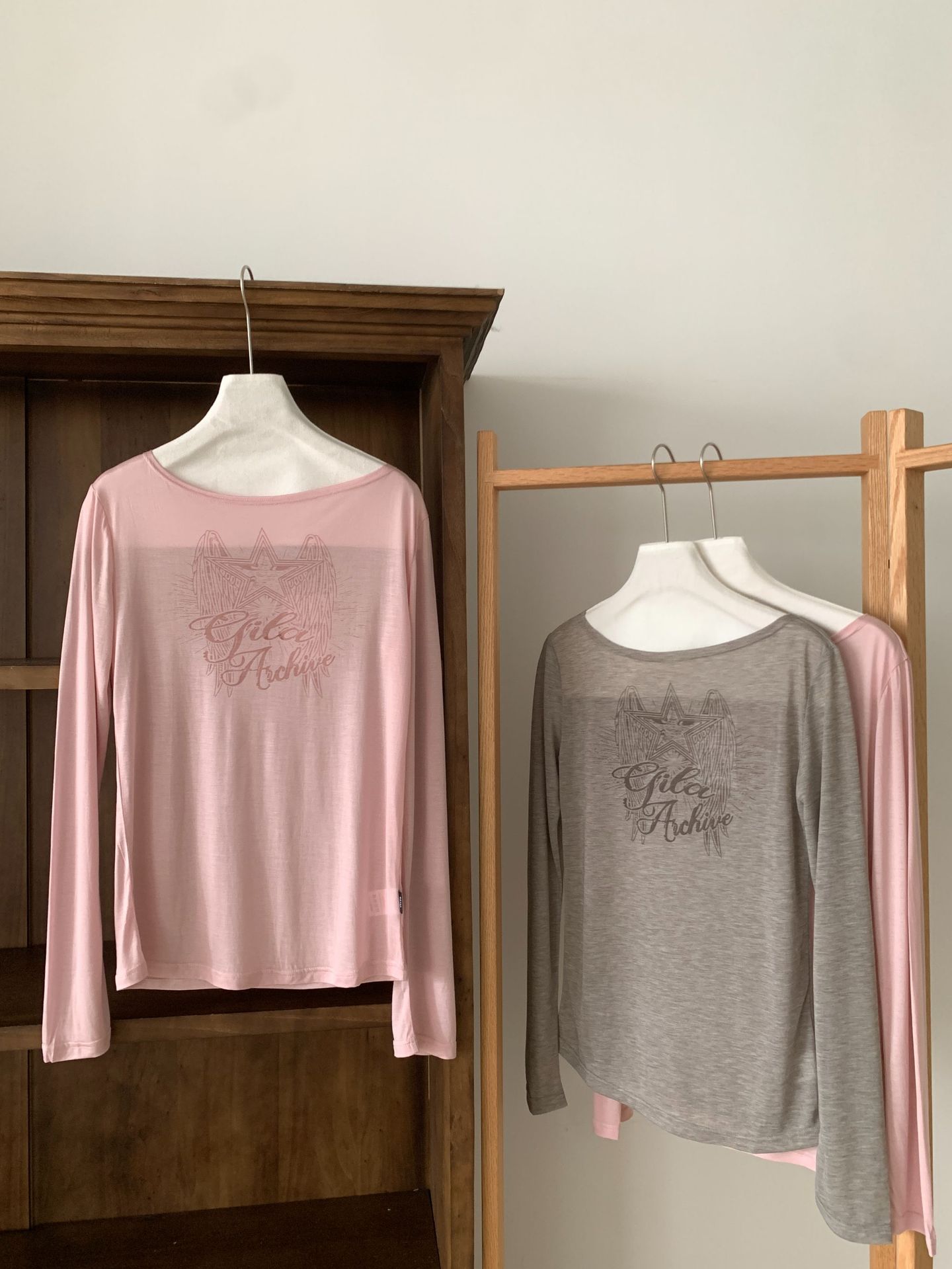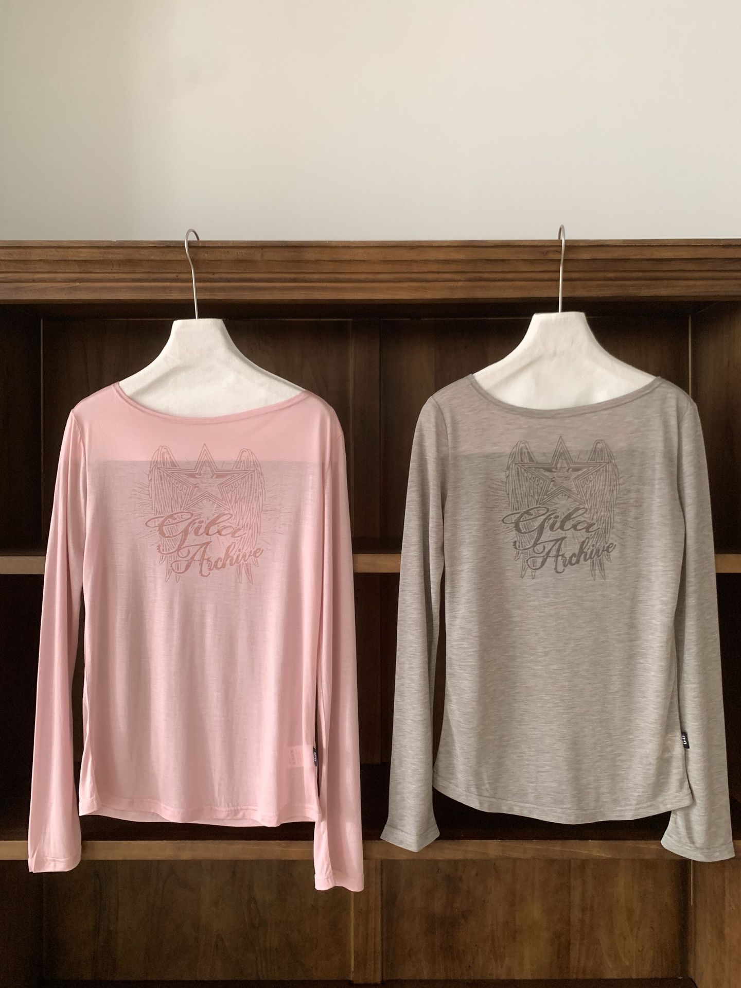 En stock 2025 Otoño nuevo coreano Dongdaemun [estilo Kim Ji-soo] top de un hombro con manga larga tipo estrella
