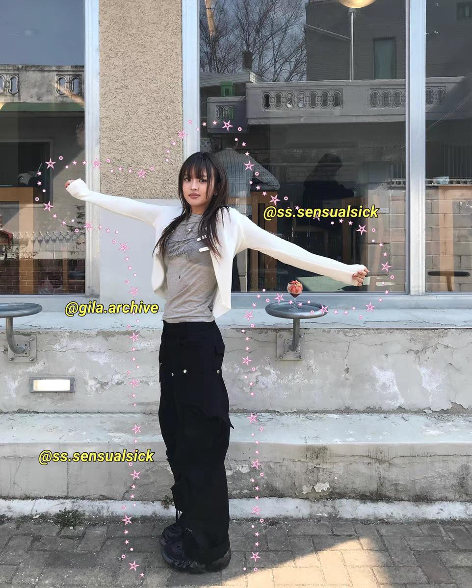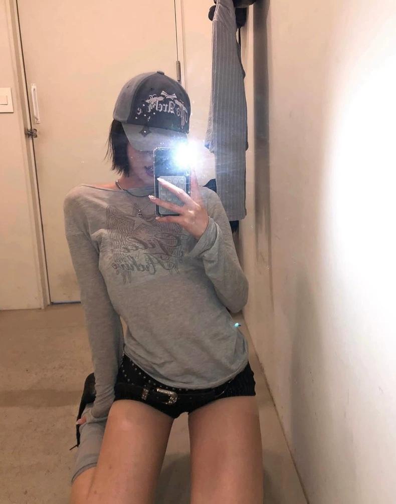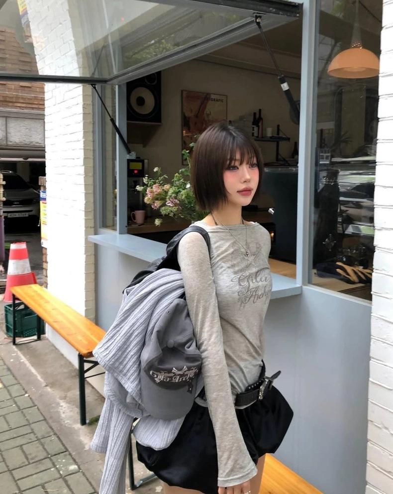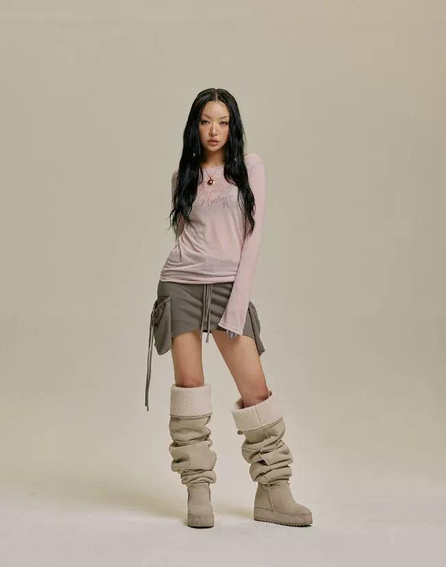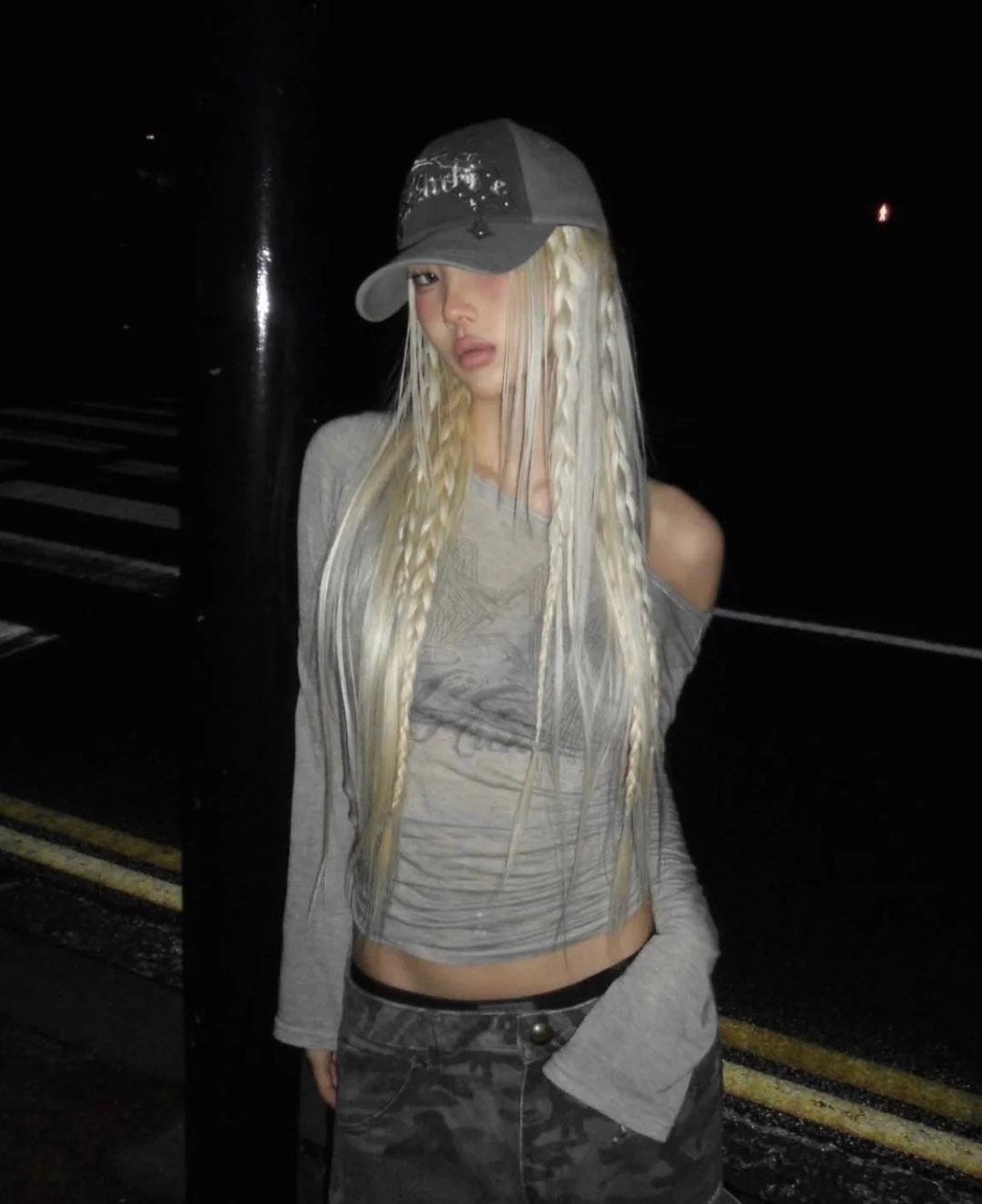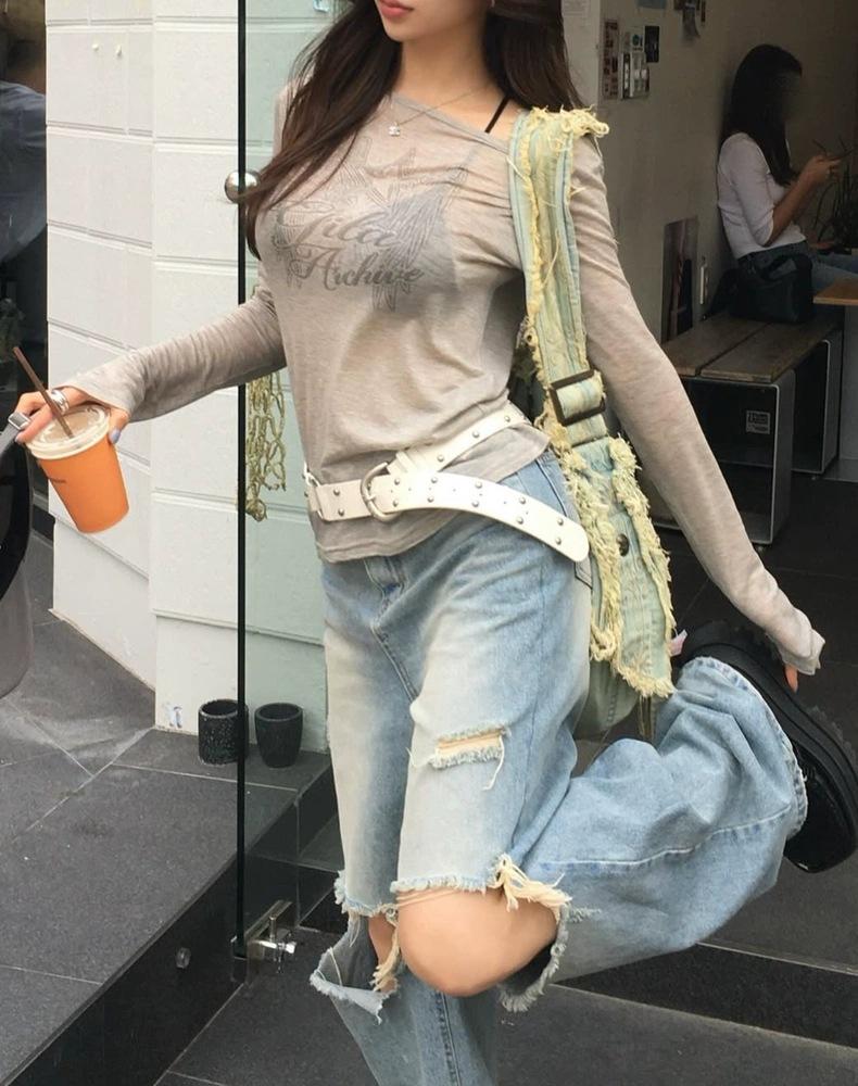 En stock 2025 Otoño nuevo coreano Dongdaemun [estilo Kim Ji-soo] top de un hombro con manga larga tipo estrella