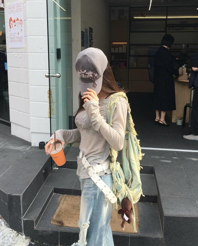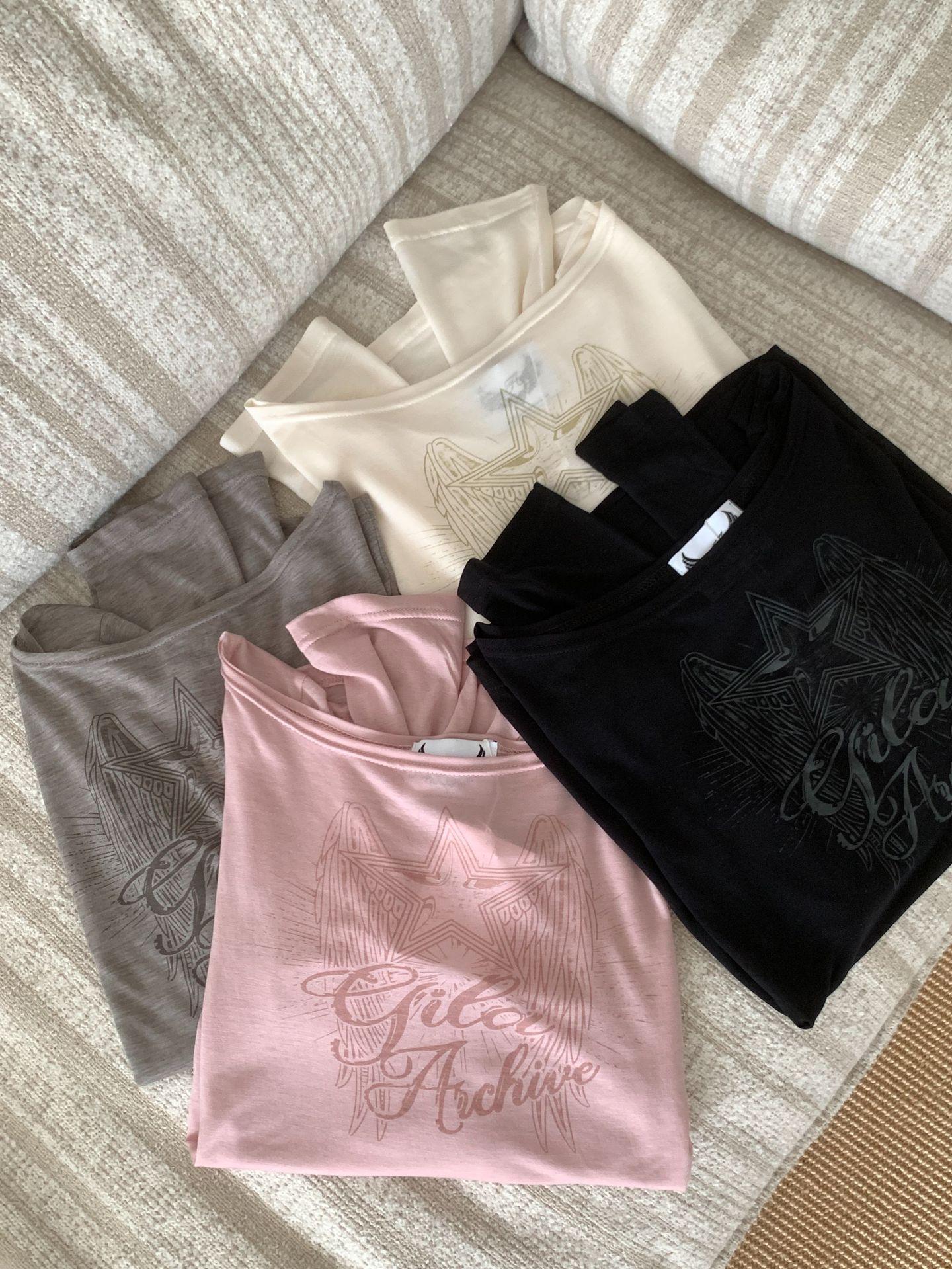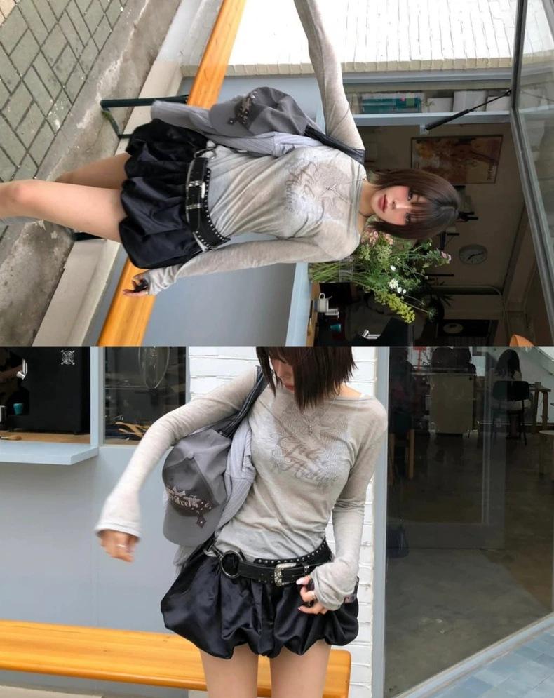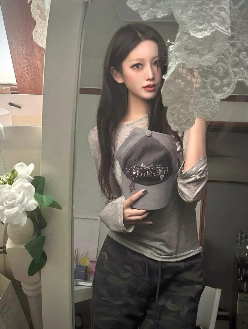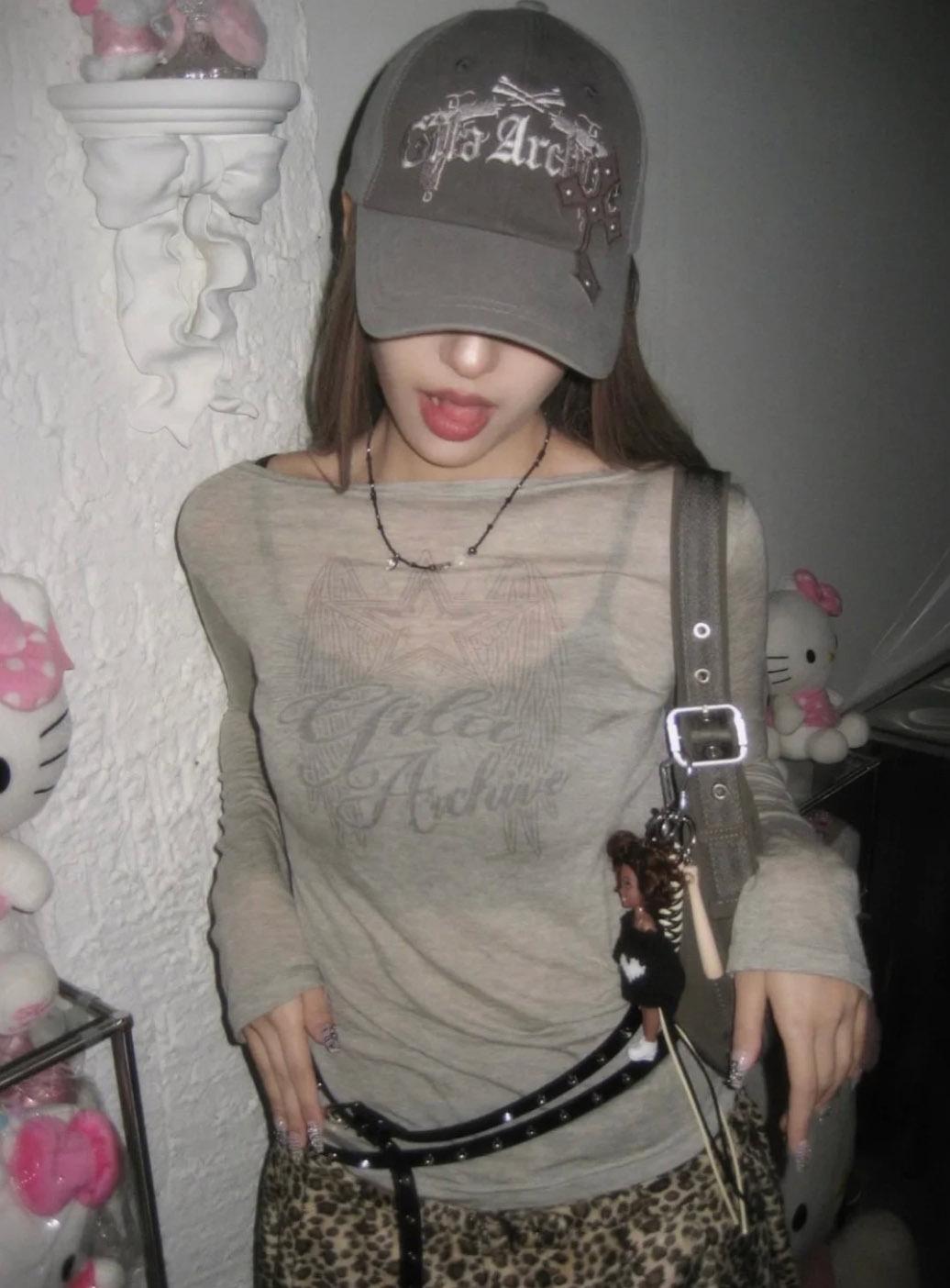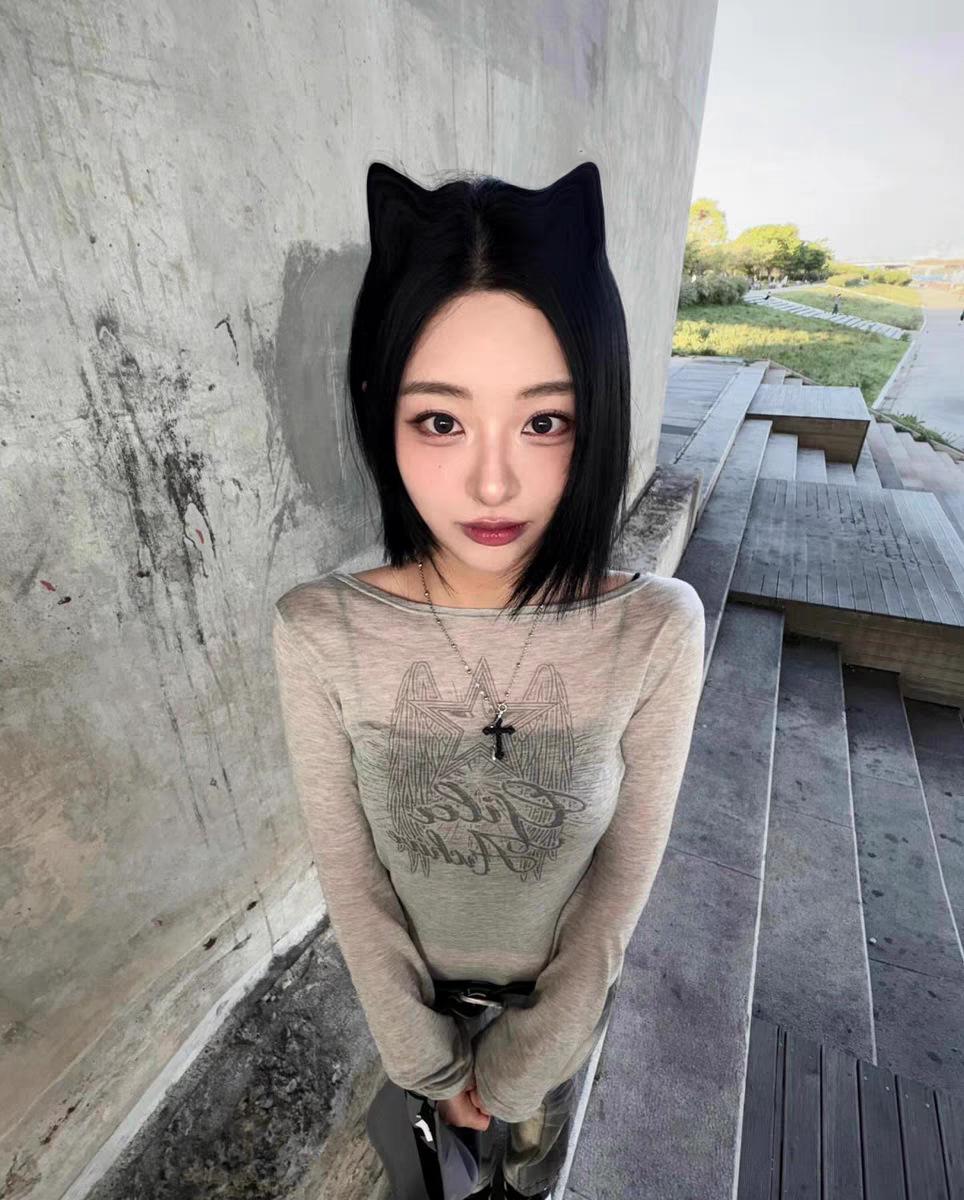 En stock 2025 Otoño nuevo coreano Dongdaemun [estilo Kim Ji-soo] top de un hombro con manga larga tipo estrella