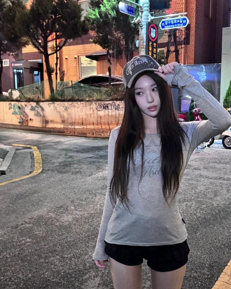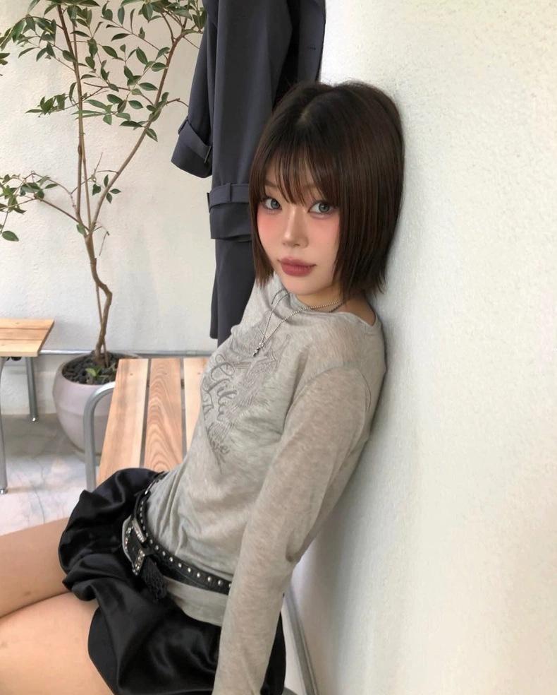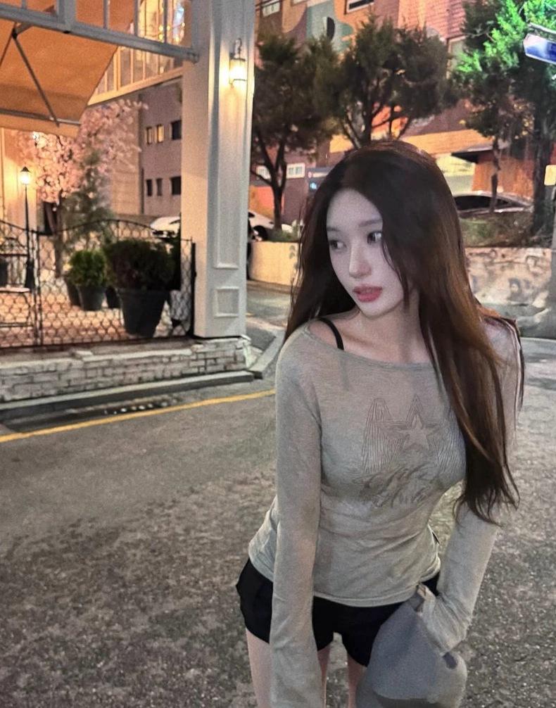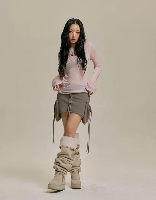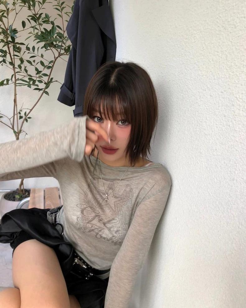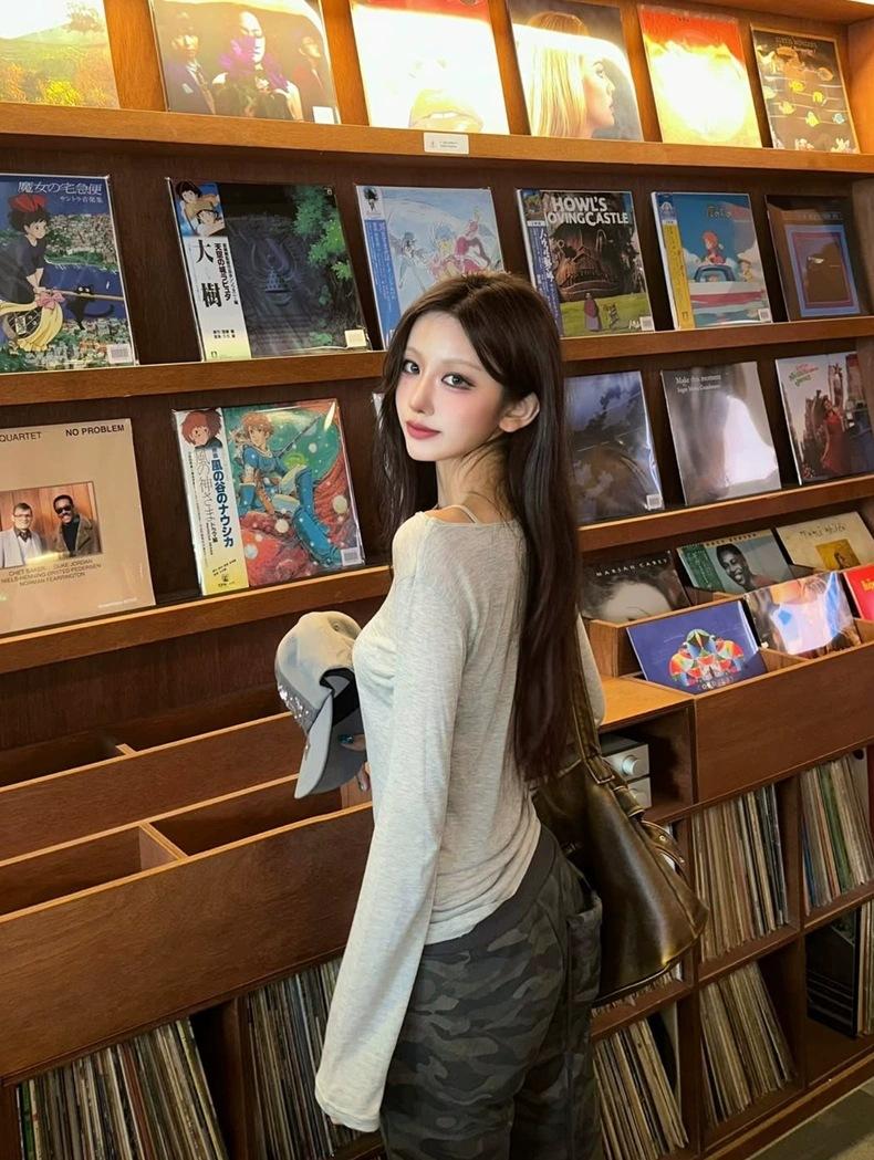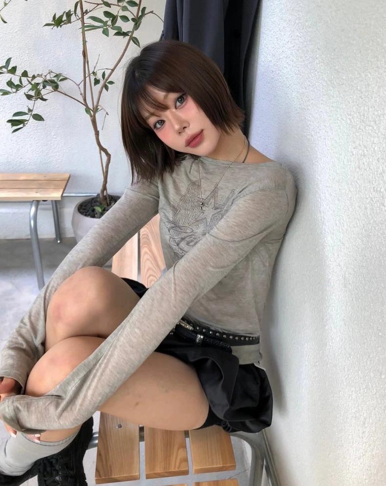En stock 2025 Otoño nuevo coreano Dongdaemun [estilo Kim Ji-soo] top de un hombro con manga larga tipo estrella
