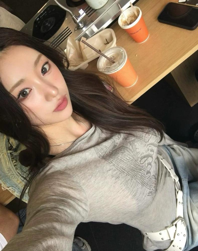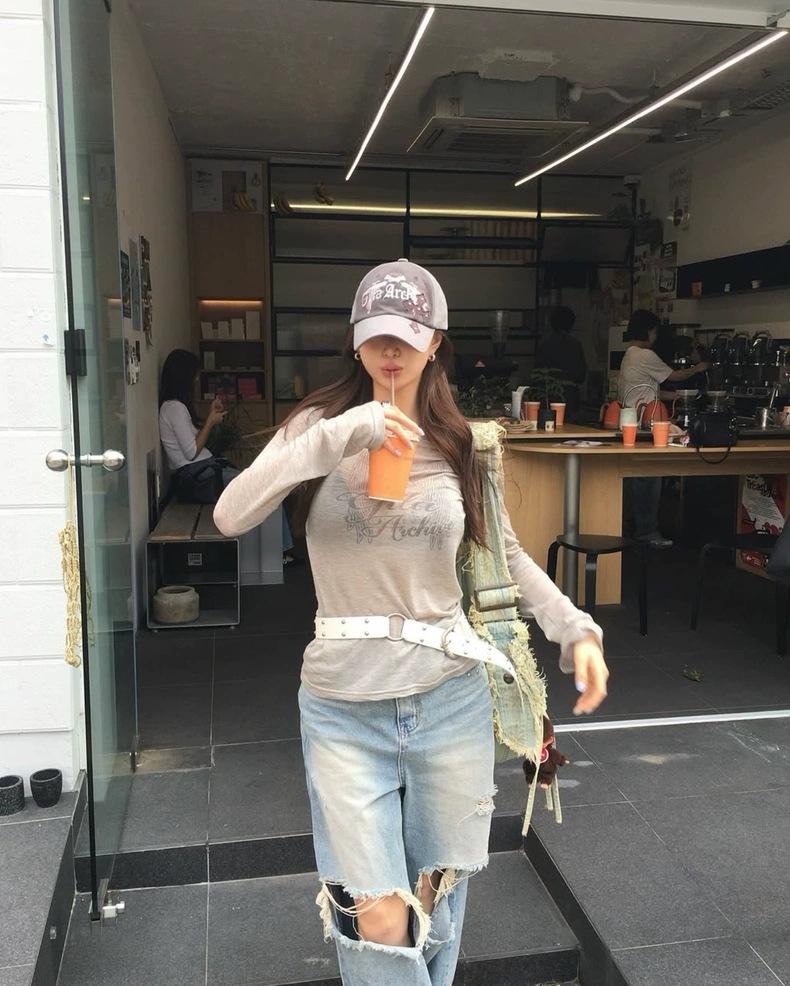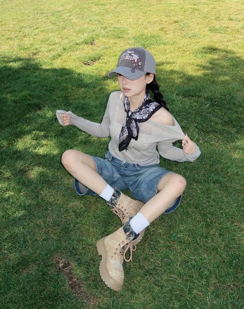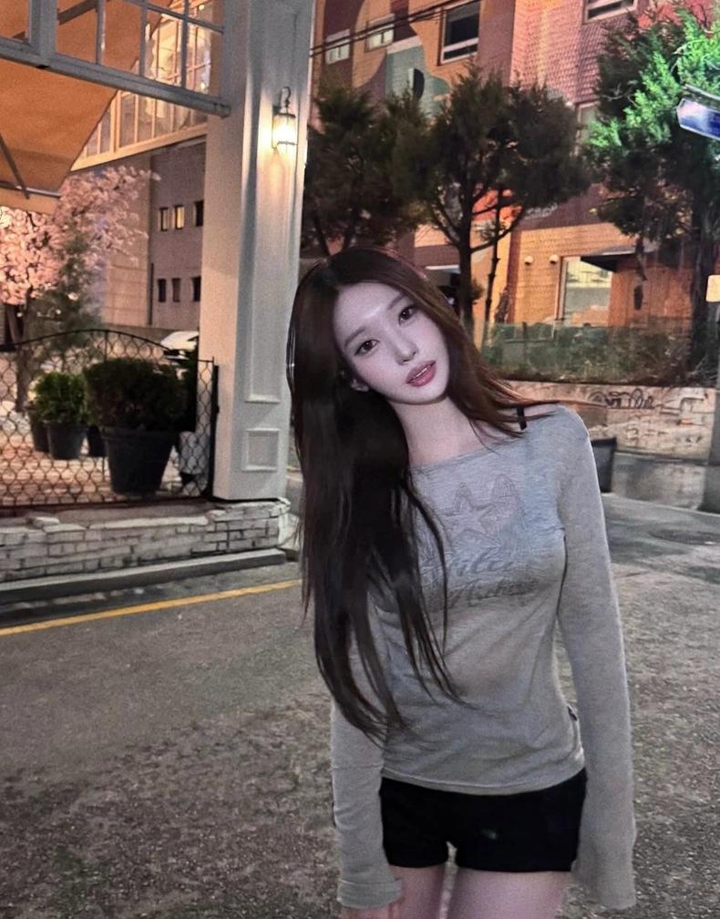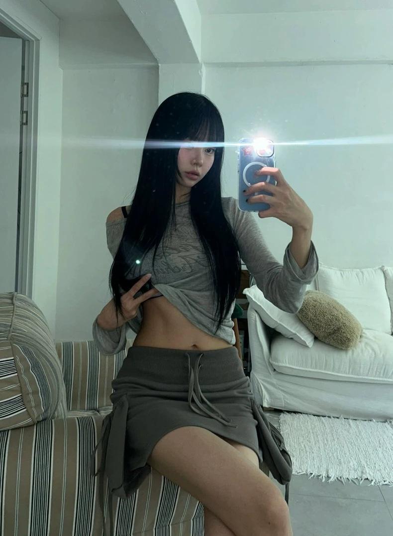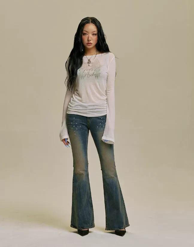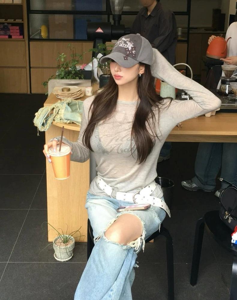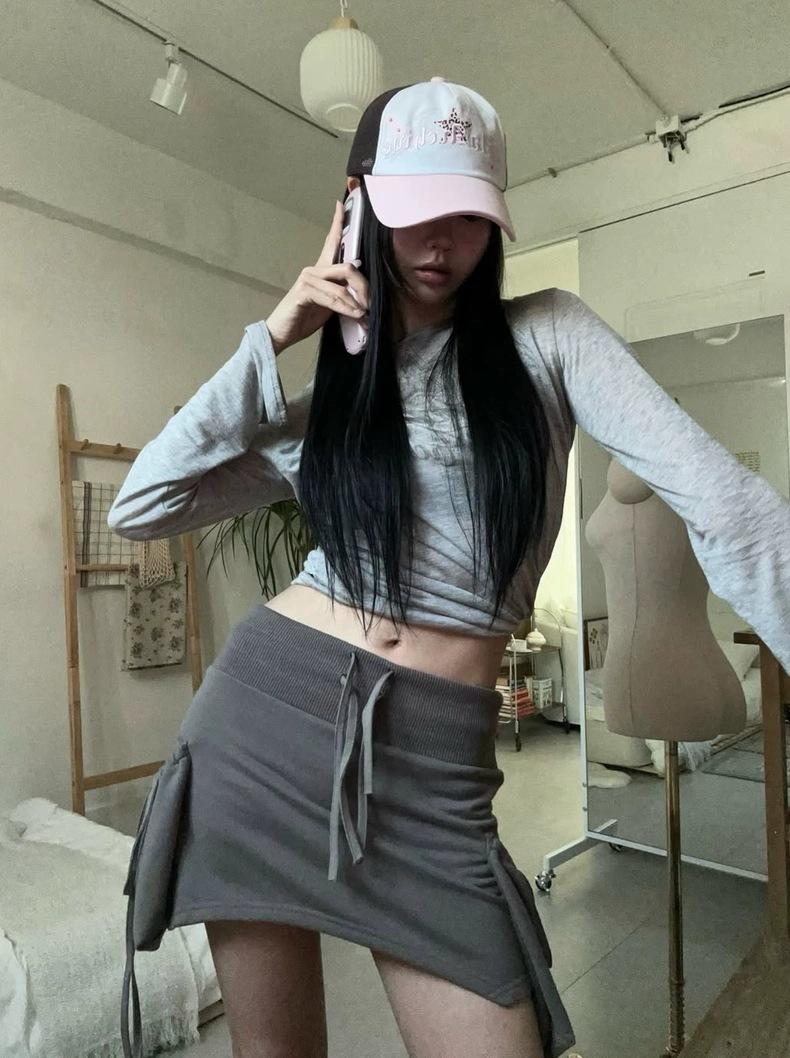 En stock 2025 Otoño nuevo coreano Dongdaemun [estilo Kim Ji-soo] top de un hombro con manga larga tipo estrella