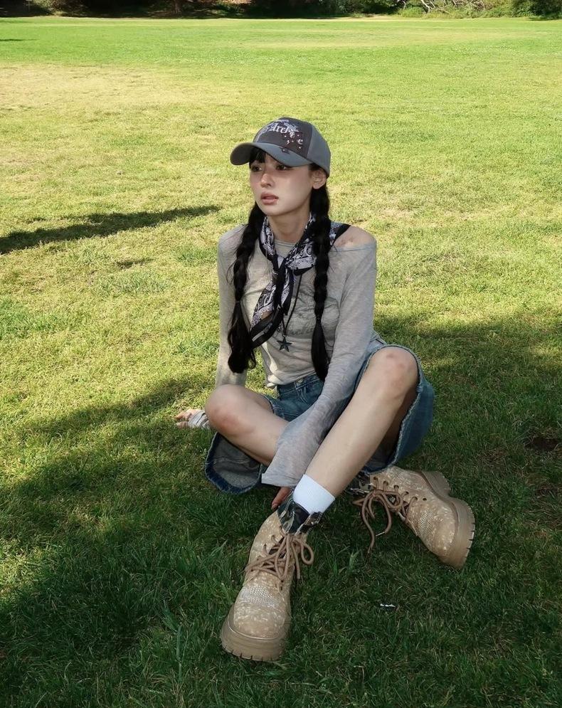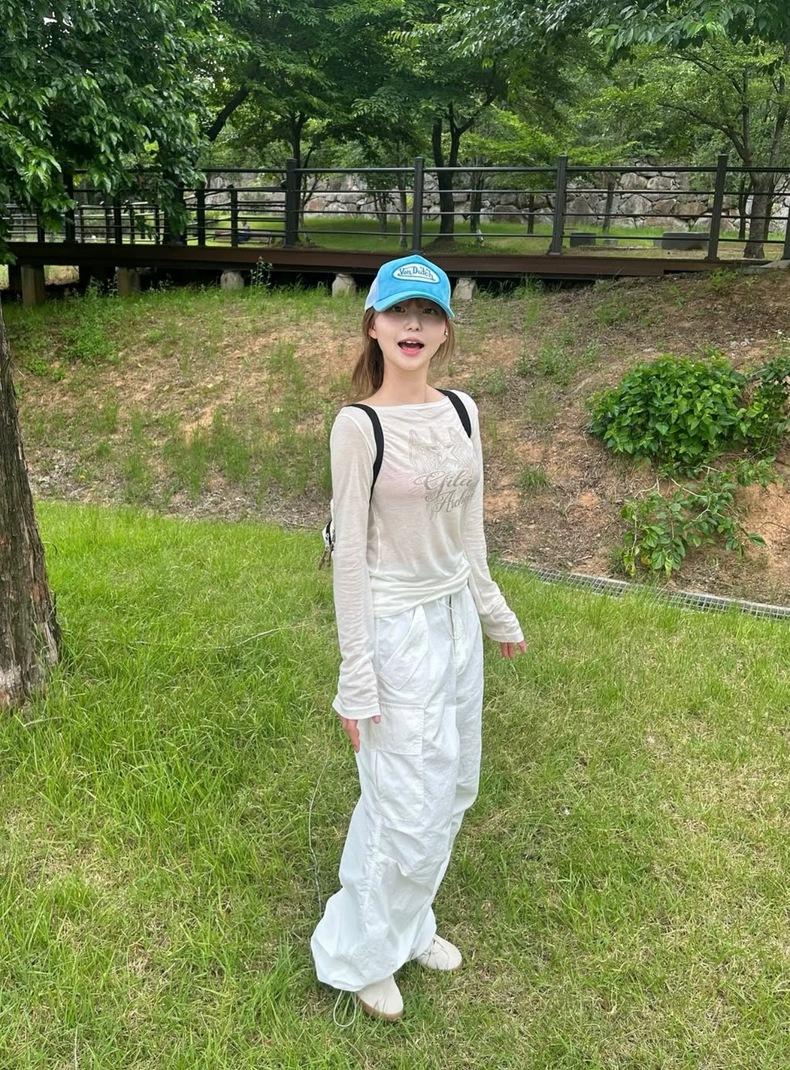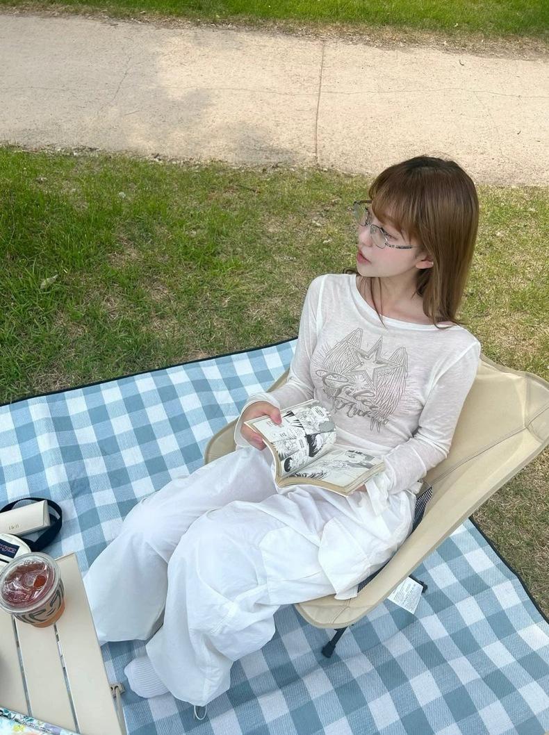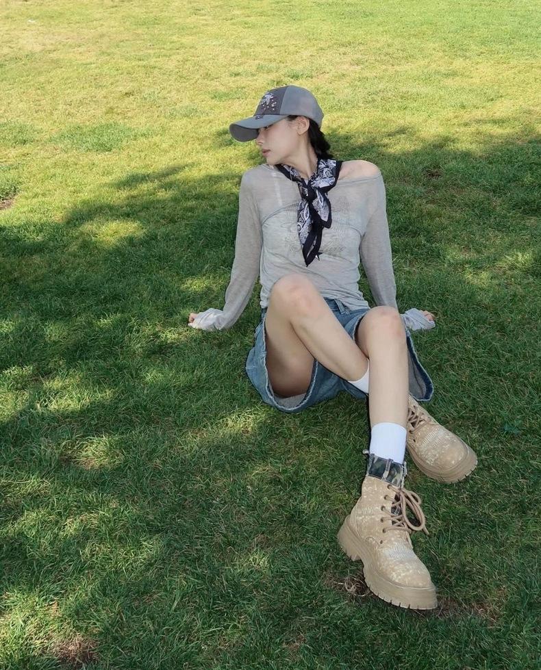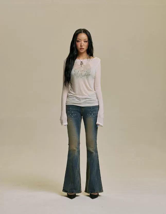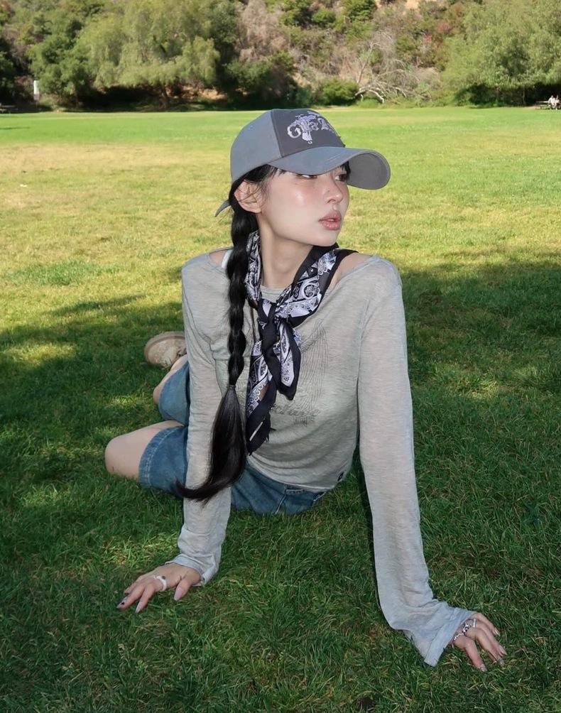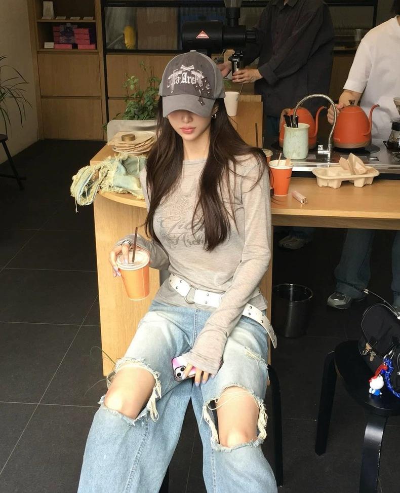 En stock 2025 Otoño nuevo coreano Dongdaemun [estilo Kim Ji-soo] top de un hombro con manga larga tipo estrella