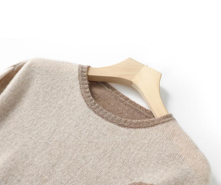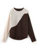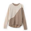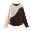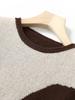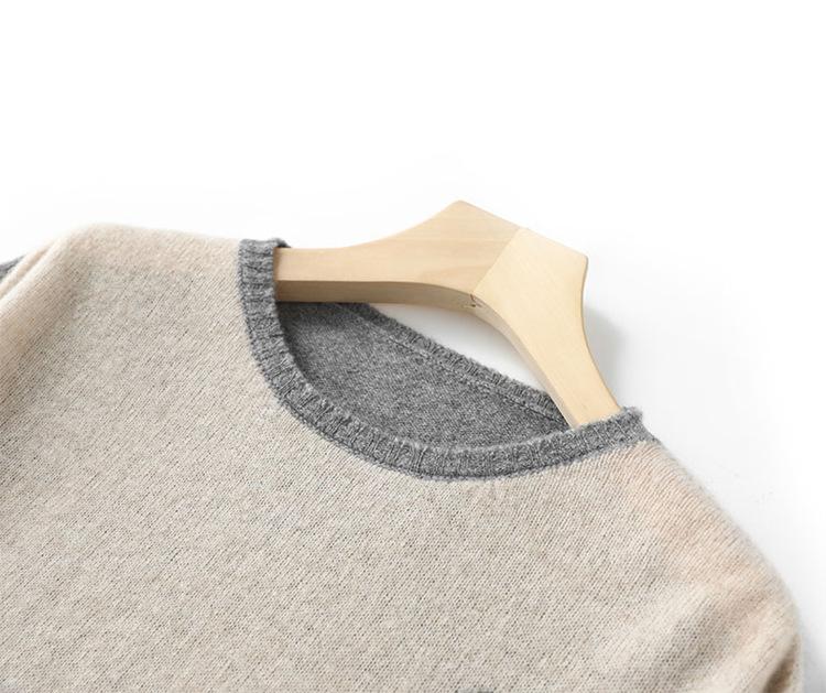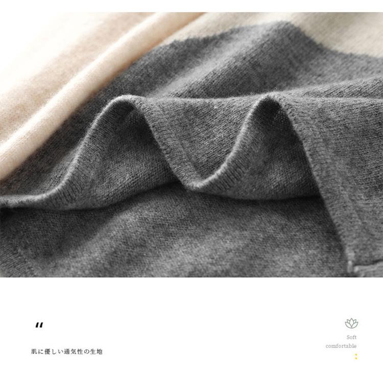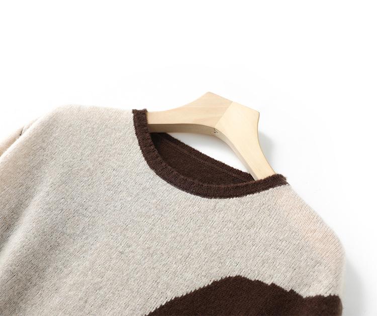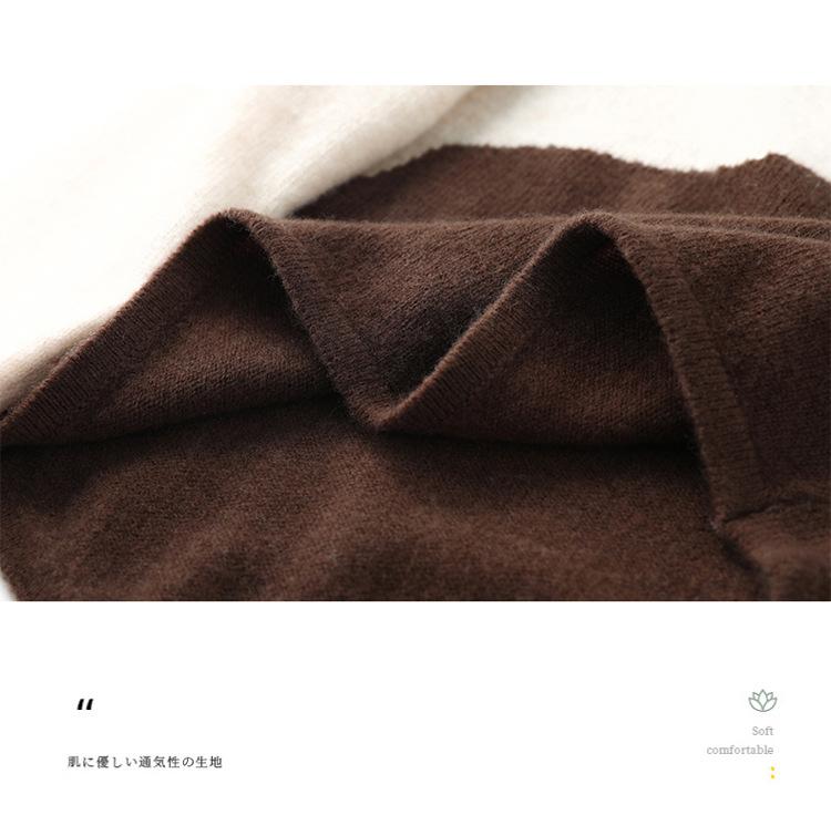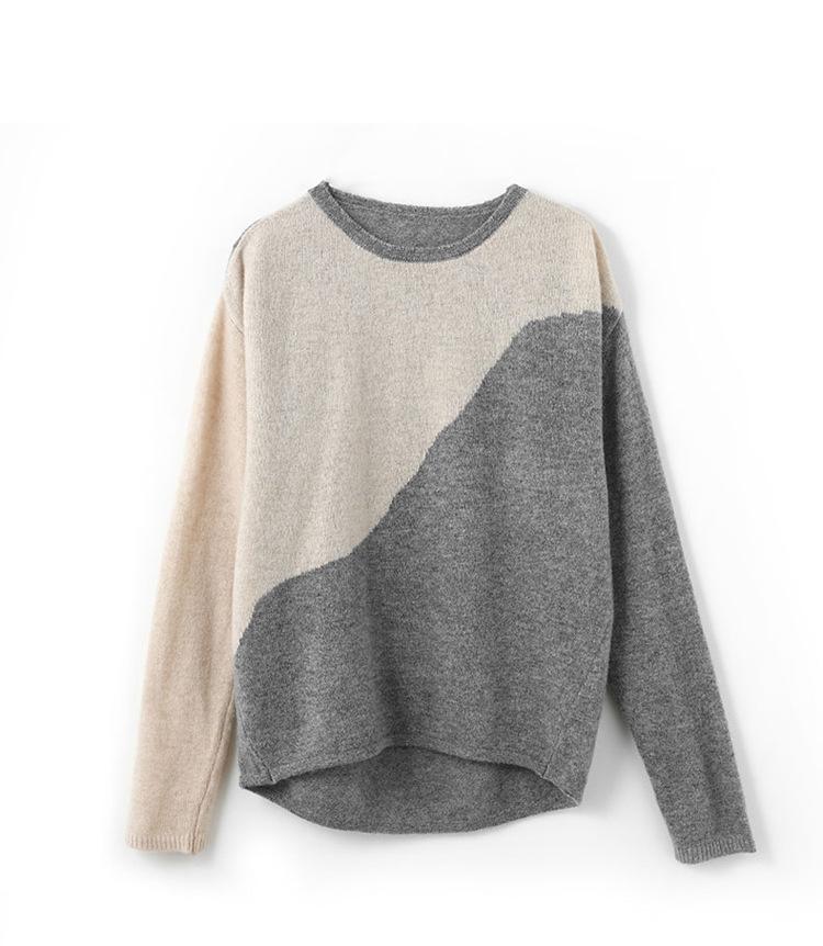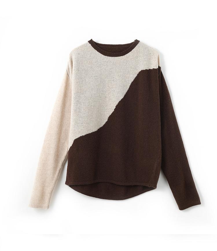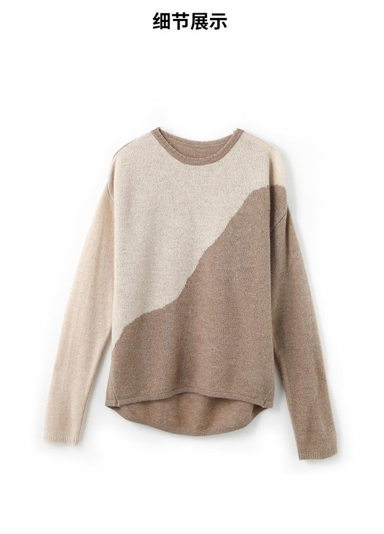 Otoño/Invierno 2025 Nuevo Suéter Tejido de Cuello Redondo de Lana Pura Manga Larga Frente Corto Espalda Larga Jersey Bloque de Color Top Capa Base