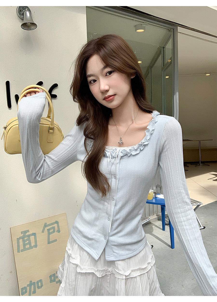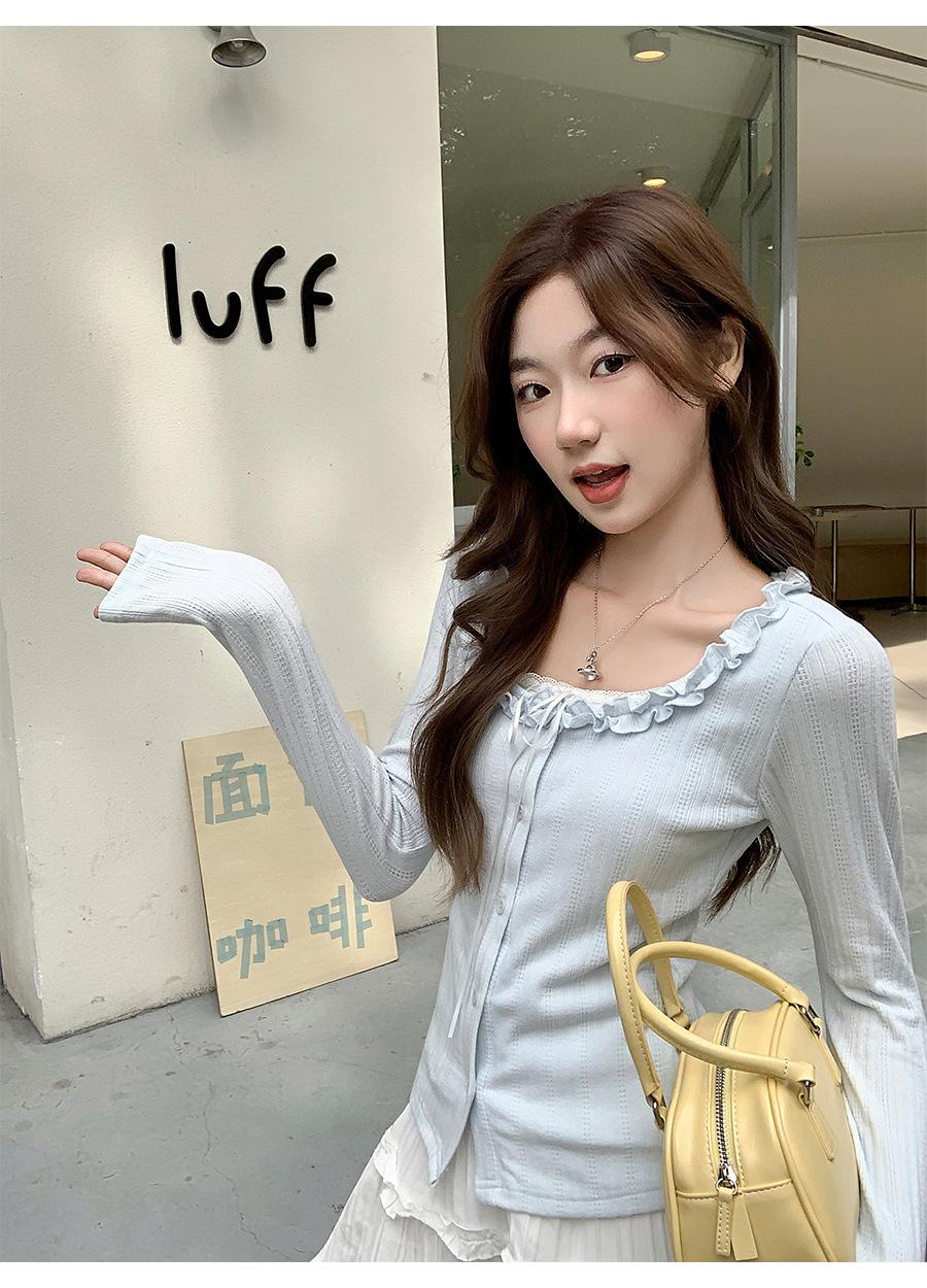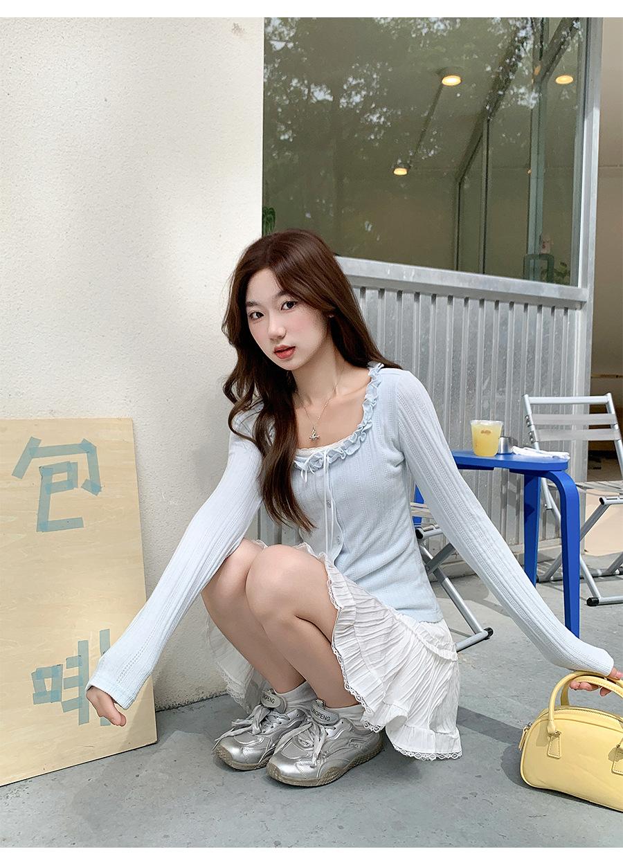 Playera de Manga Larga con Lazo de Encaje Puro y Sexy para Mujer, Nuevo Diseño Adelgazante de Otoño Temprano, Top Pequeño