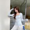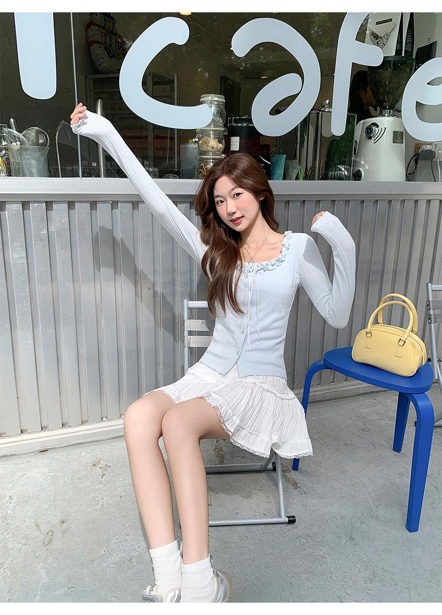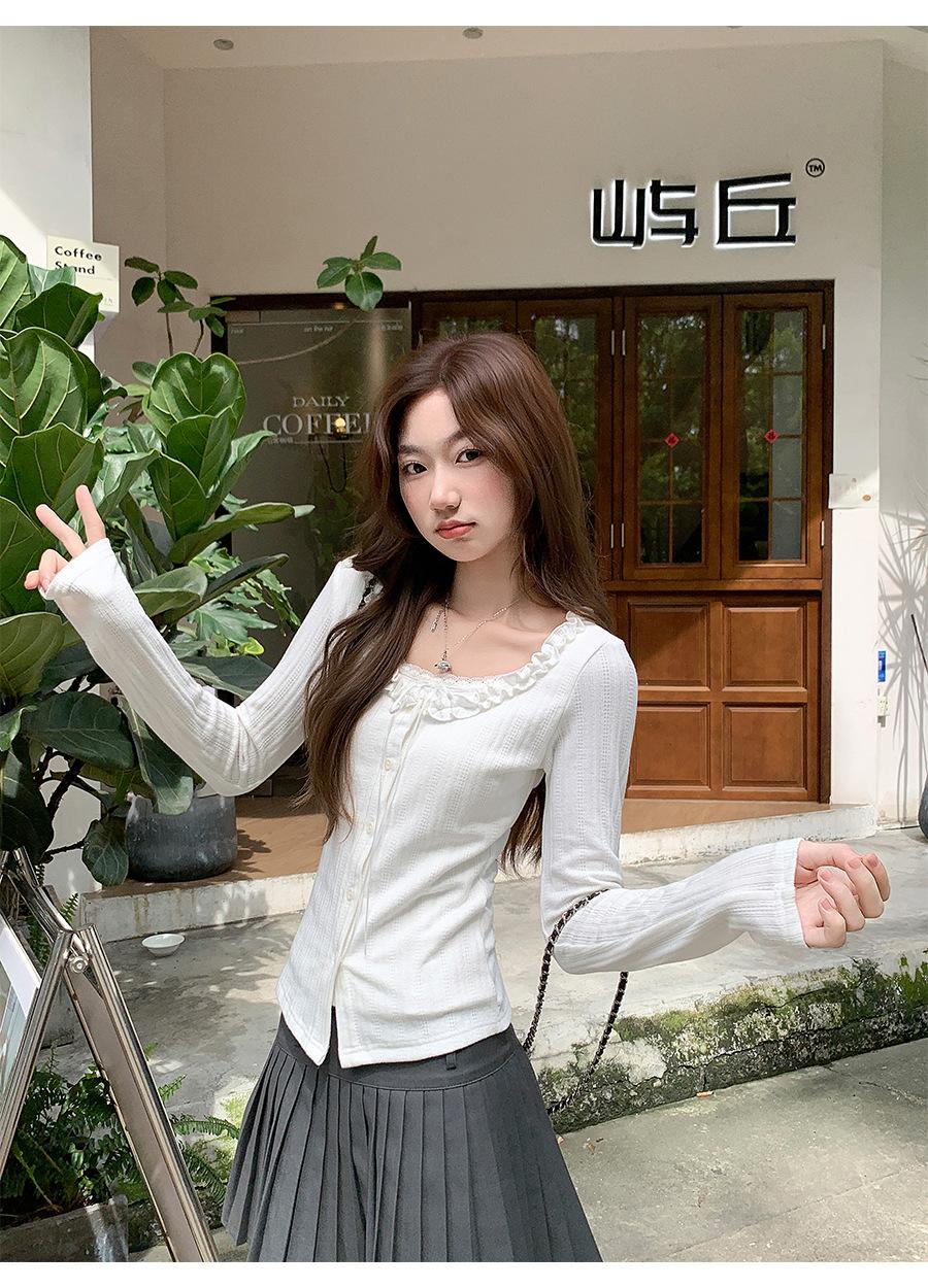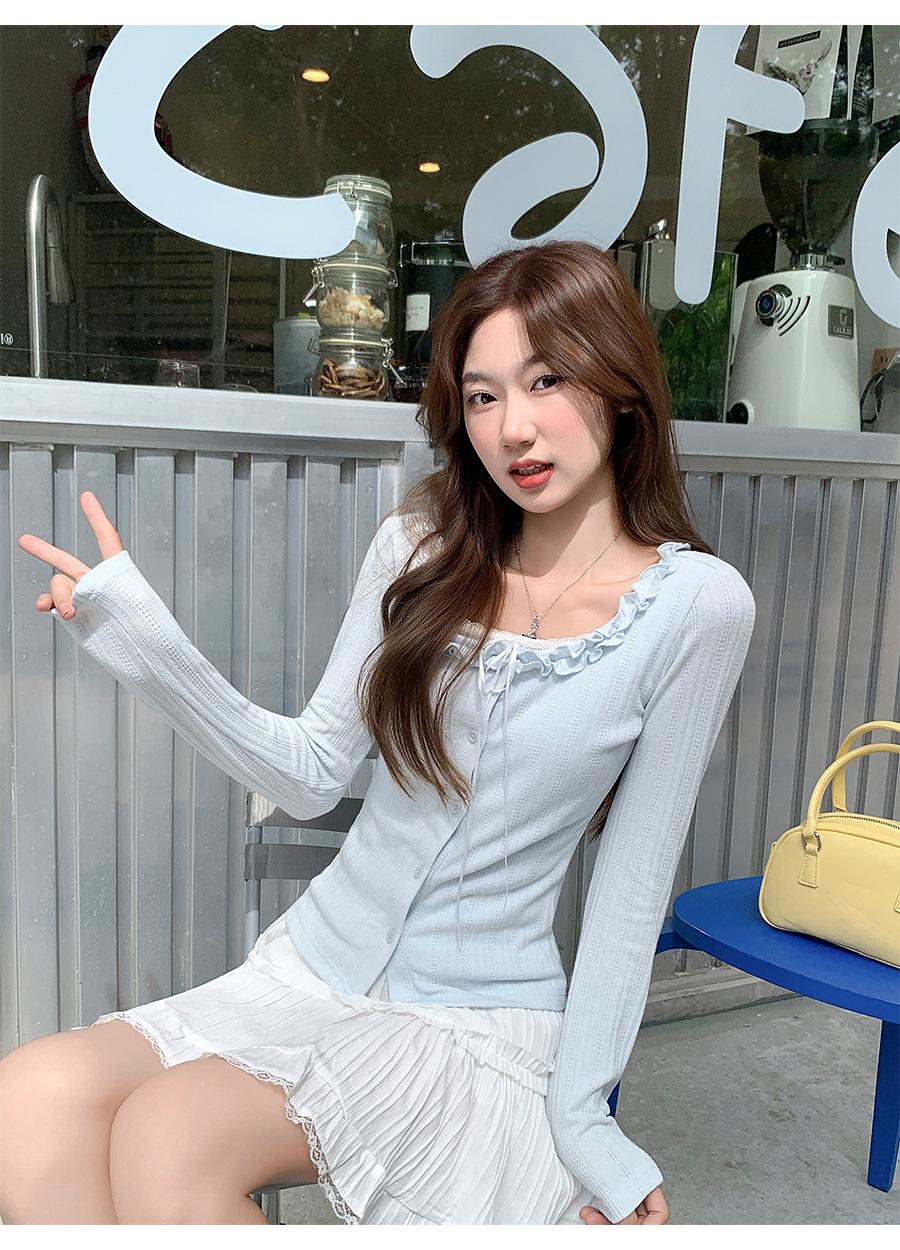 Playera de Manga Larga con Lazo de Encaje Puro y Sexy para Mujer, Nuevo Diseño Adelgazante de Otoño Temprano, Top Pequeño