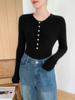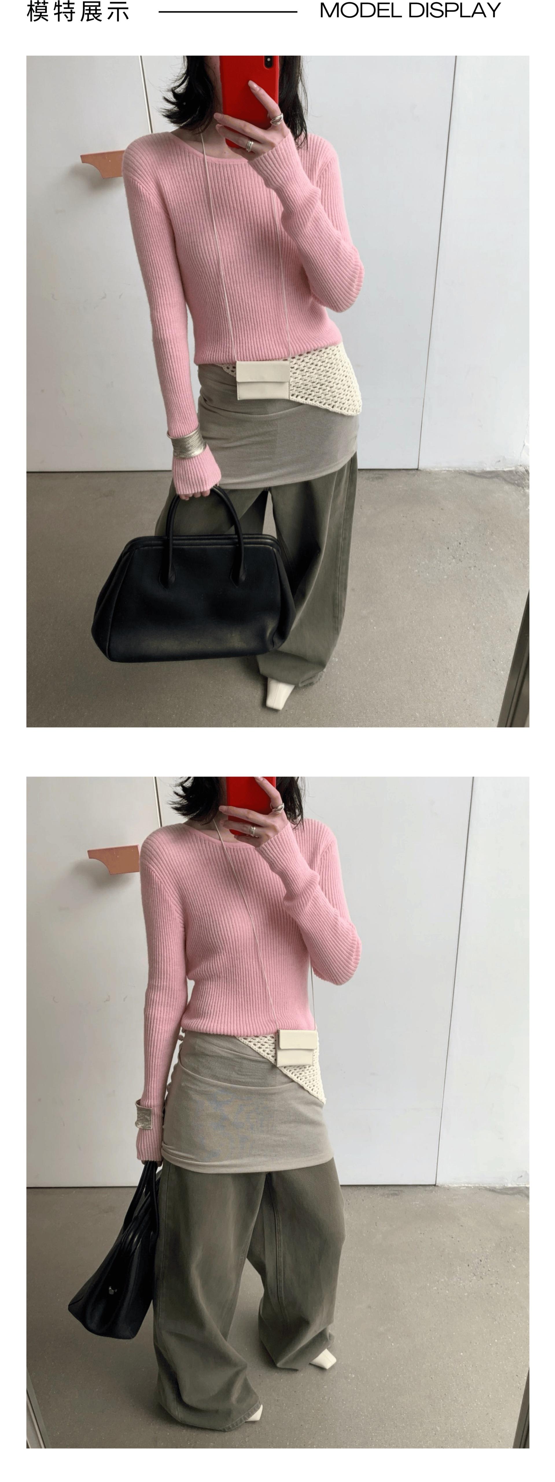 EN LÍNEA Top de Cuello Redondo con Diseño Acanalado Estilo Coreano para Mujer Otoño Ropa de Mujer Manga Larga Suéter Tejido para Mujer 88227